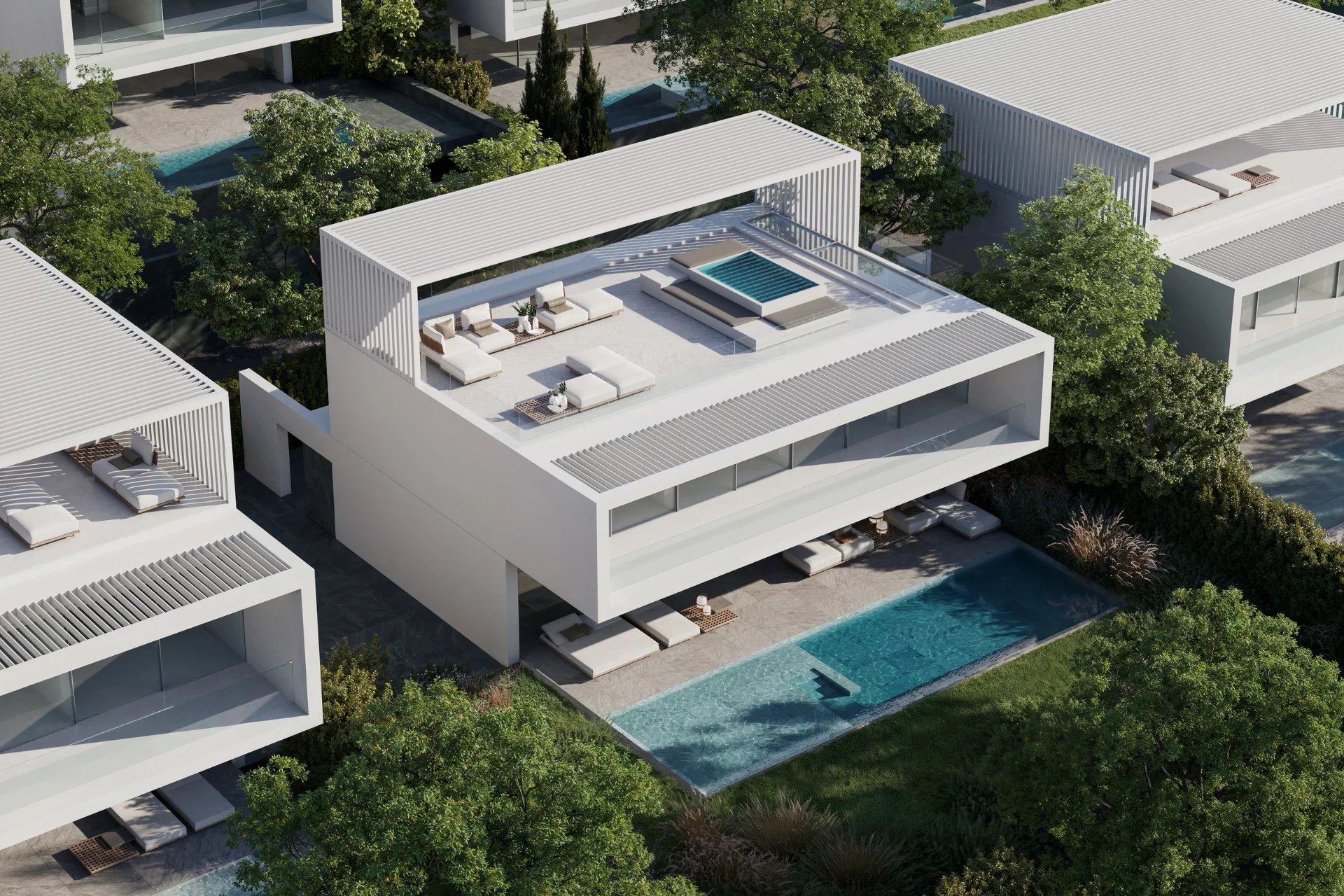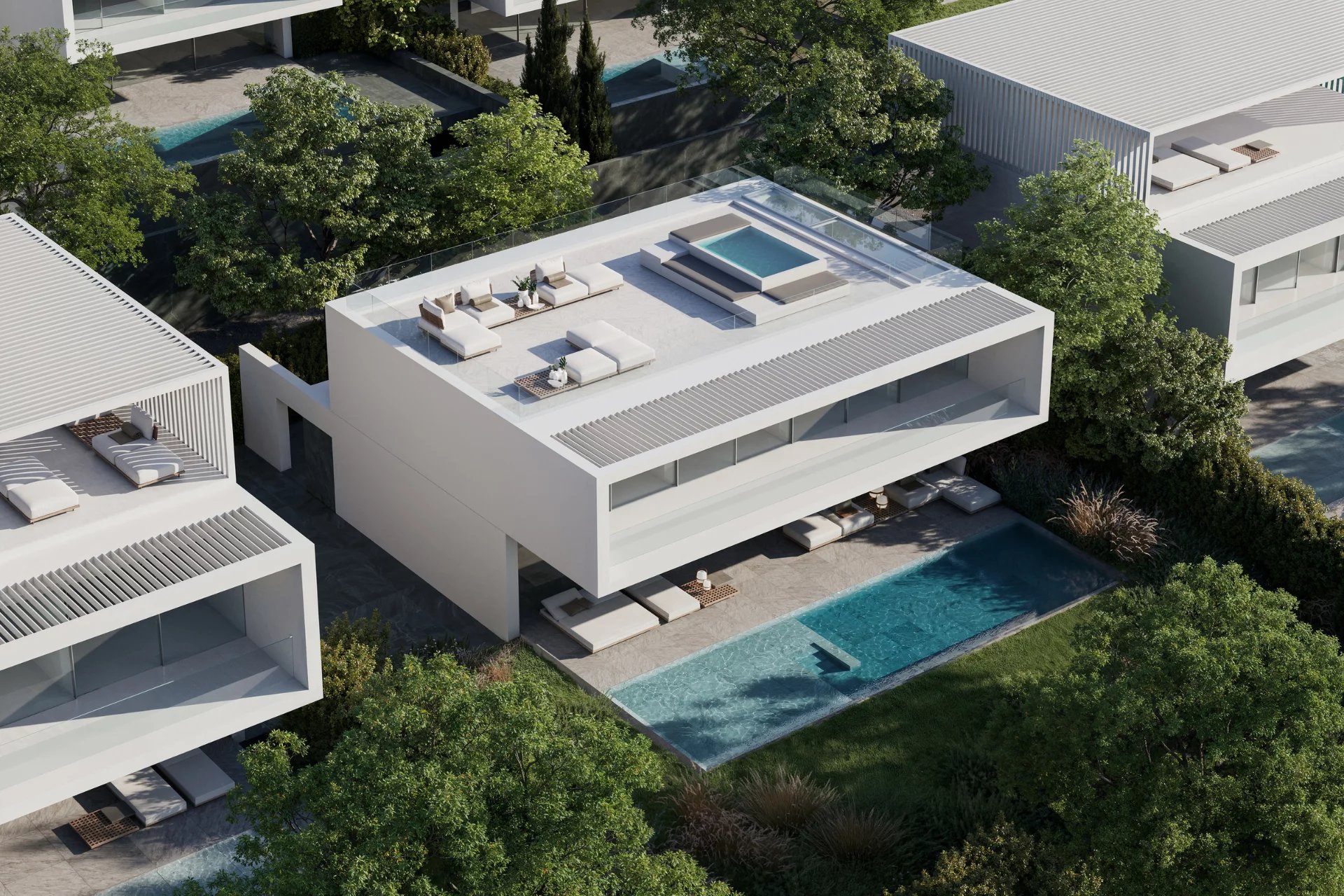ONE SEVEN Villas are designed to offer maximum comfort while integrating nature and open spaces to minimize environmental impact. They are energy self-sufficient, use renewable energy to meet all needs and maintain a comfortable climate with a real-time temperature and humidity control system.