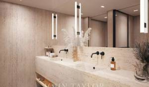 The communal area includes an infinity rooftop pool with a sun deck, ideal for relaxing while overlooking the sea. The building also features a gym, lift, security system, and underground parking with generous space for each unit.