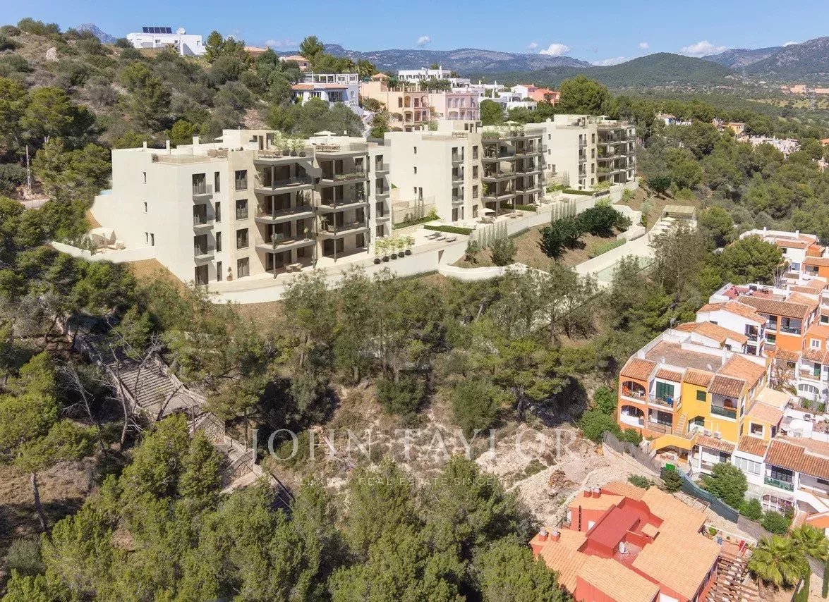 These modern apartments are being built in Santa Ponsa. They have fantastic panoramic views of Santa Ponsa and the golf course, with east-south-west orientation and beautiful terraces of 18 m2 to fully enjoy the Mediterranean lifestyle. The apartments have 4 double bedrooms and 3 bathrooms, 2 of them en suite, equipped with high quality materials. A bright living room and dining room, as well as an open and modern kitchen with appliances and a kitchen island combined with materials of the highest quality give you comfort and well-being. The complex has 24 residential units, a community pool and a Mediterranean garden. A subway parking space is included in the sale price. The project will be completed during 2025.
