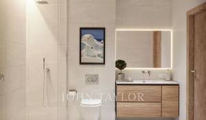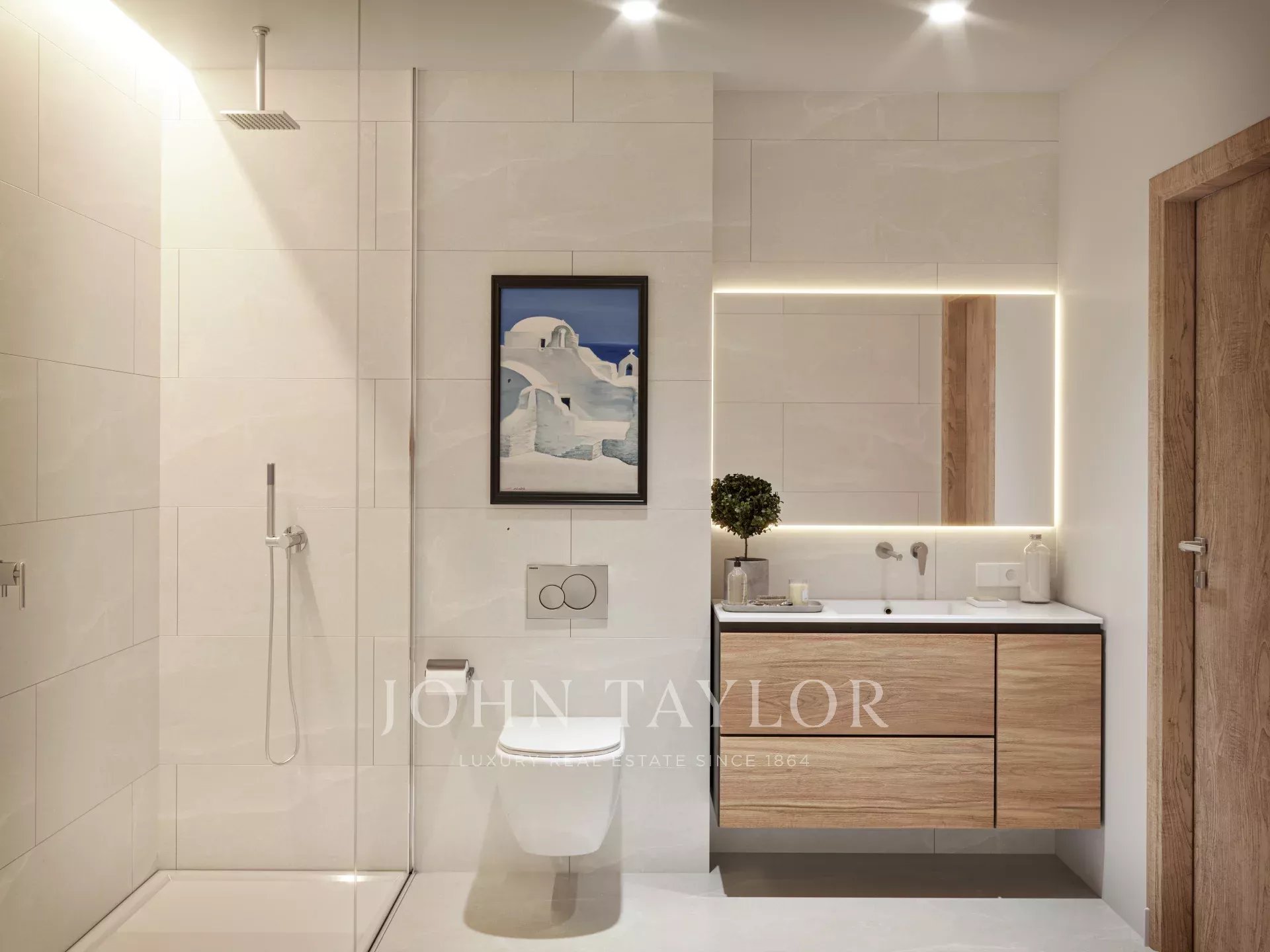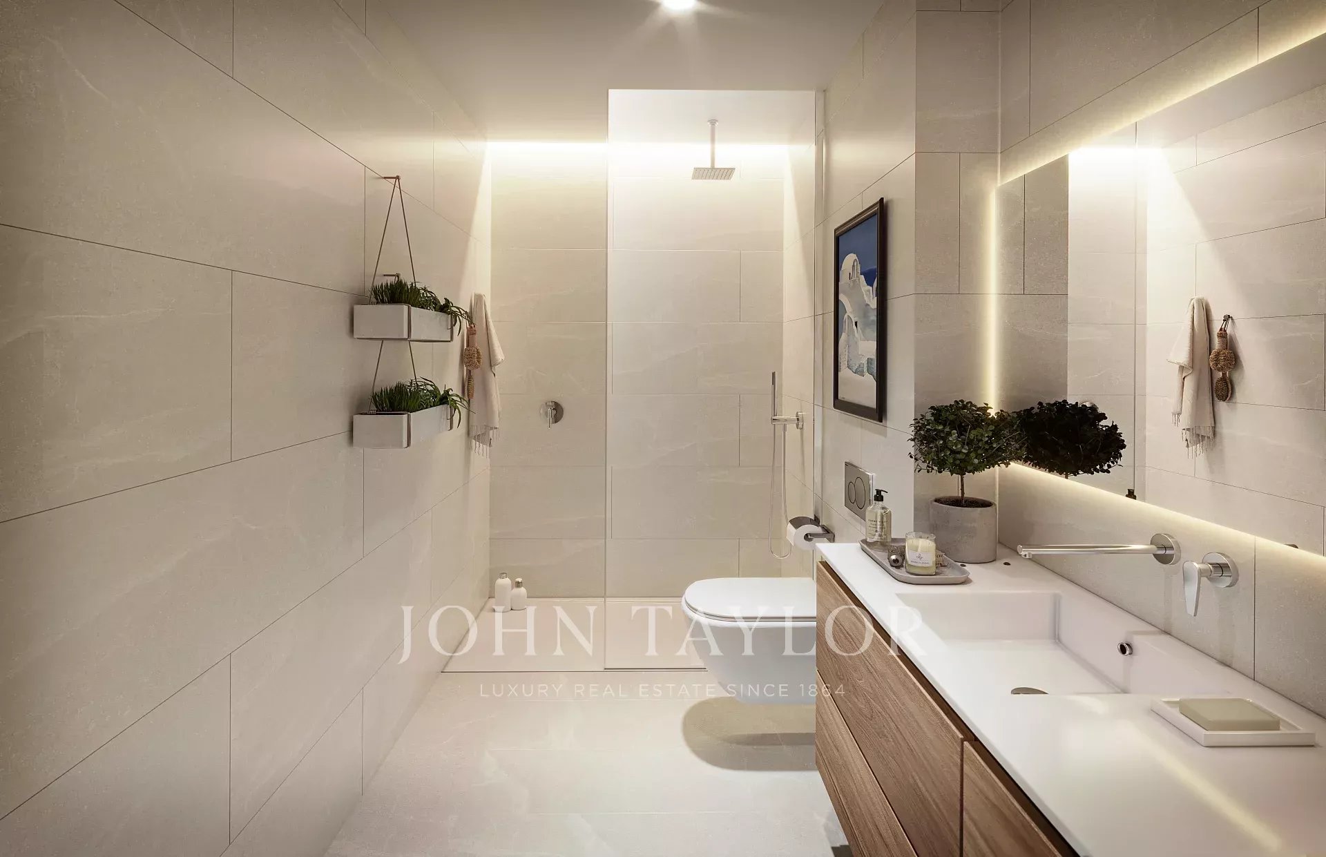The bathrooms have a wooden wall-hung unit with either one or two basins, a shower with a shower tray and recessed taps from the house of Tres. Completion is expected for March 2026