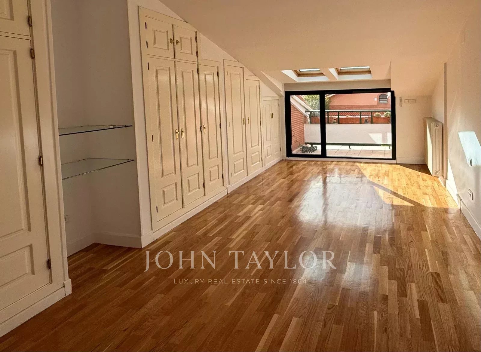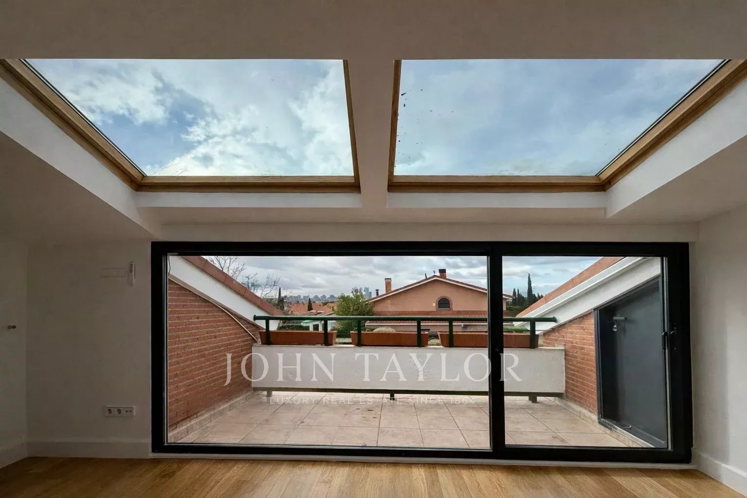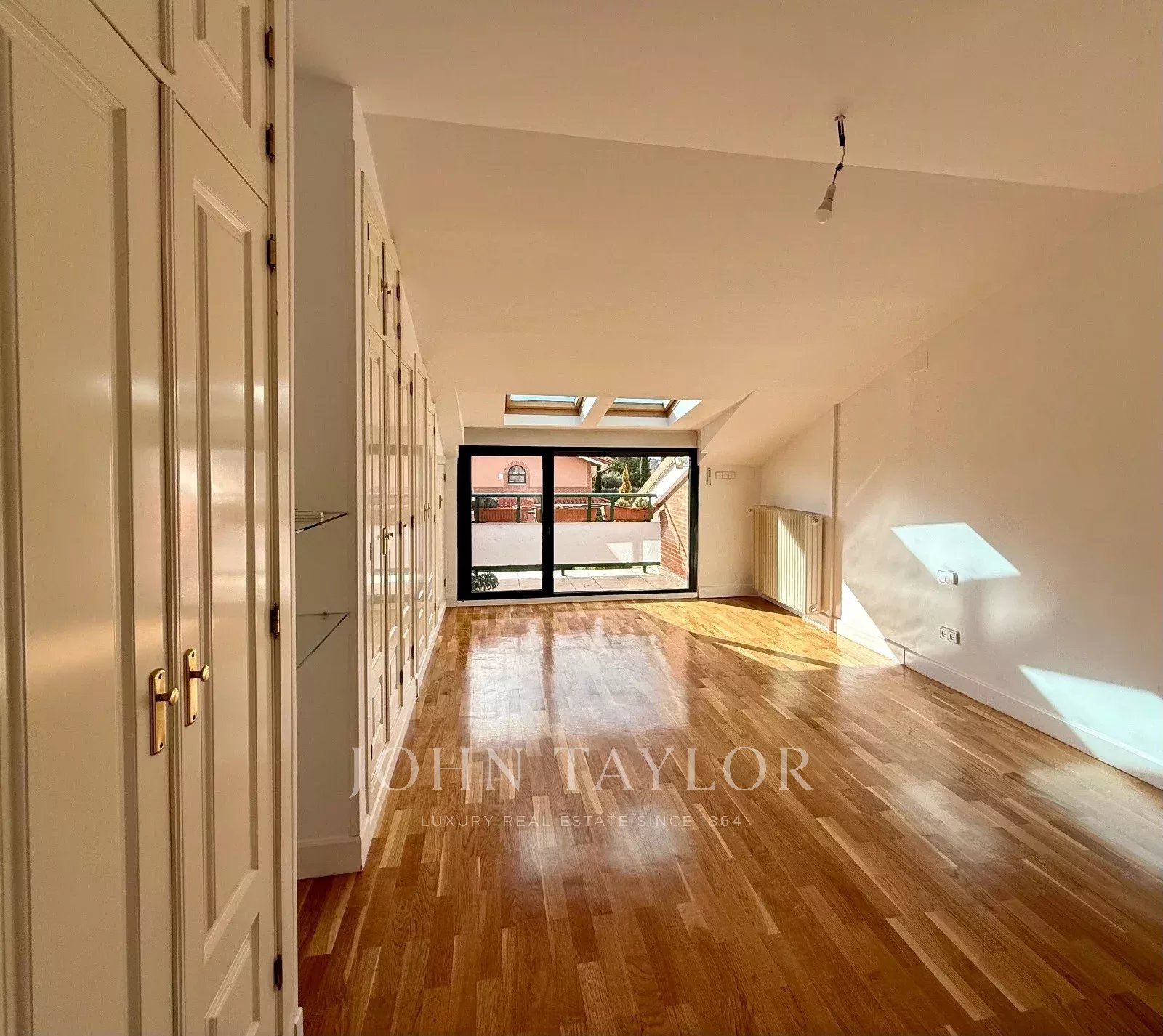 John Taylor presents this magnificent villa located in a first class residential environment. This elegant townhouse represents an exceptional opportunity for those seeking quality of life, privacy and security in one of the most sought after areas of northern Madrid. The property is in impeccable condition, with a careful conservation and a south orientation that guarantees natural light throughout the day.