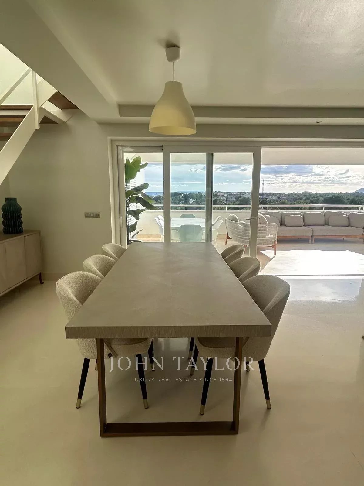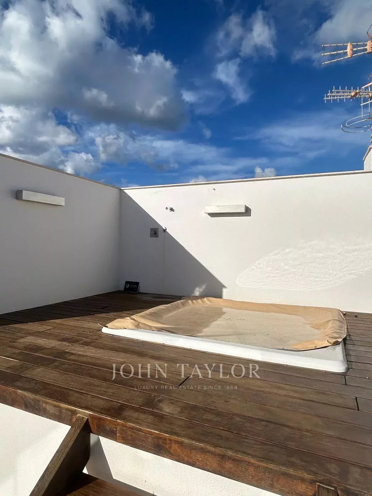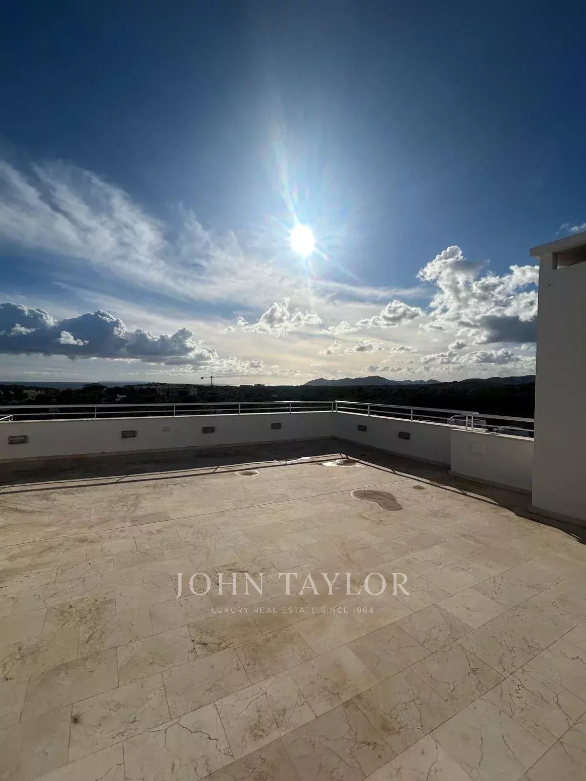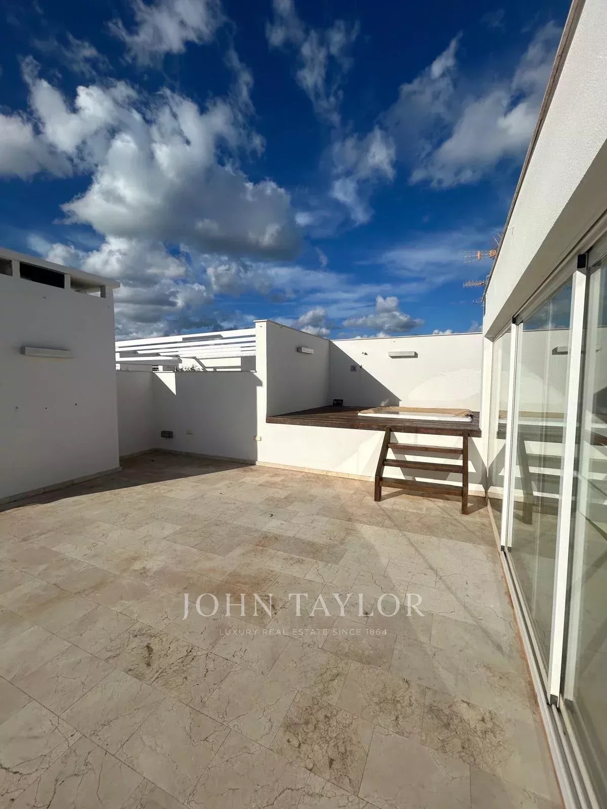The apartment features 4 bedrooms and 3 bathrooms, providing comfort and ample space for the whole family. The terrace and the rooftop solarium allow you to enjoy the Ibizan climate and sea views; the solarium also includes a private jacuzzi, ideal for moments of relaxation. The fully equipped kitchen and laundry room make daily life easier, and the property is delivered fully furnished, ready to move in.