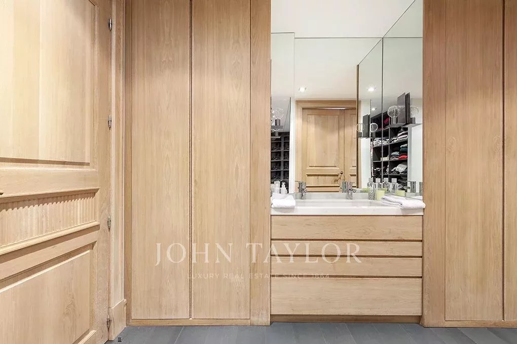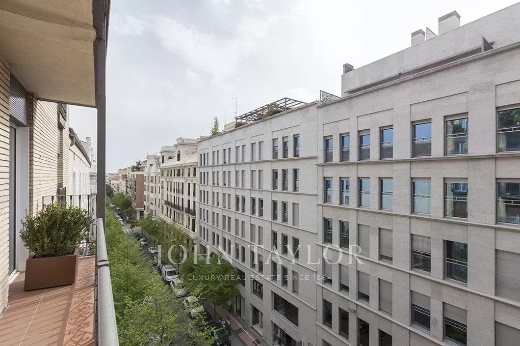 The apartment is accessed through an elegant entrance hall with a guest toilet that leads to the impressive living/dining room with oak wood flooring and three large windows overlooking Claudio Coello street.