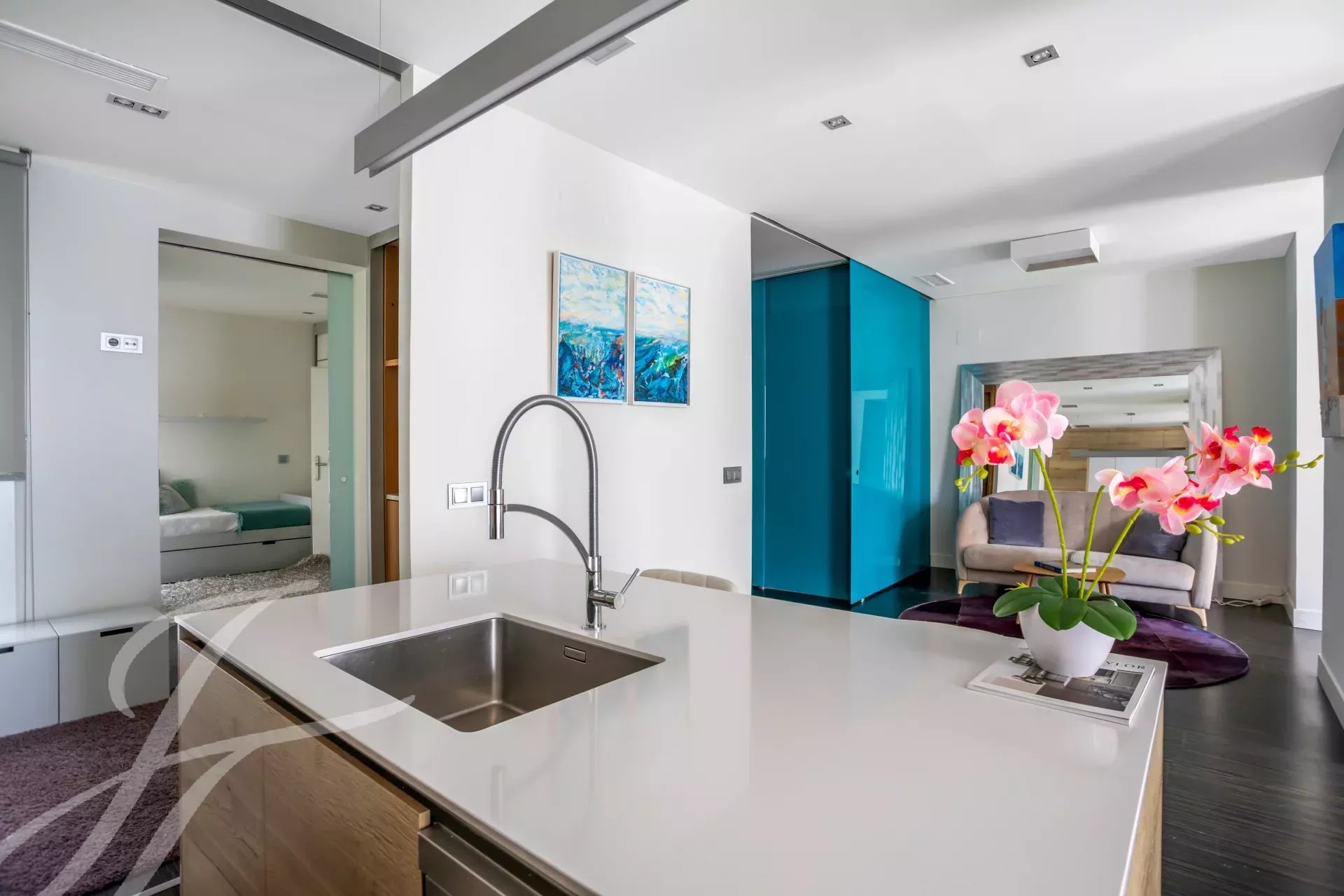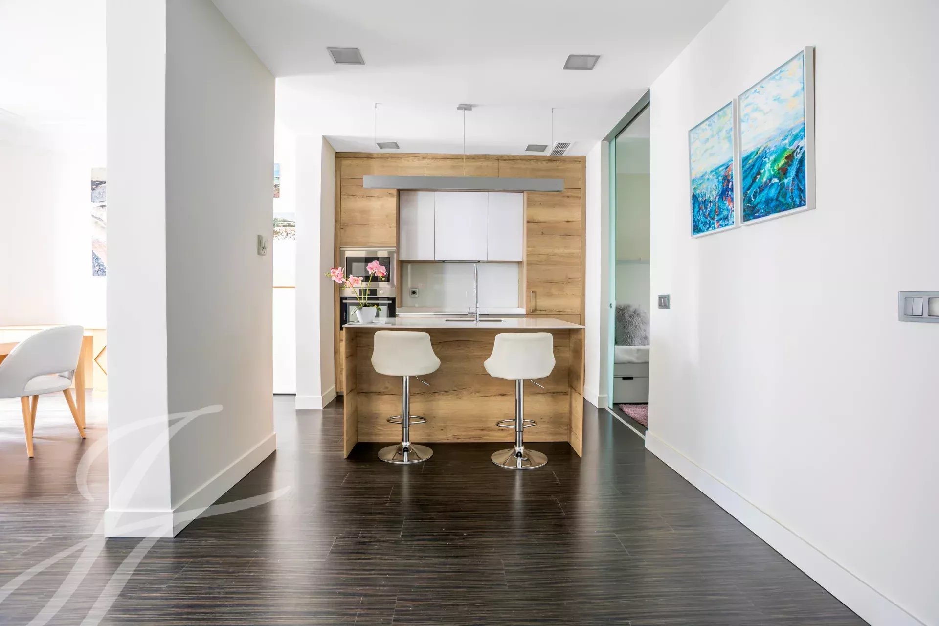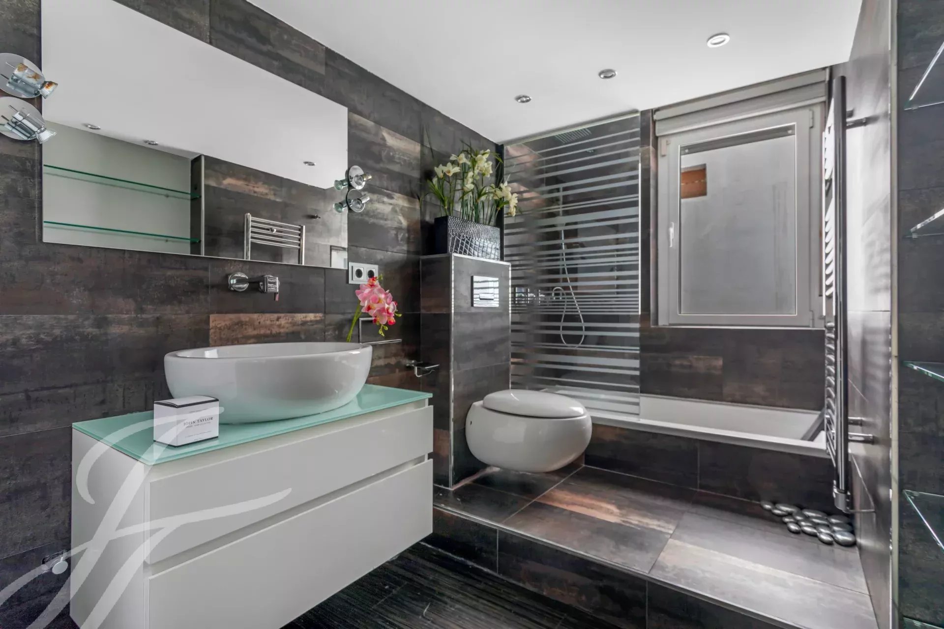 The living-dining room, facing south, enjoys excellent natural light and integrates perfectly with the kitchen, equipped with high-end appliances. This large open space is ideal for gatherings and unforgettable moments with family and friends.