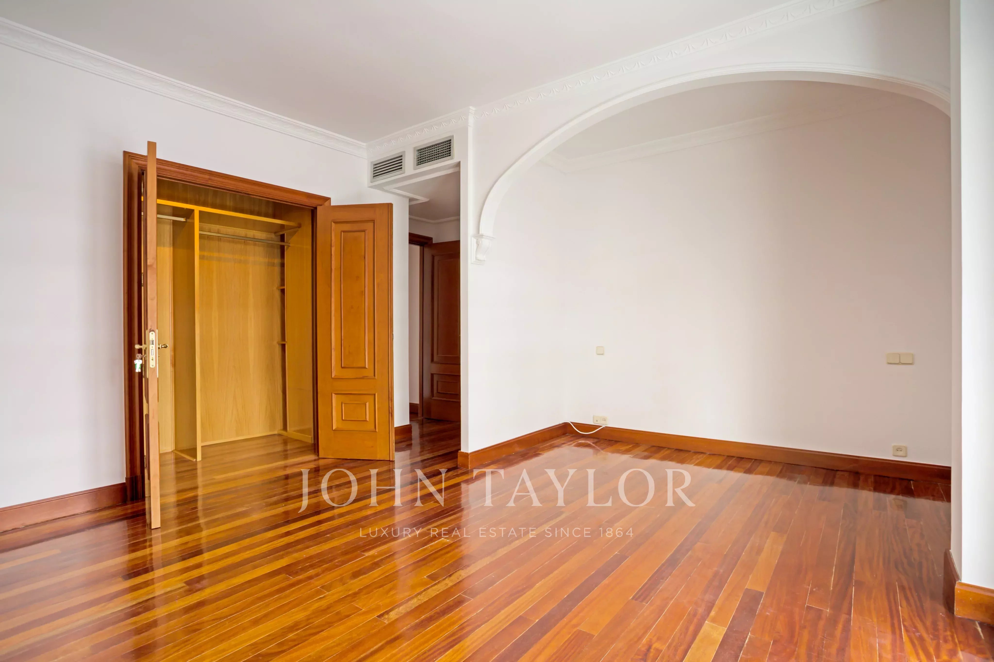 Noteworthy are the spaciousness of all the rooms, the fact that the entire apartment is exterior with three orientations: south, east, and west, and the large storage capacity with 11 closets and 2 dressing rooms.