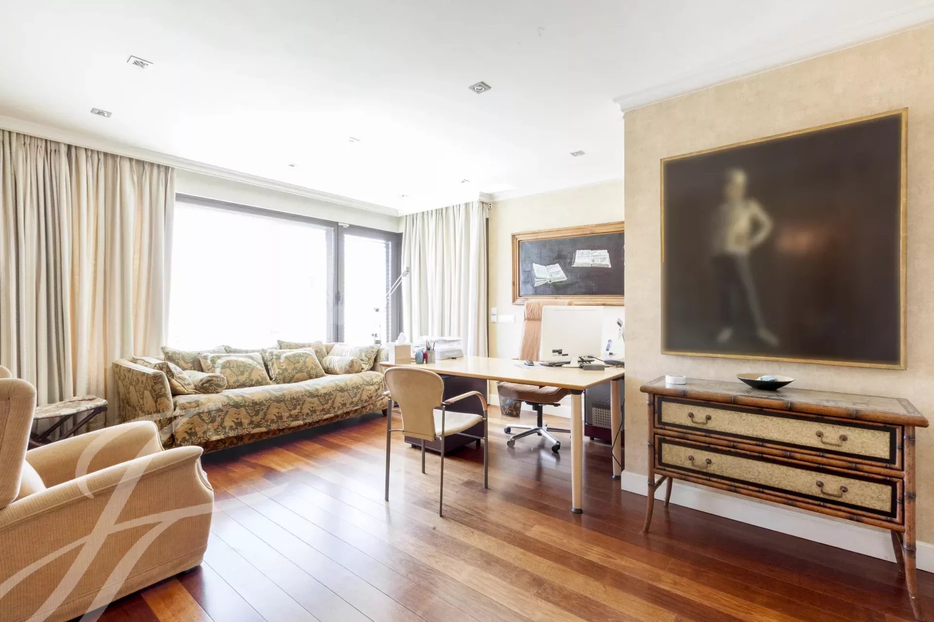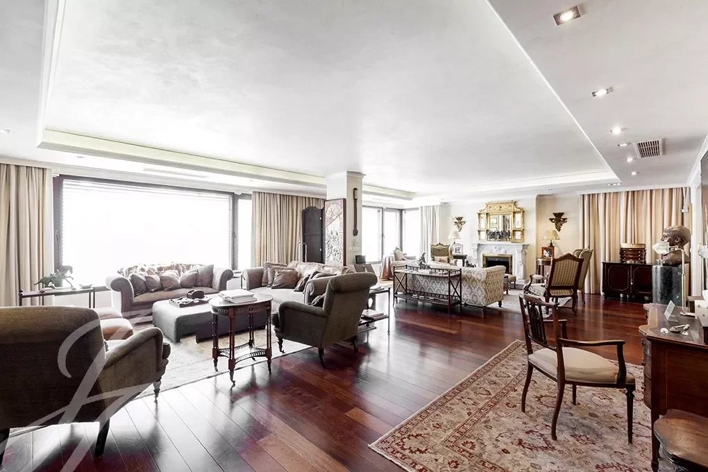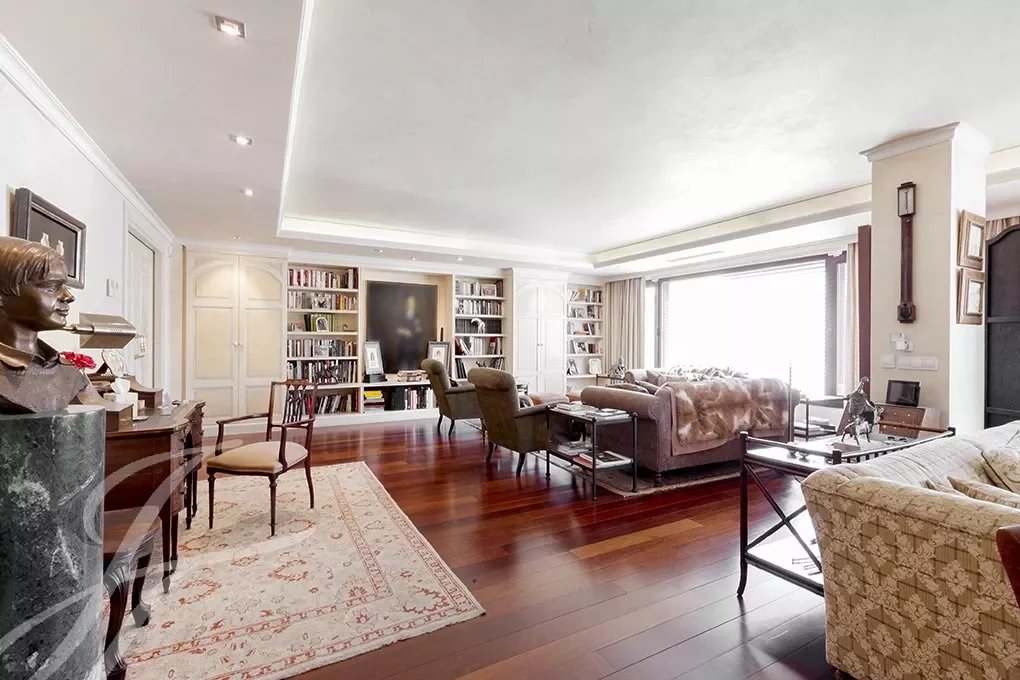 This magnificent duplex with 466m² usable meters for rent already impresses from its entrance, with a great hall for both its size and its height of almost 6 meters crowned by a skylight that gives a great luminosity. From the hall, where the elegant staircase with forged handrails leads to the floor of the bedrooms, we have access to the large living room with more than 80m² completely diaphanous and with large windows that provide a high luminosity and sense of space , the lounge connects with a large formal dining room, and this one with another dining room more informal or daily dining room with direct access to the magnificent kitchen of almost 30m2, the service area is completed with a laundry room-iron, a bedroom service with bathroom and a drying rack. From the kitchen we have access to the hall where you will also find the courtesy toilet. Once again from the large hall we go up to the second floor, which also has independent entrance from the elevator area, a distributor corridor runs through the stairwell and distributes the doors of the various bedrooms, all of them large with bathrooms in suite and dressing rooms. It is important to note the huge area of the master bedroom composed of the bedroom, dressing room, large bathroom en suite and another bedroom or additional office with bathroom en suite. Following the dealer open to the stairs we find another bedroom with bathroom en suite, and the other two bedrooms that share a living room or study where each of them has dressing room and bathroom en suite, complete the floor.