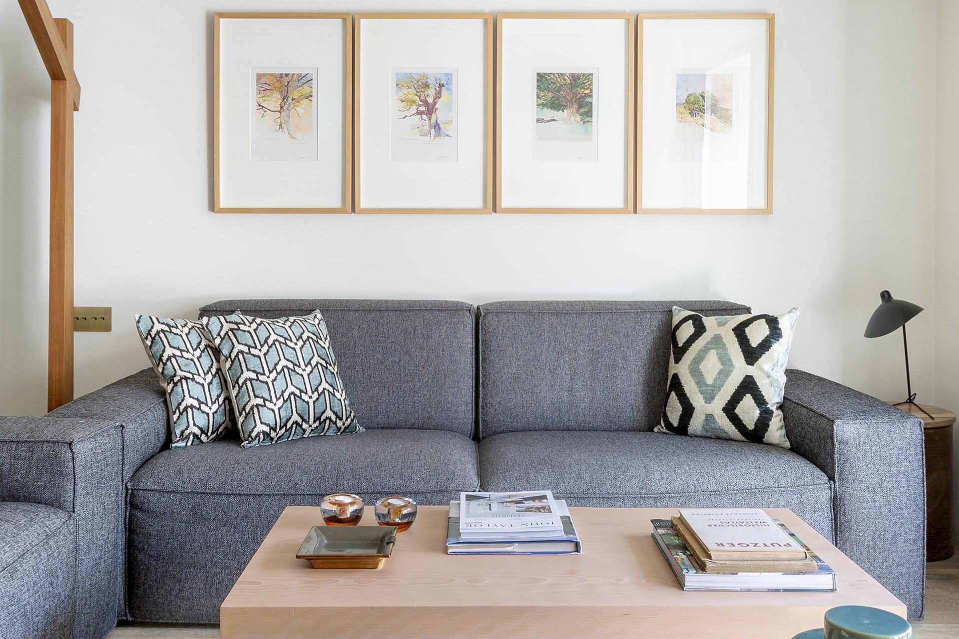The large living/dining room can be separated by metal sliding doors and has access to the terrace facing west.