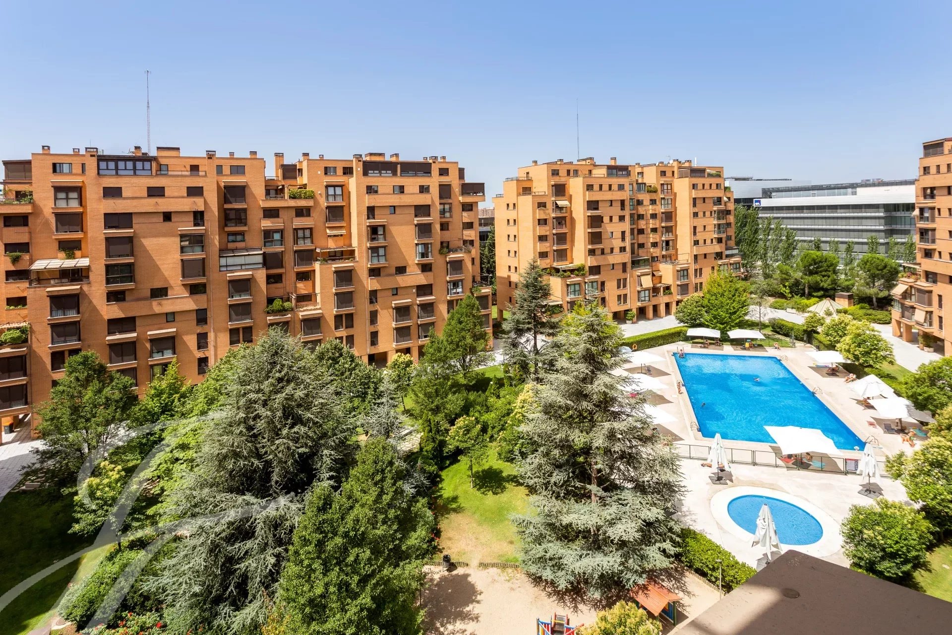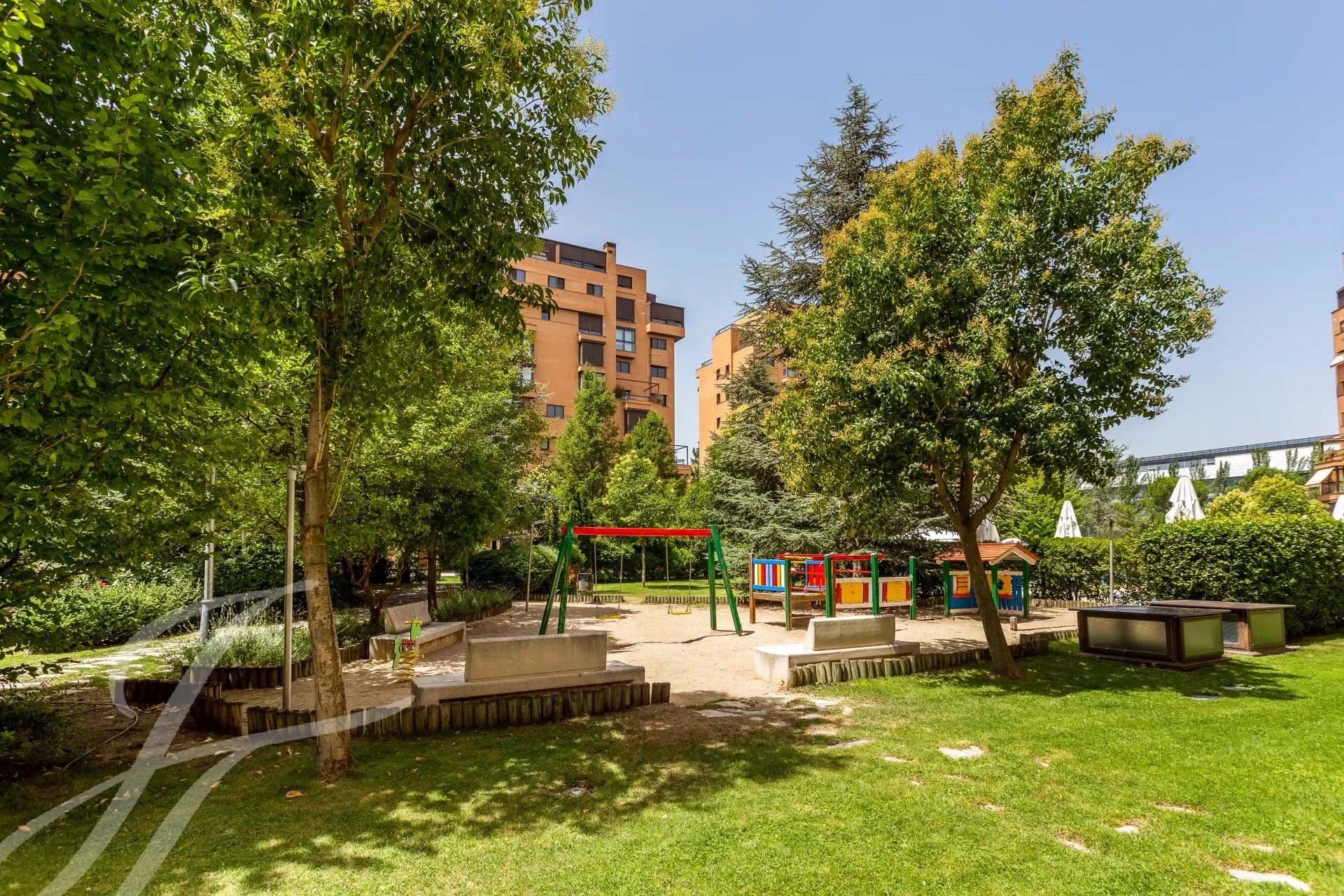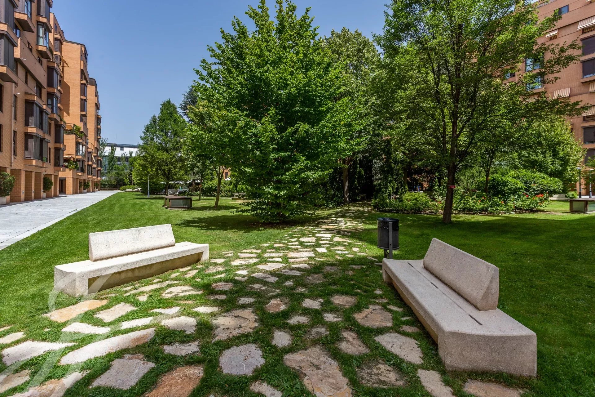 The wonderful urbanization has large garden areas, swimming pool, gymnasium, paddle tennis court, playground for children and has 24 hour security. The area where it is located next to Arturo Soria street and its shopping centre, is a quiet area of homes in gated communities, in the district of Ciudad Lineal, in the neighbourhood of San Pascual.