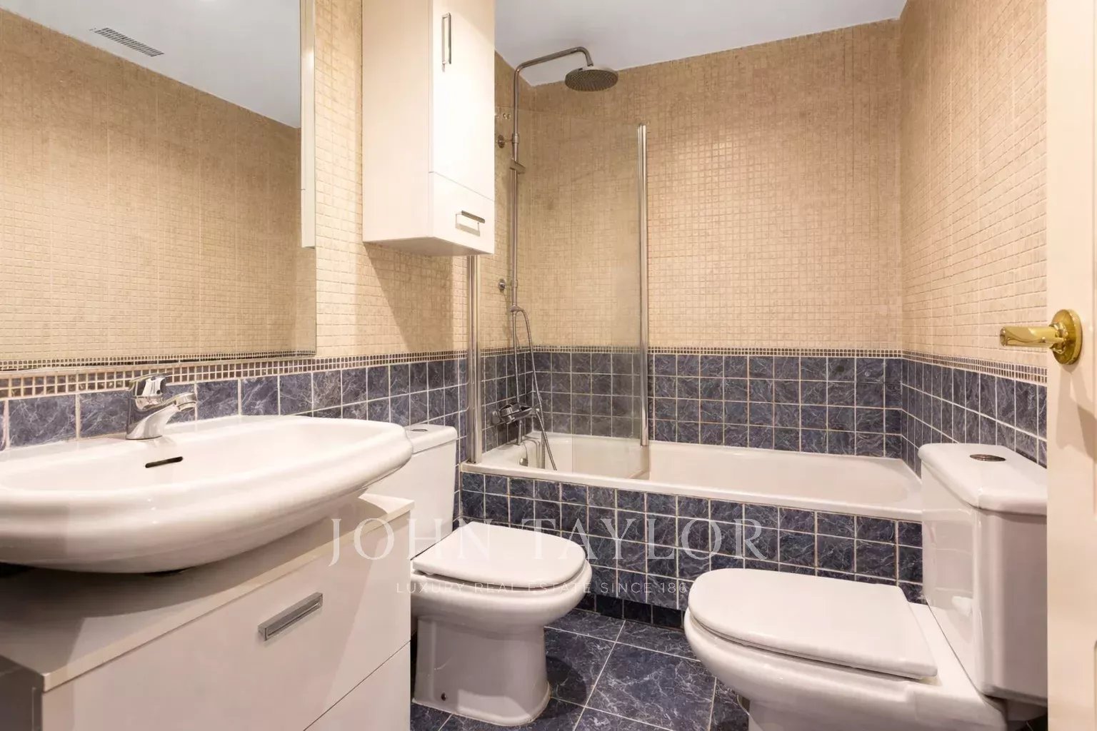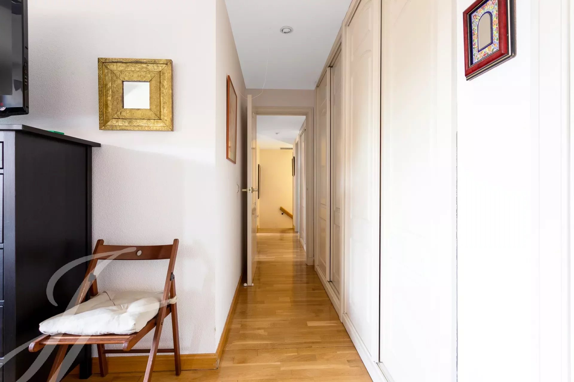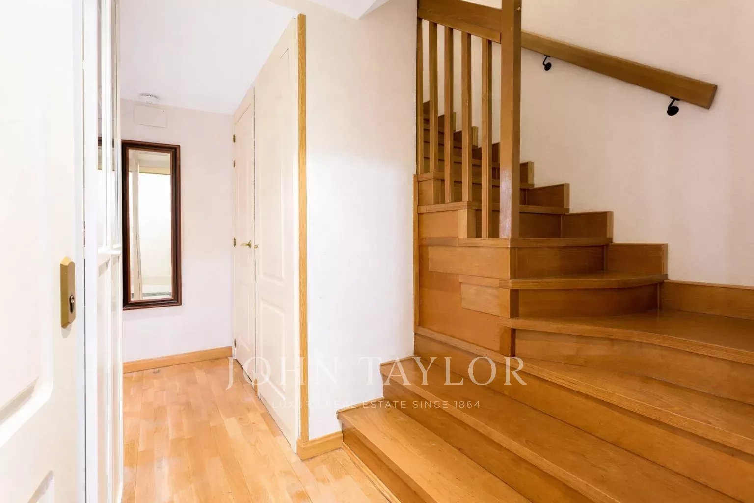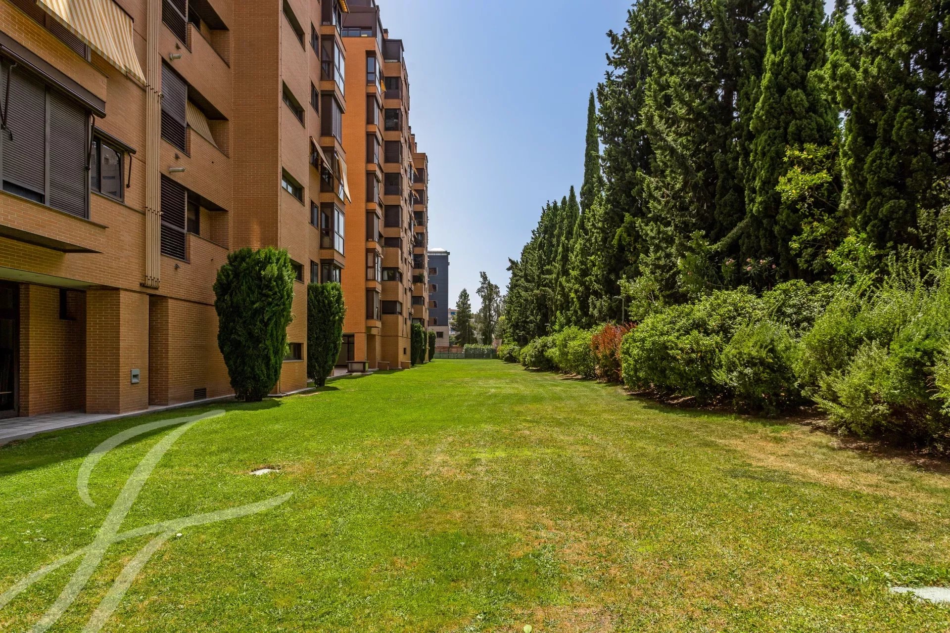It has air conditioning, individual heating and hot water, oak flooring, white lacquered doors and double glazed aluminium windows. The flat is rented unfurnished and without electrical appliances except for the dishwasher. With two parking spaces and storage room.