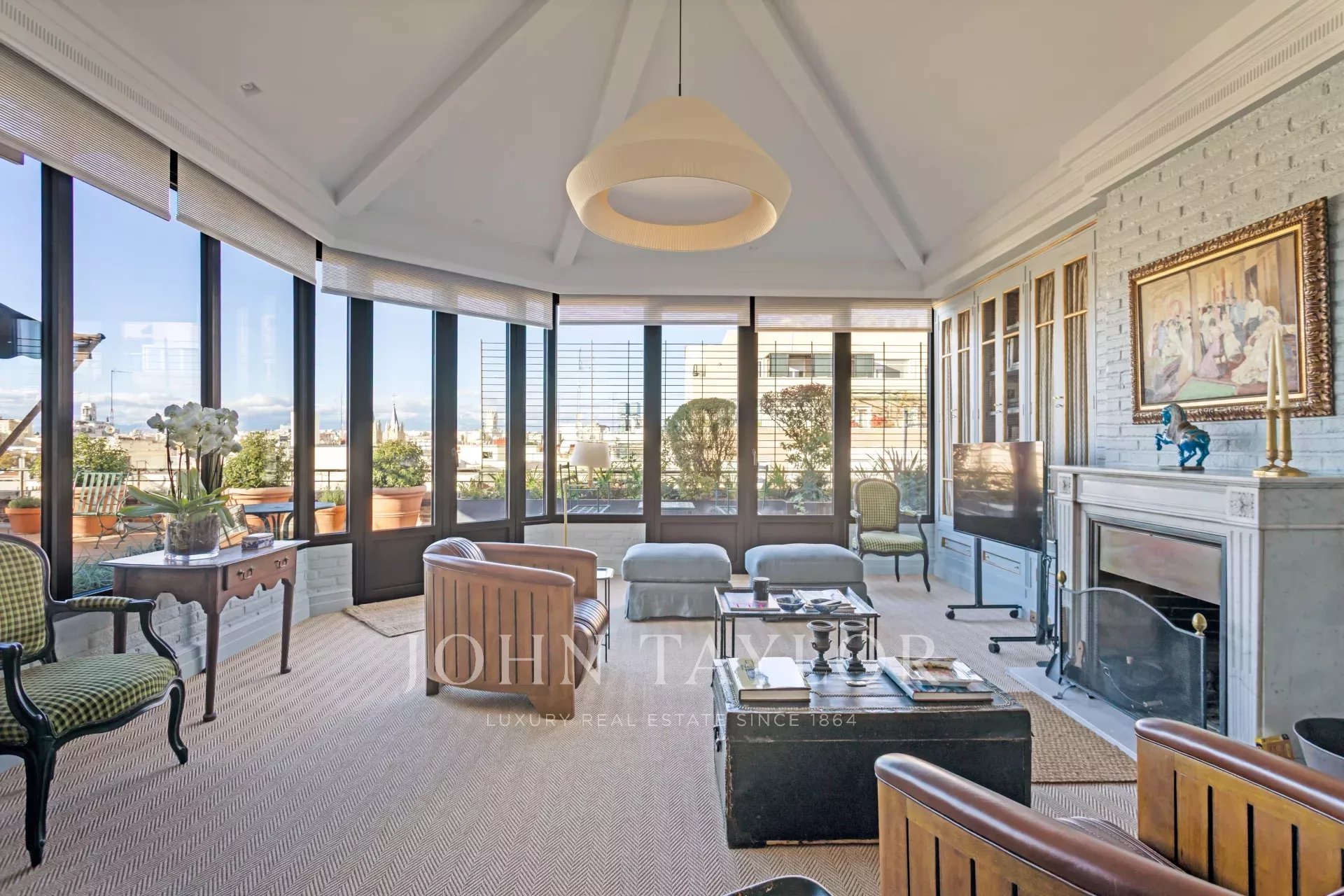Its four spacious bedrooms offer an intimate refuge to disconnect from the pace of the city, while every corner has been conceived with a special sensitivity to detail: exceptional finishes, noble textures and a harmony that is breathed in every step. The elegant main living room, with its fireplace as protagonist, invites you to stop time, to share long conversations, to enjoy the simple pleasure of being.