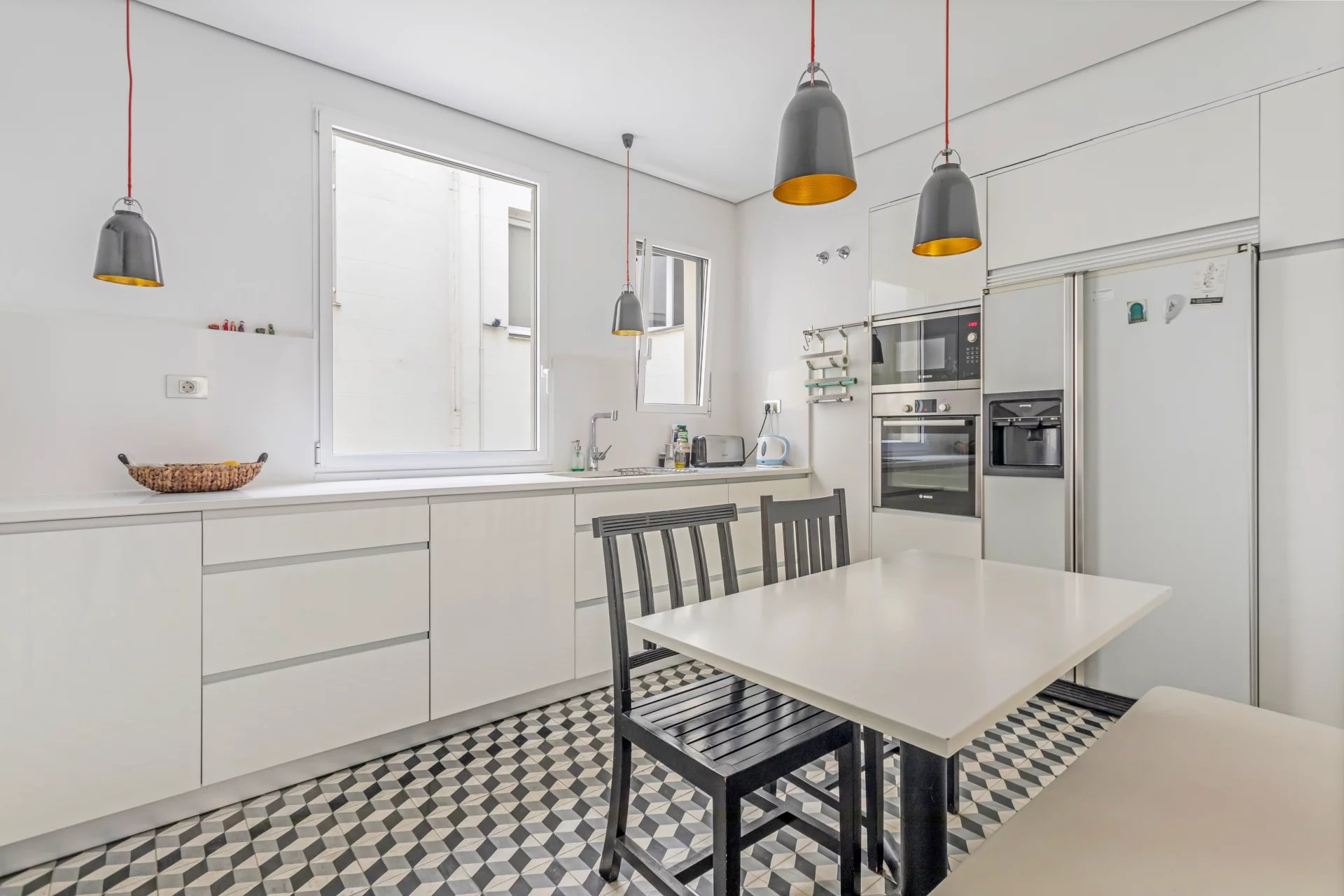 With an elegant and functional layout, it has four bedrooms and four bathrooms, offering an ideal space both for families and for those looking for space and comfort in one of the most exclusive areas of Madrid. The outdoor area is occupied by the bright living room with an adjoining dining room. The kitchen is fully equipped with high-end appliances and has a separate laundry area.