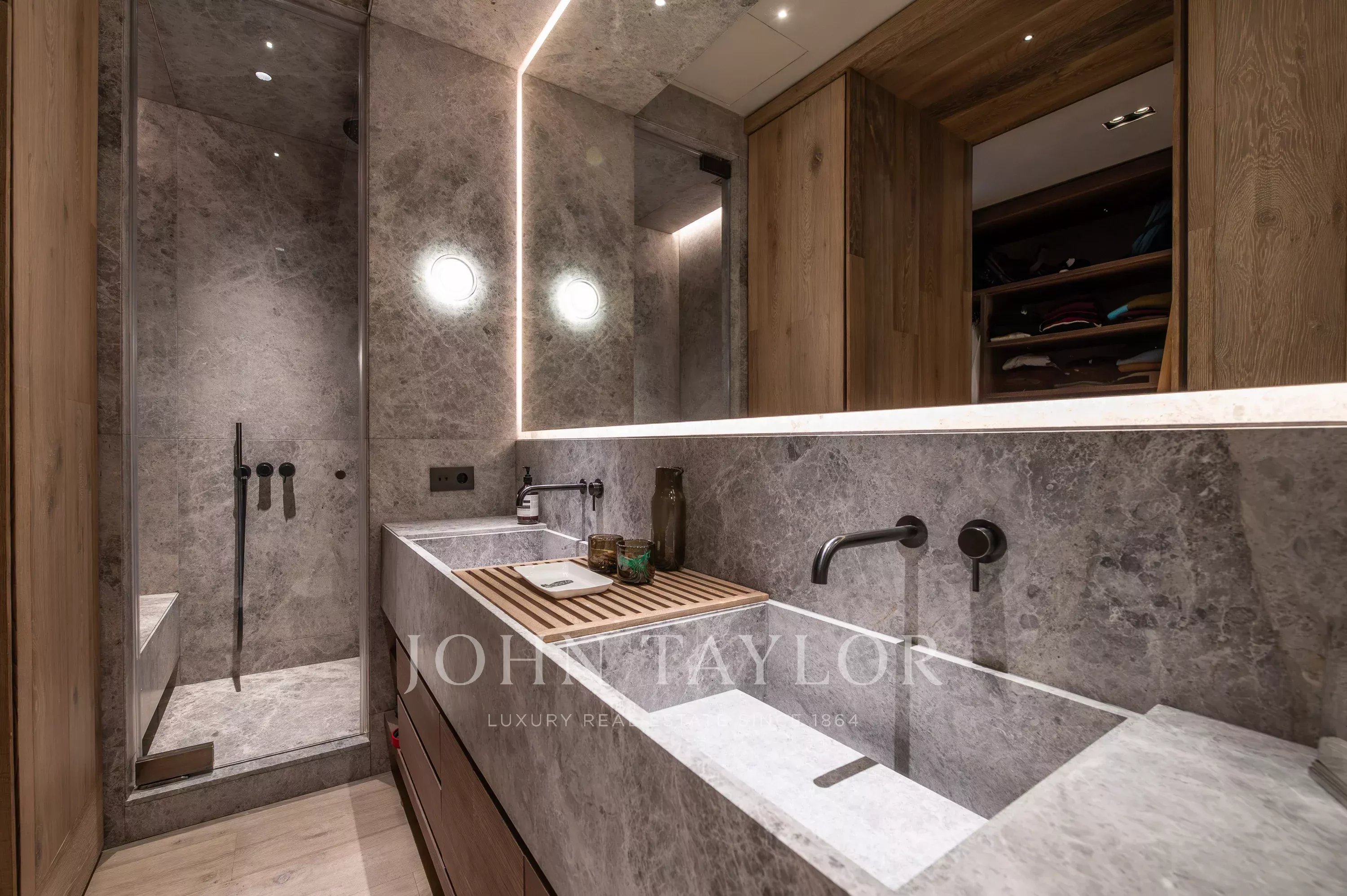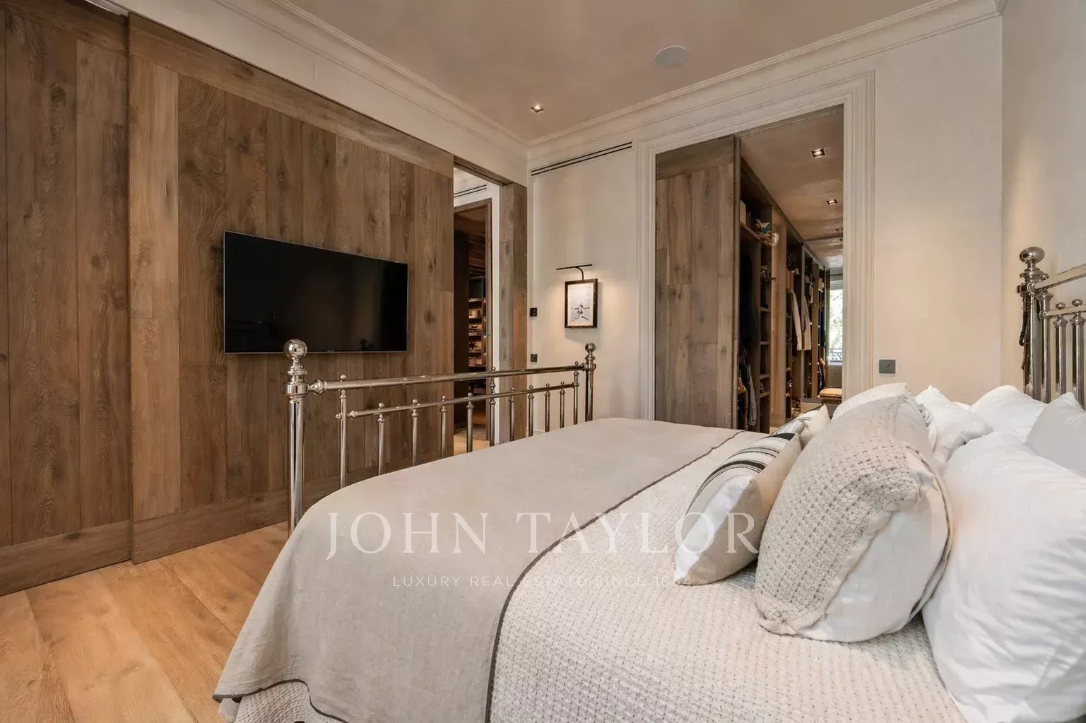 The property is completed with three additional bedrooms, each with an en-suite bathroom and walk-in closet, as well as a cozy independent room intended as a TV or entertainment area.