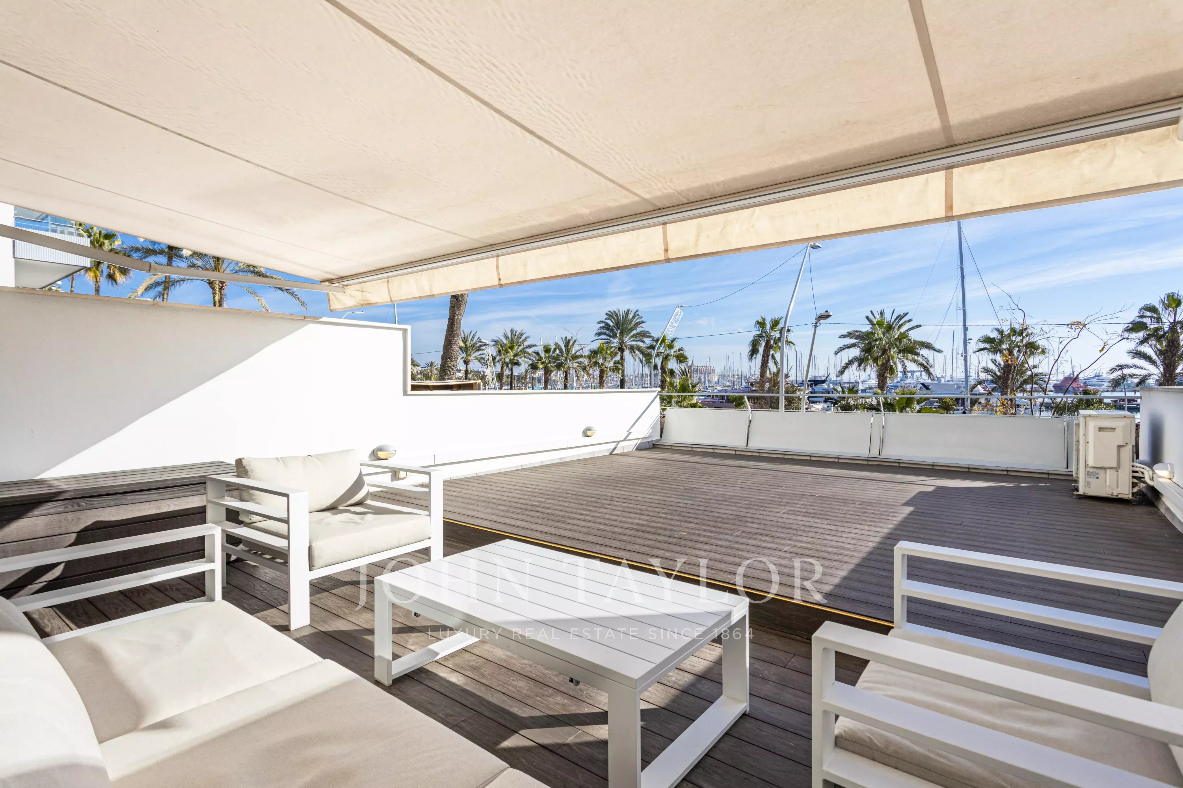 The apartment features a large master suite with bathroom en suite, as well as a guest bedroom with a separate bathroom, providing privacy and comfort for residents and visitors alike. A true highlight is the spectacular 50 sqm terrace, offering breathtaking views towards the sea, harbour, and the cathedral — perfect for outdoor dining and relaxing.