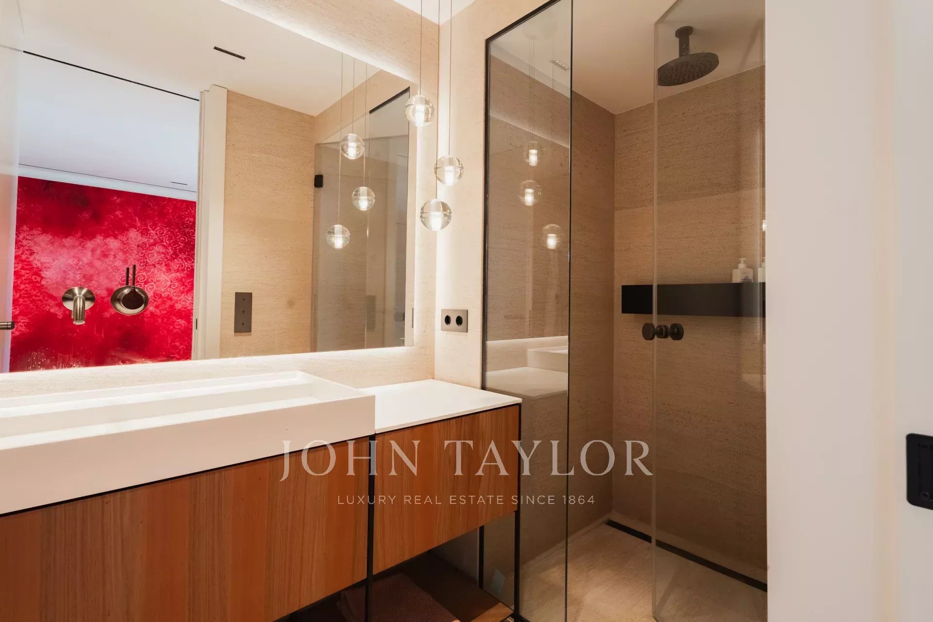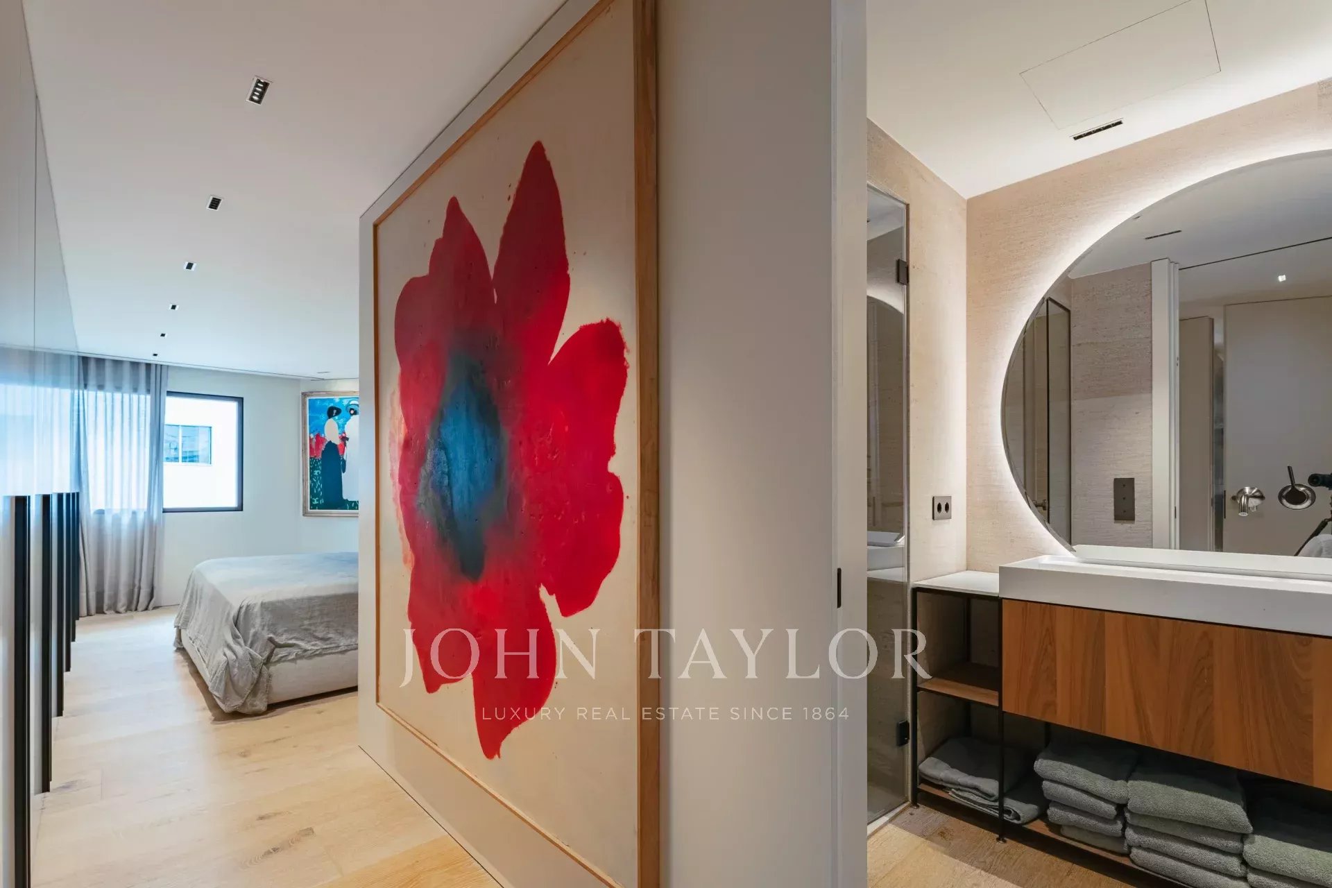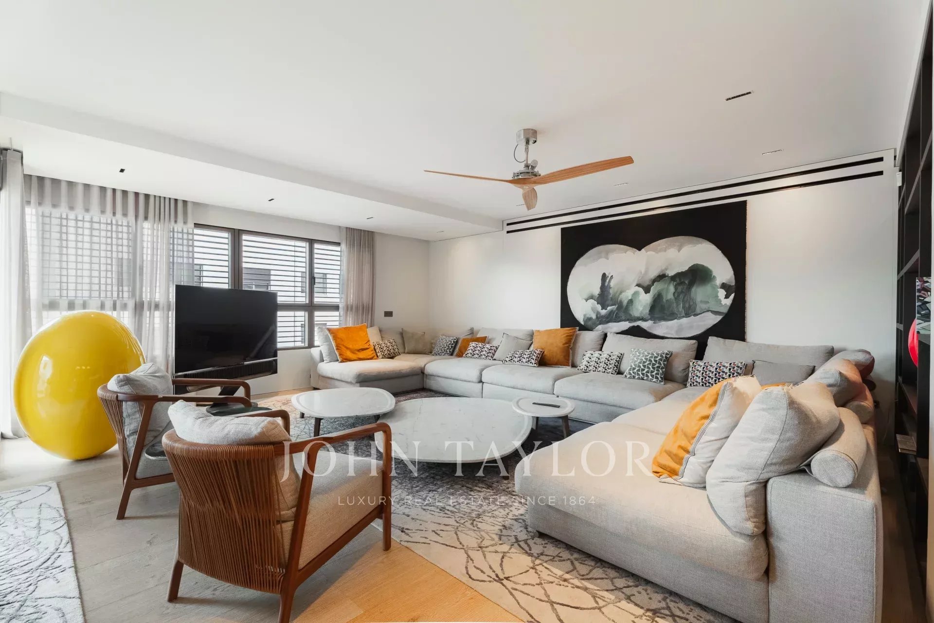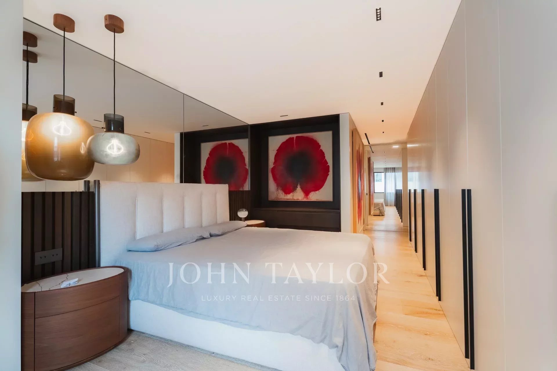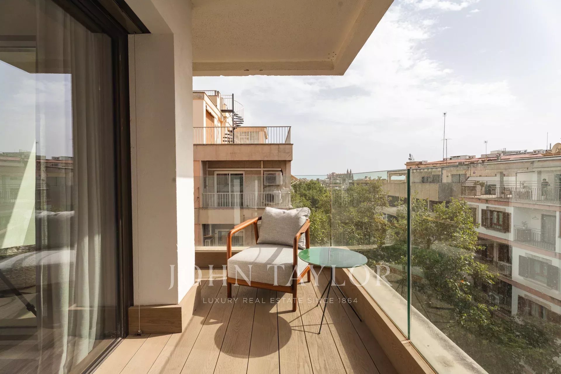 This modern, fully furnished apartment features a spacious open-plan layout with a designer kitchen, elegant dining area, and bright living room, all with direct access to a covered terrace offering uninterrupted views of Palma’s iconic Cathedral.