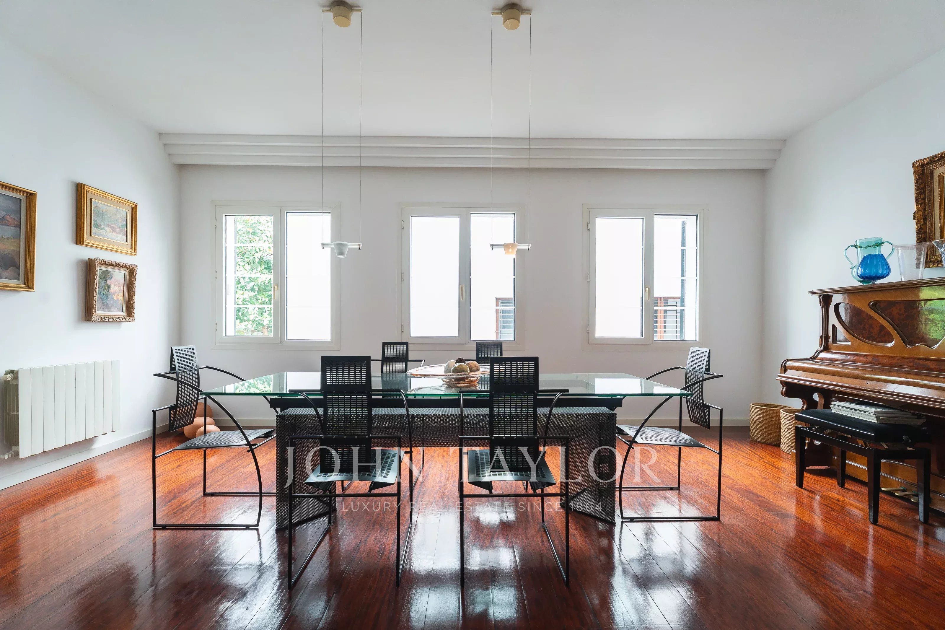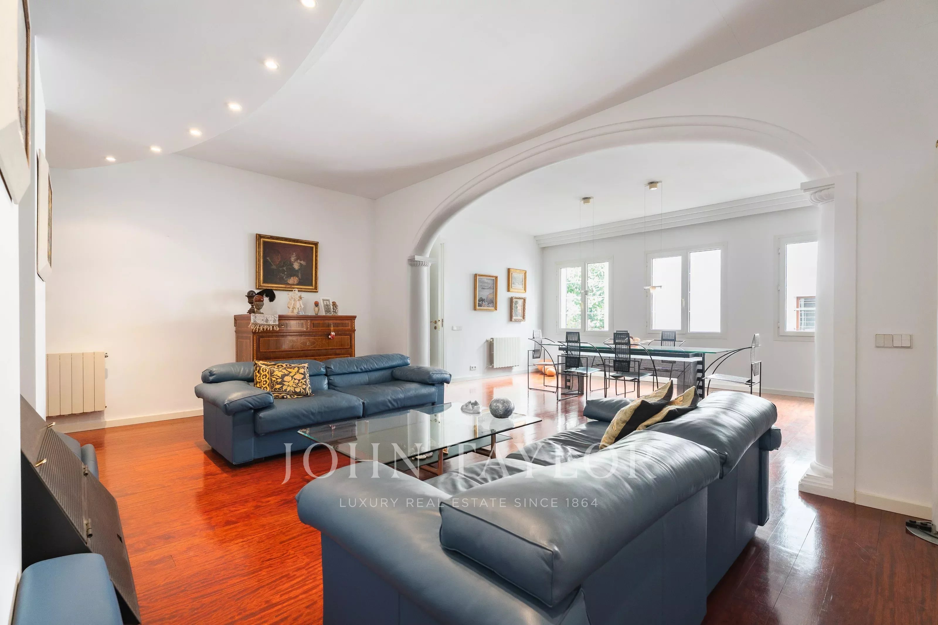 The apartment boasts a large living room, a separate dining area and a fully equipped kitchen, standing out for its functional and bright layout. It has two access points, a main entrance and a service entrance—an especially valued feature in stately apartments in Palma. The building, full of historic character, does not have a lift, preserving its original essence.
