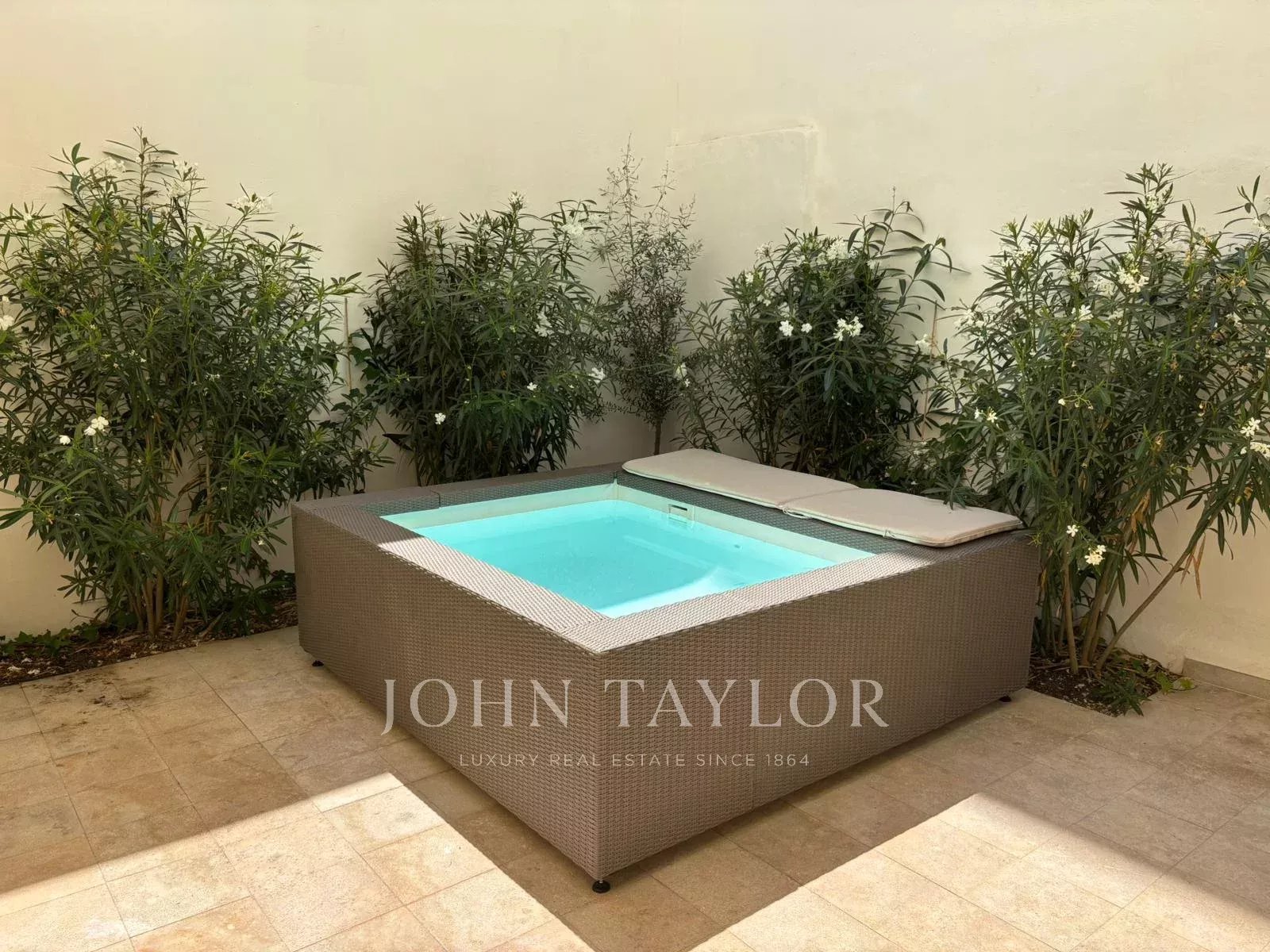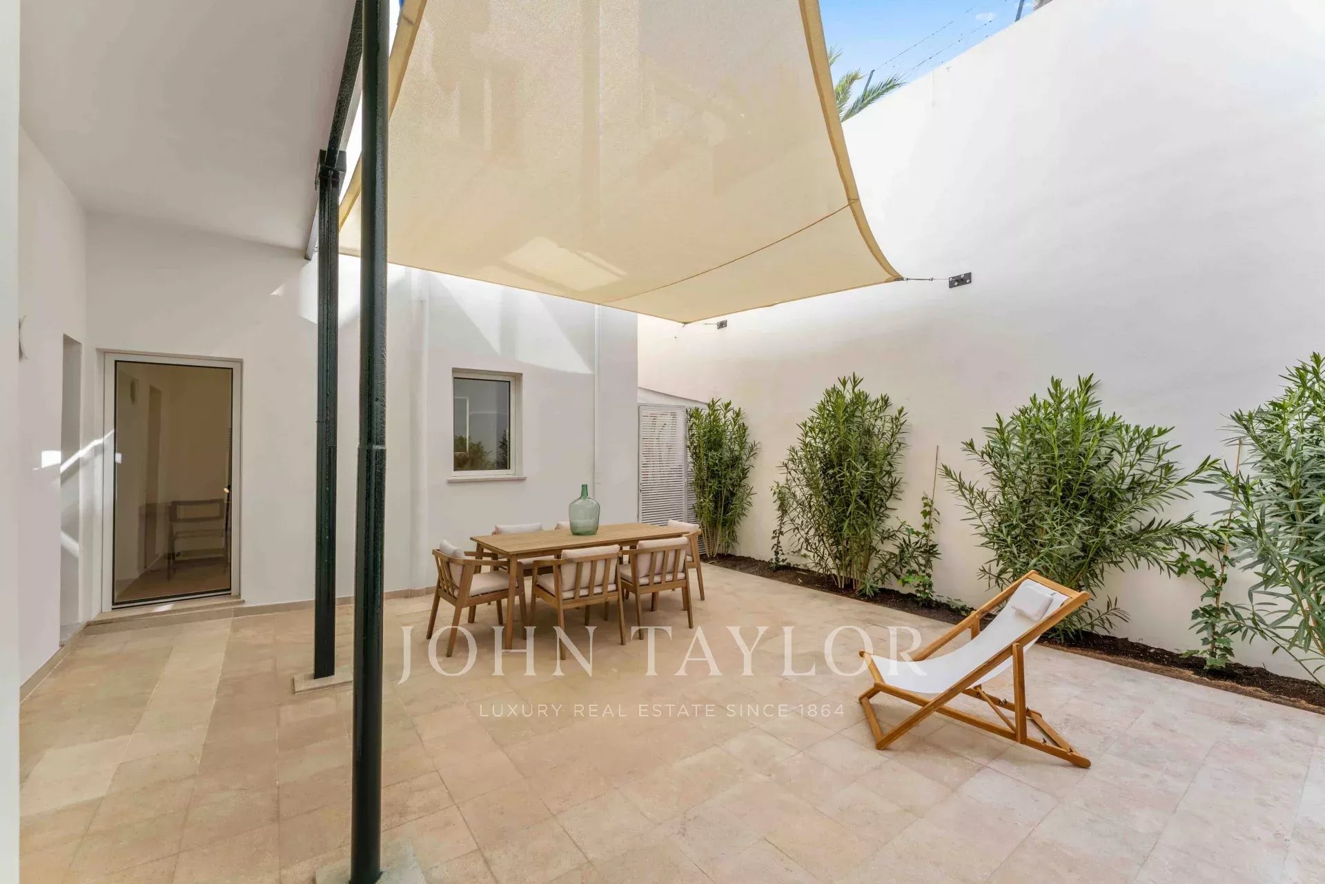 This modern ground floor apartment was fully renovated in 2025 and is located just steps from the Santa Catalina Market, the Tennis Club, and Palma’s historic centre. Offering approx. 150 m² of living space, it features an open-plan living and dining area with a fully equipped designer kitchen (Bora, Siemens), two double bedrooms, two bathrooms, and a study. The approx. 40 m² terrace invites you to enjoy outdoor living in the heart of the city and includes a small pool, ideal for cooling off on warm days. The apartment comes fully furnished and is finished to a high standard with air conditioning, double-glazed windows, and custom-made fittings throughout – an exclusive rental opportunity in one of Palma’s most sought-after neighbourhoods. Minimum rental period: 6 months.