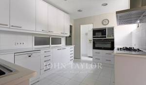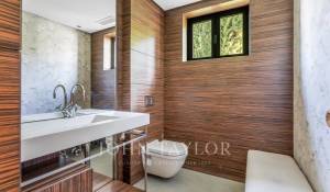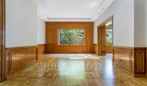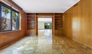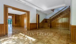 The central house, with an area of 850 m², consists of three floors, main floor with direct access to the garden with two floors and consolidated landscaping. This floor dedicated to the social area has a large living room facing south, living room, library, dining room with direct access to kitchen area and services. Guest toilet.
