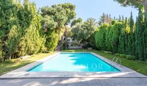 The leisure area consists of a splendid garden on two levels from where you can appreciate magnificent views of Madrid, 12x8 chlorine swimming pool, pool house and paddle tennis court. Elevator for access to all floors except the parking area. The house has North and South orientation.