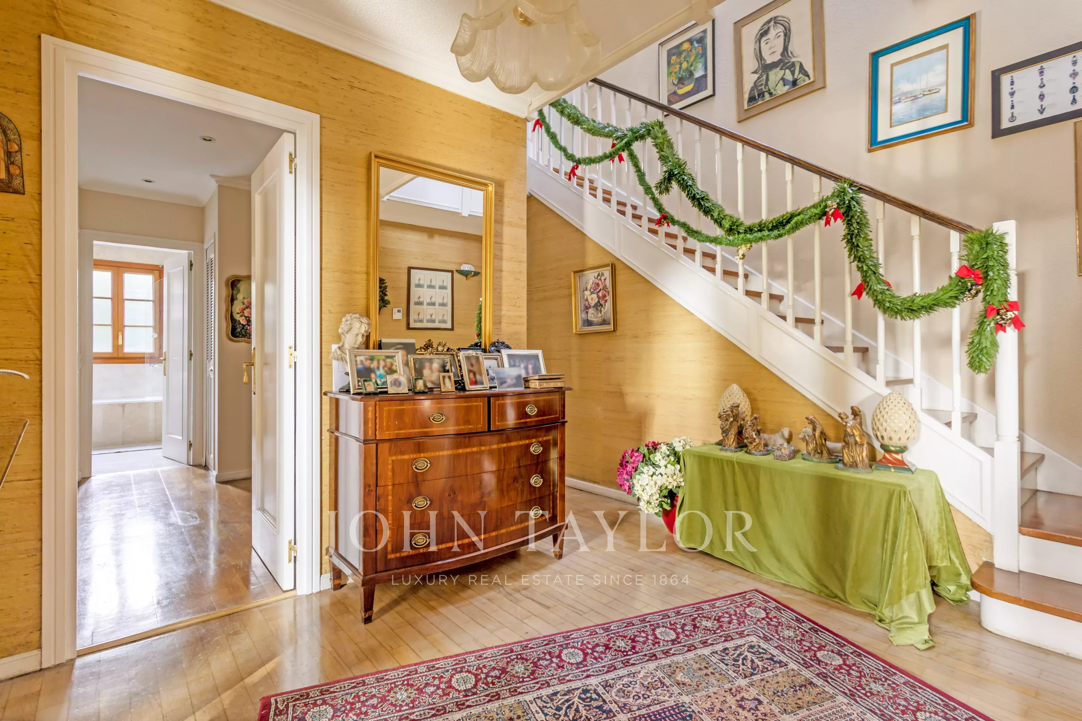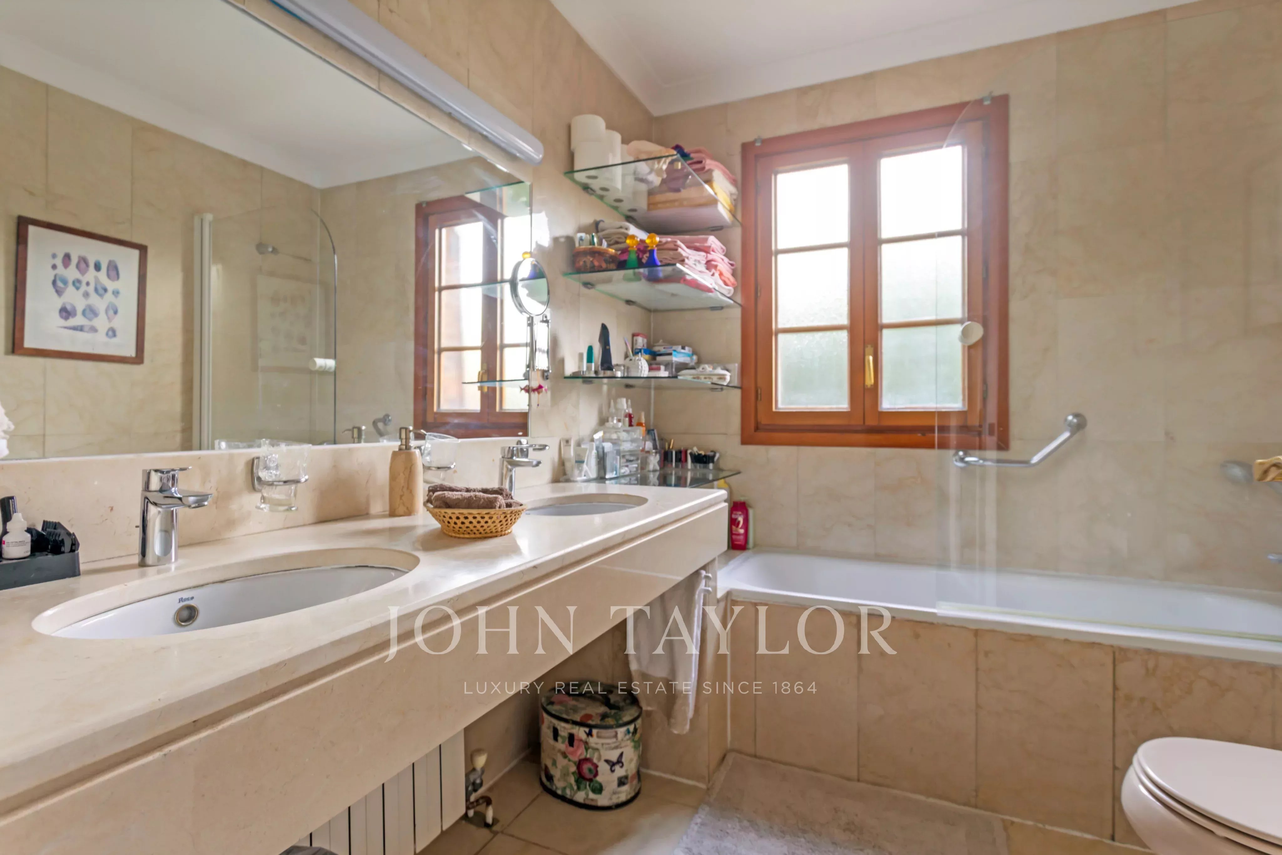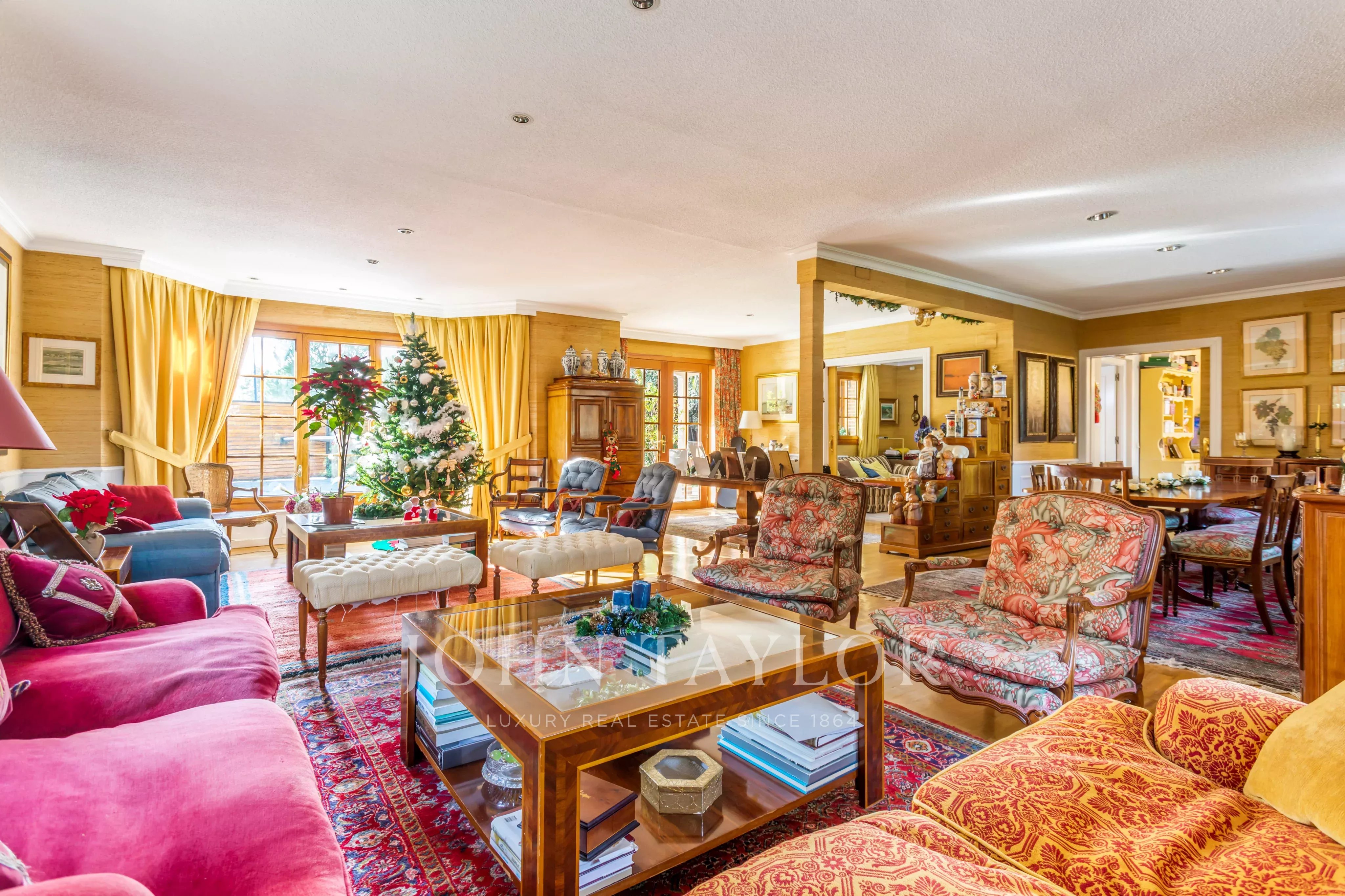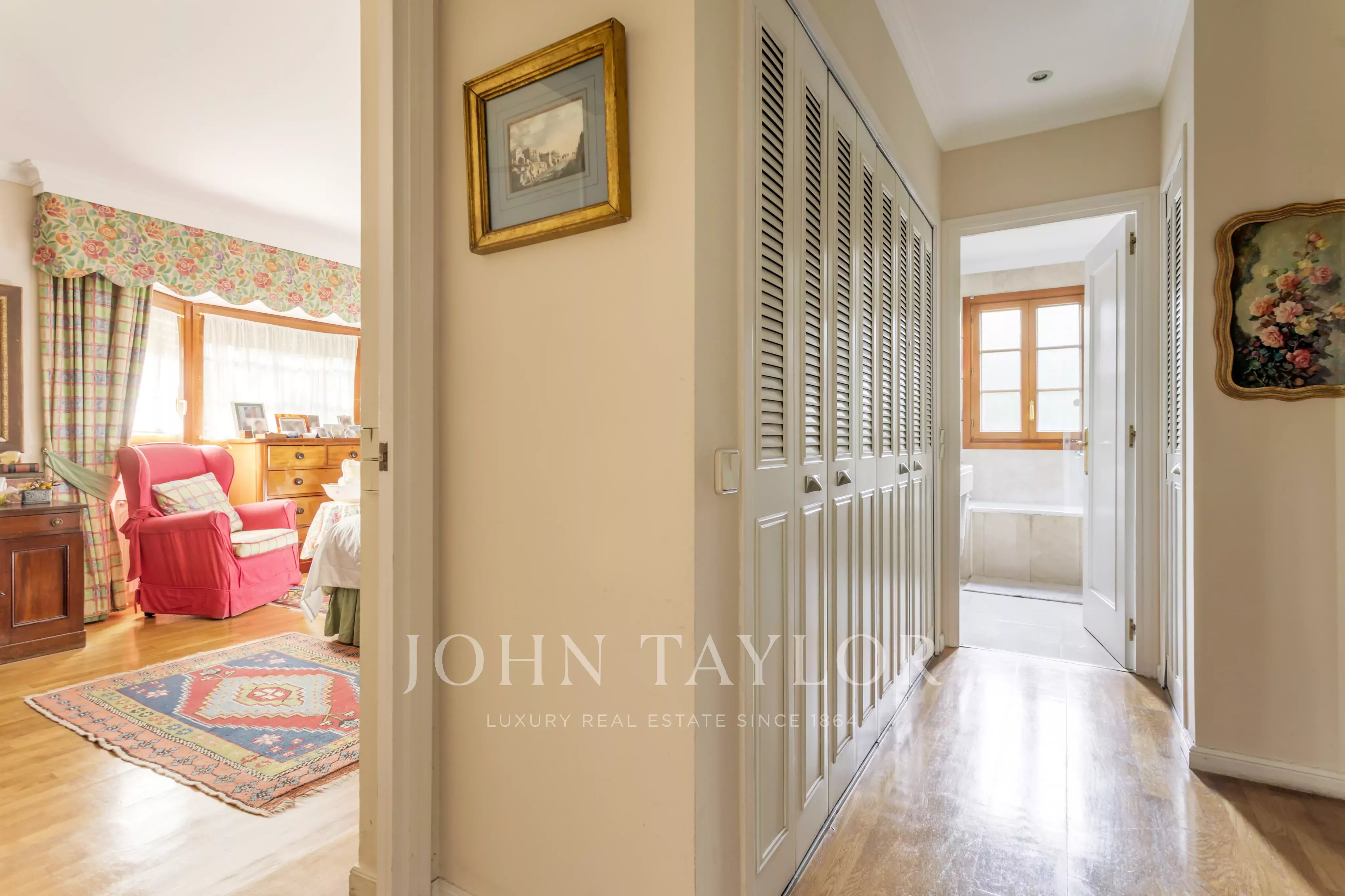 On the access floor, a large double height entrance hall, a large living room, dining room, kitchen, family dining room, guest toilet and maid's room with bathroom. On this same floor a family room or office and the master bedroom with en suite bathroom and dressing room. On the second floor, five bedrooms and two bathrooms, possibility to make more bathrooms. Large terrace overlooking the plot.