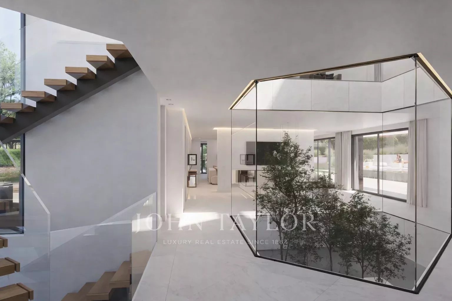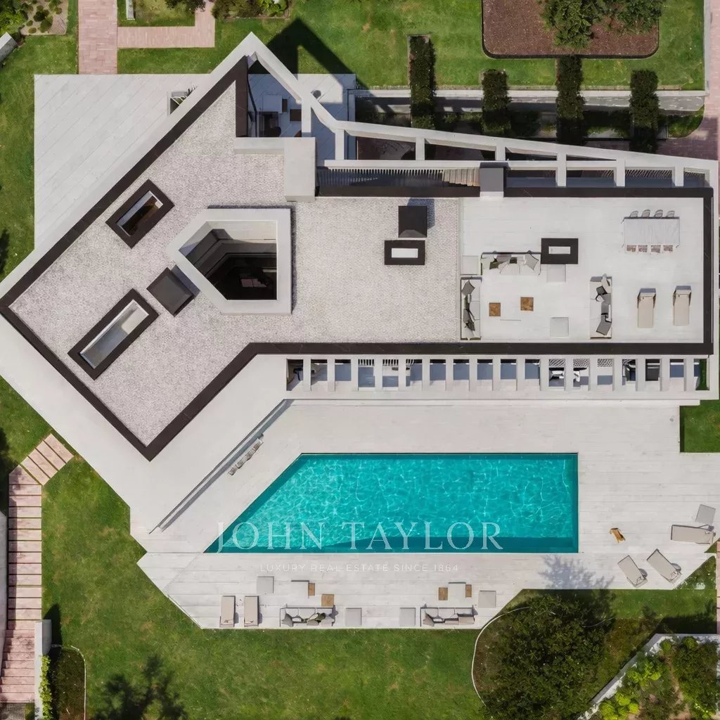 On the second floor, the interior design glazed and wooded courtyard separates the master suite from the rest of the other three bedrooms (possibility of four bedrooms), all with en suite bathroom, large dressing room and terrace. The master suite with access to a large terrace, facing south, and with free-standing bathtub and two hydro-massage showers and two separate dressing rooms.