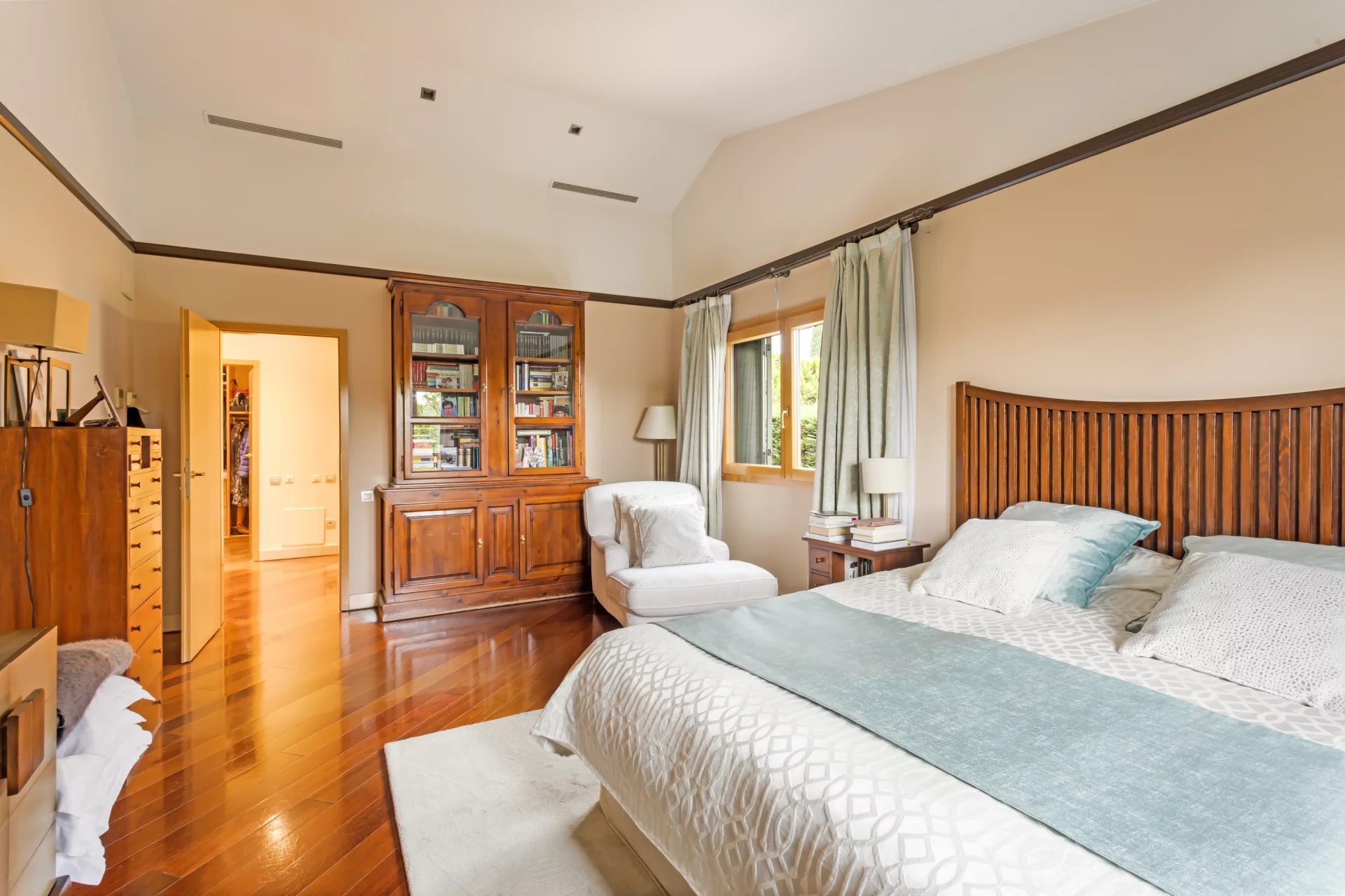 The master suite, with dressing room and en-suite bathroom.