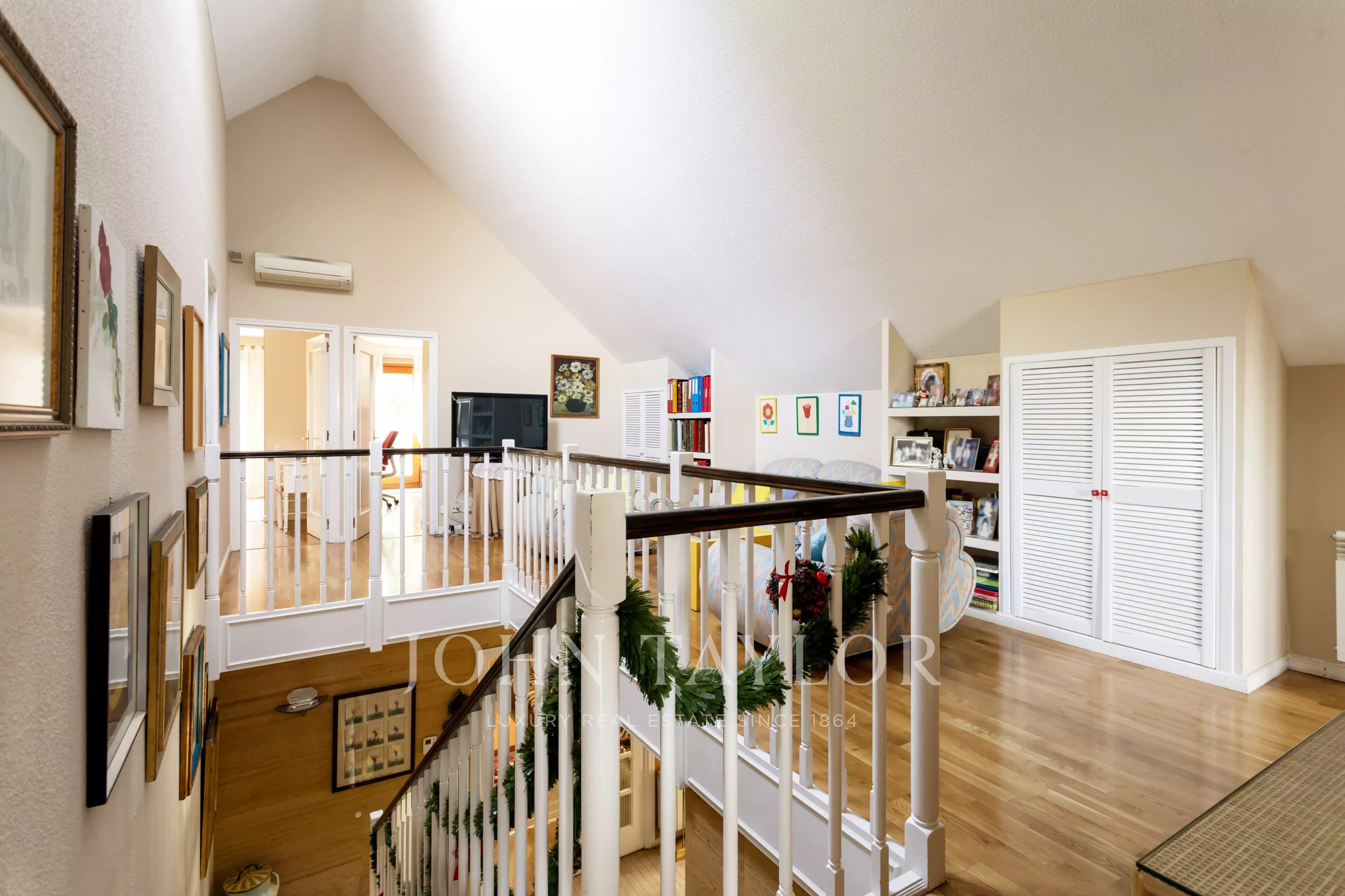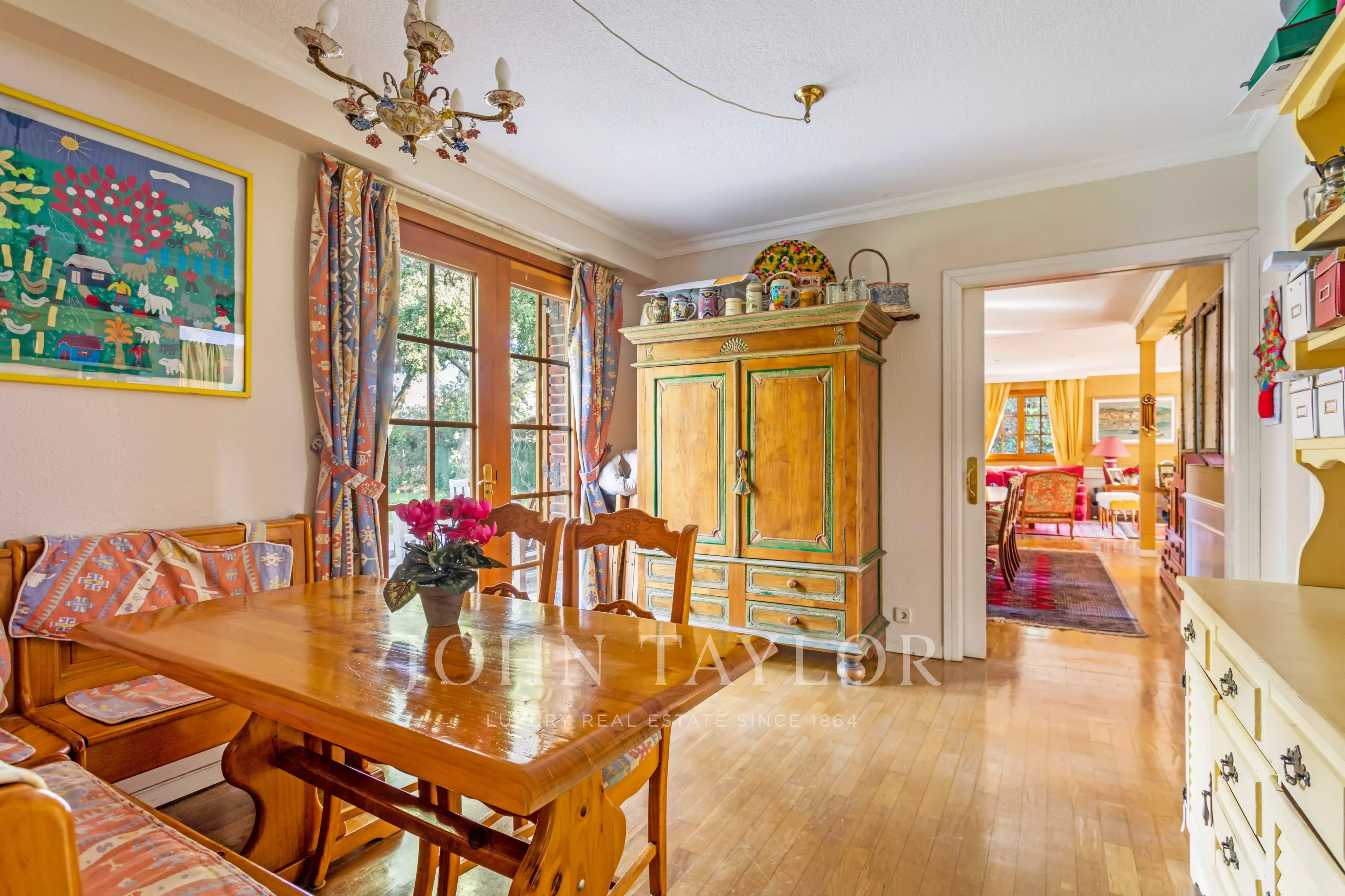 On the access floor, a large double height entrance hall, a large living room, dining room, kitchen, family dining room, guest toilet and maid's room with bathroom. On this same floor a family room or office and the master bedroom with en suite bathroom and dressing room. On the second floor, five bedrooms and two bathrooms, possibility to make more bathrooms. Large terrace overlooking the plot.