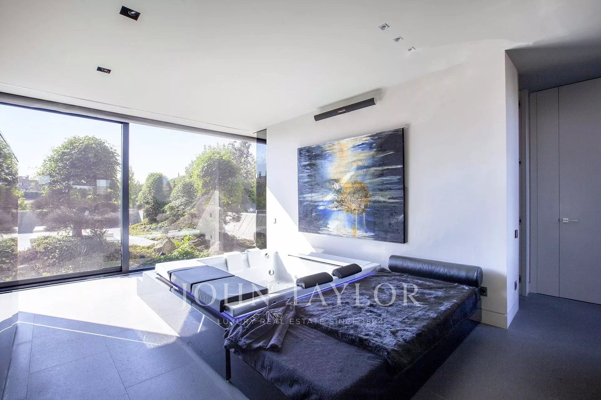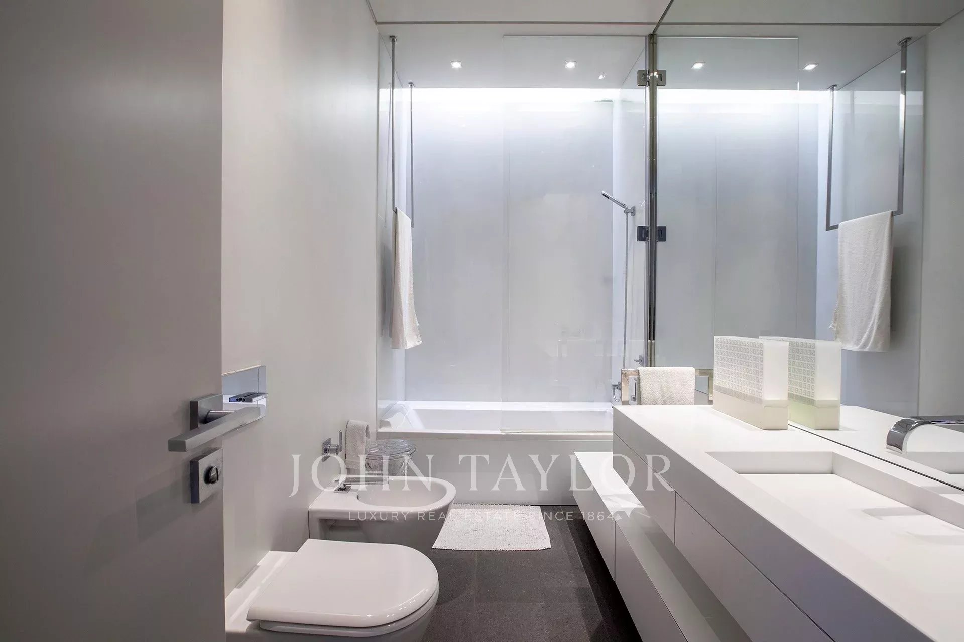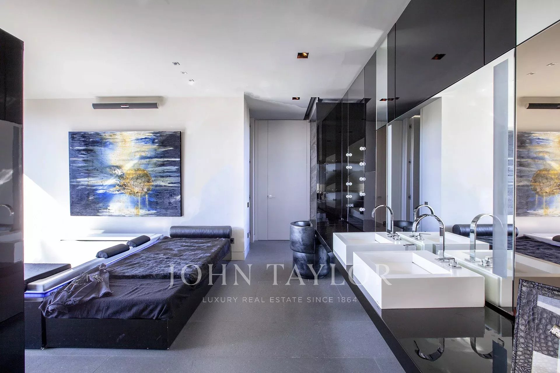 A 10m glass walkway would then give way to the spacious 120m diaphanous suite plus a 22m² double dressing room that is hidden by a wall with a Mondrian mirror set. 3*3 TEUCO Jacuzzi. Shower of 3,8m².
