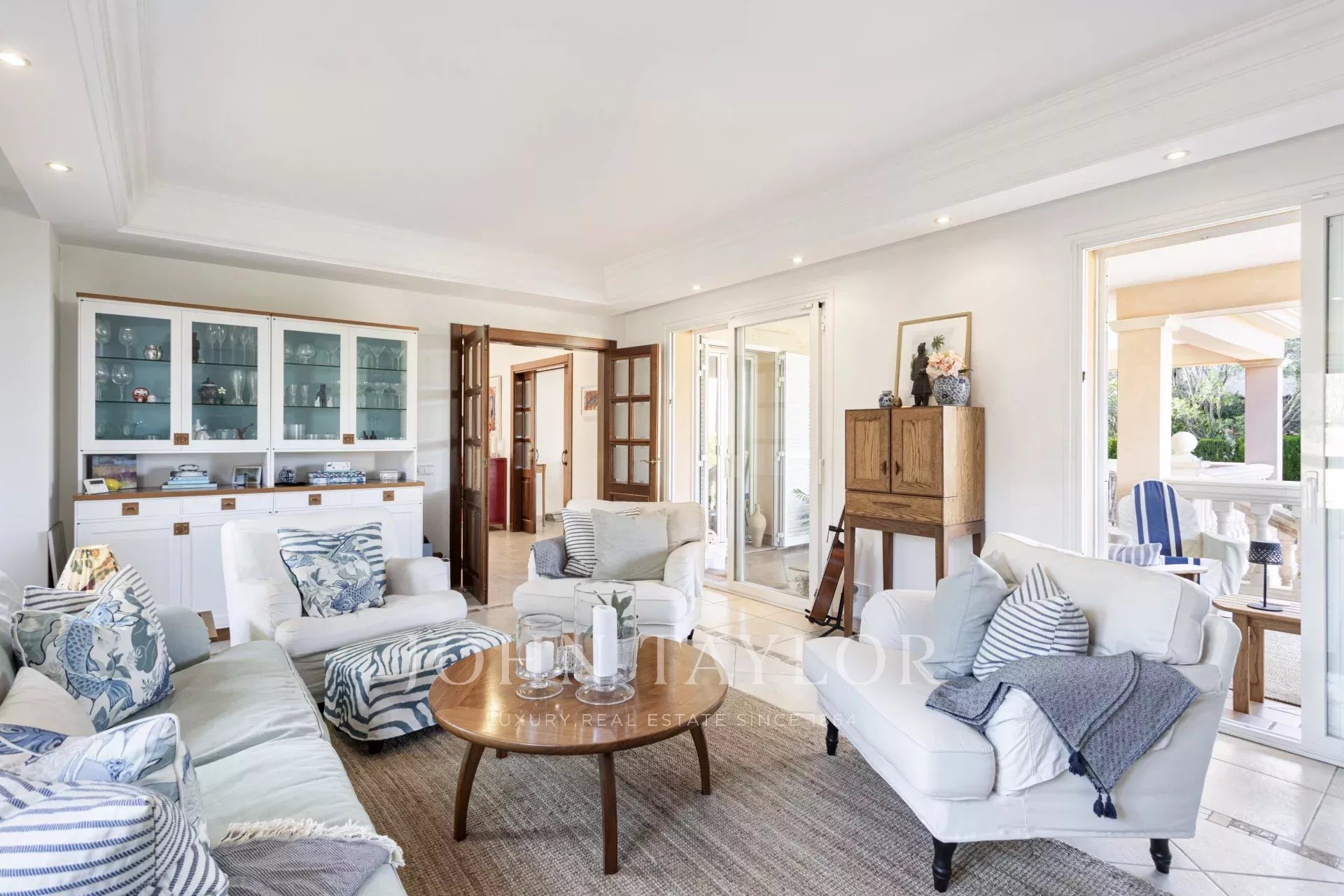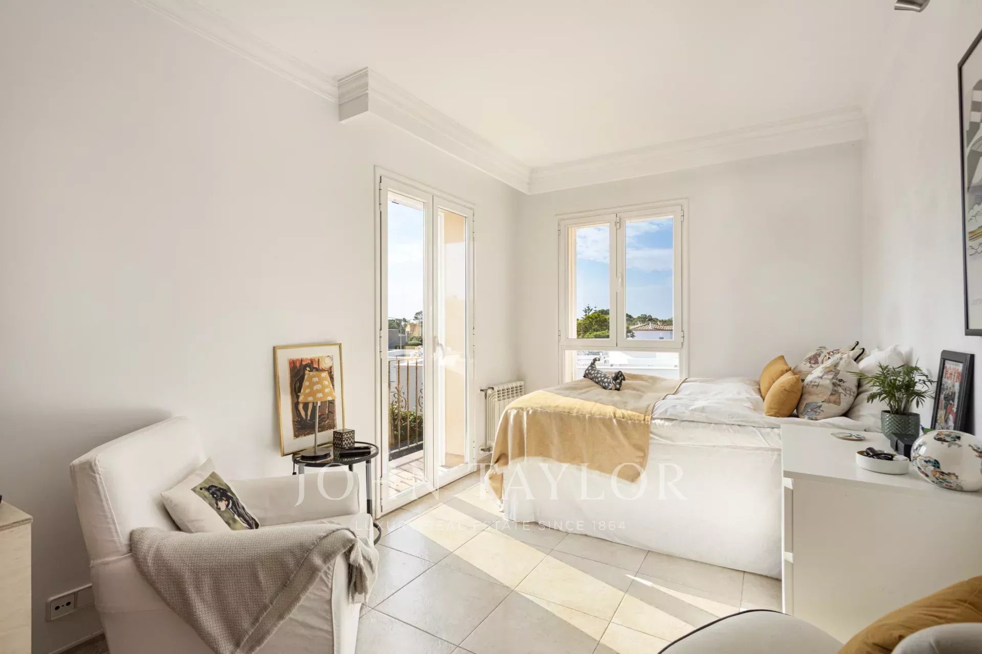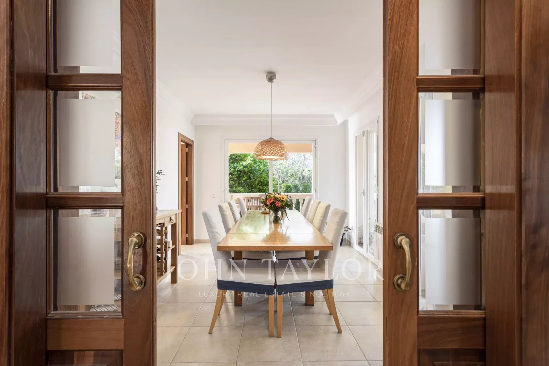 Step into a welcoming reception area that opens into a bright and spacious living-dining room, featuring a cozy fireplace—perfect for family gatherings. The fully equipped kitchen offers a separate dining and workspace, ideal for modern living. Enjoy seamless indoor-outdoor living with large open and covered terraces that lead directly into the private garden.