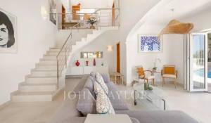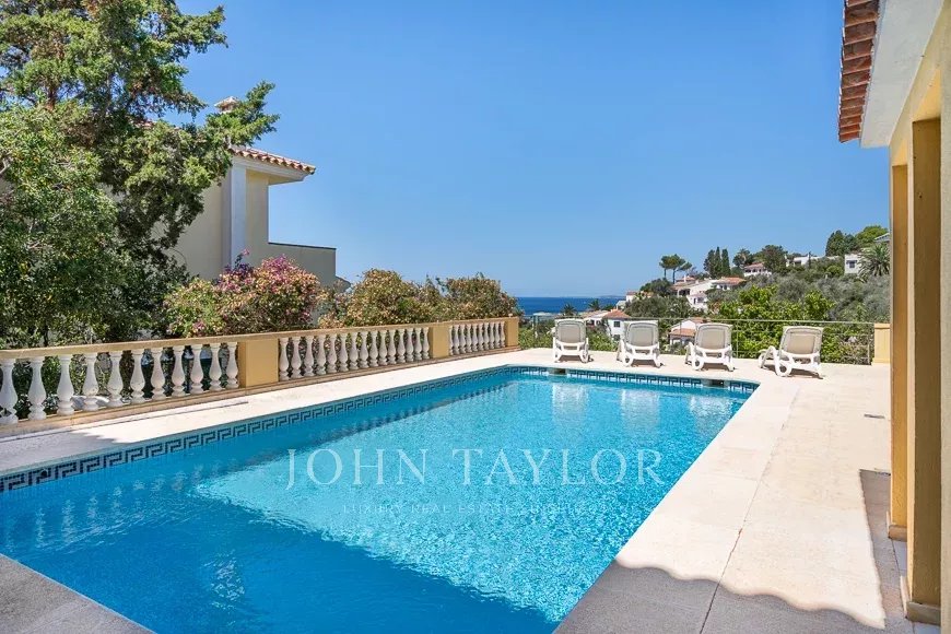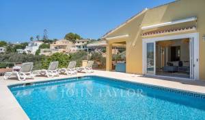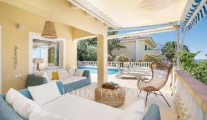 With stunning panoramic sea views, this beautiful and spacious detached villa is an ideal family home for year-round living or as a vacation getaway. South facing and only minutes away from the stunning Son Bou beach, this immaculate property has a constructed area of 248 m2, sits on a plot of 845 m2 and has fantastic views from virtually every room. Built on 3 levels, the main entrance is at the top of the property where there is an entrance hallway and then an open plan staircase leading to the lower floors. The bedrooms and en-suite bathrooms are located on the upper and middle floor, while the living room occupies the entire first floor. All bedrooms have fitted closets and air conditioning/heating, and 3 of them also have access to private balconies. The living room is modern and spacious, with sliding doors on all sides leading to the pool, terraces and the fantastic covered terrace which provides excellent space for an outdoor lounge and dining area which form such an important part of Mediterranean living. The large independent kitchen also leads out onto this same terrace as well as a smaller terrace that provides additional dining space. Adjacent to the kitchen is a large laundry room. The living room also has air conditioning / heating. Other features of this magnificent villa include PVC windows with double glazing, aluminum shutters and it is sold semi-furnished and equipped. Son Bou has one of the best beaches in Menorca with local amenities including a variety of seasonal stores, bars and restaurants, the nearest major town being Alayor. Mahon, the capital of Menorca, is only 20 km away. Amazing villa in a sought after area.
