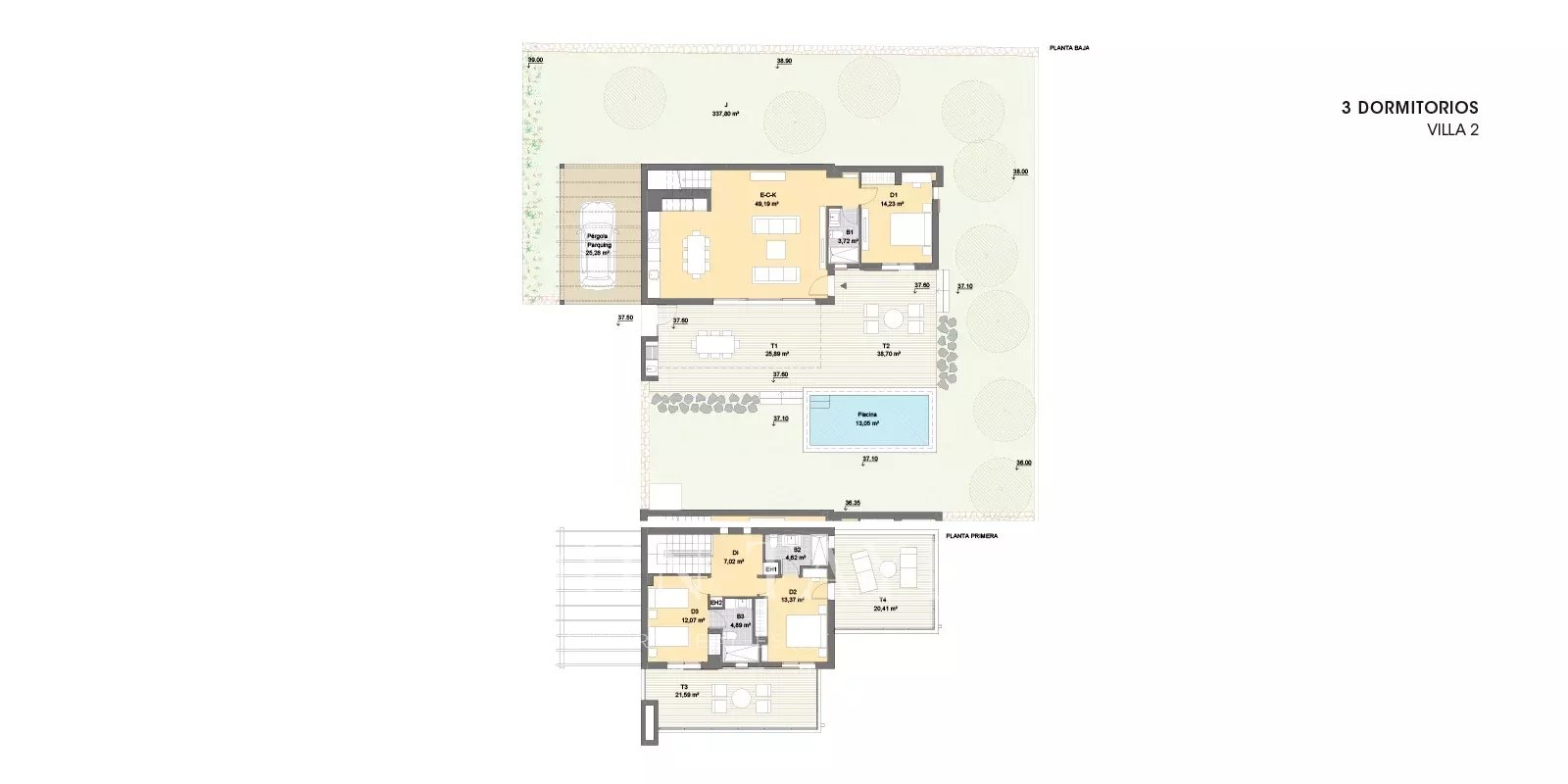 Discover a unique opportunity in luxury living. This exclusive chalet development, currently under construction, offers a sophisticated lifestyle and exceptional amenities. The prestigious brand Porcelanosa ensures quality and differentiation in every detail, from bathrooms to kitchens and flooring.