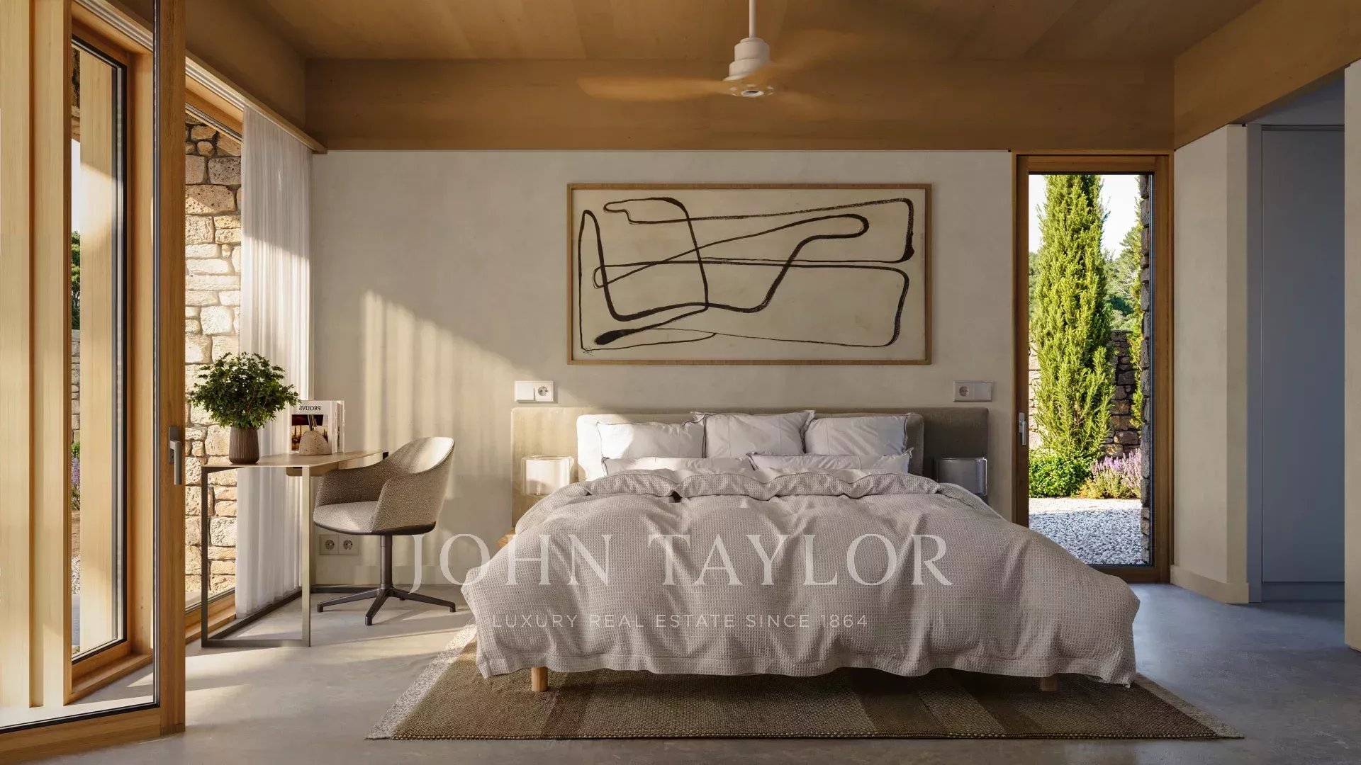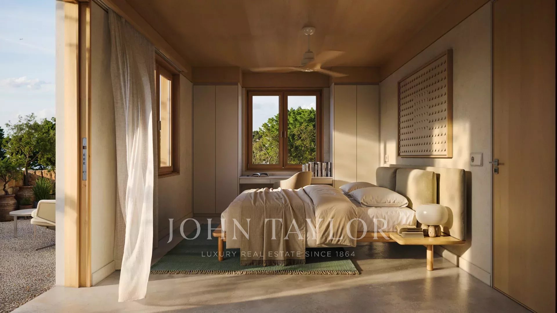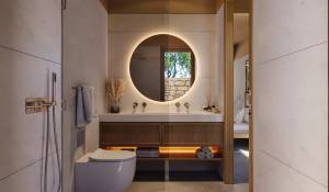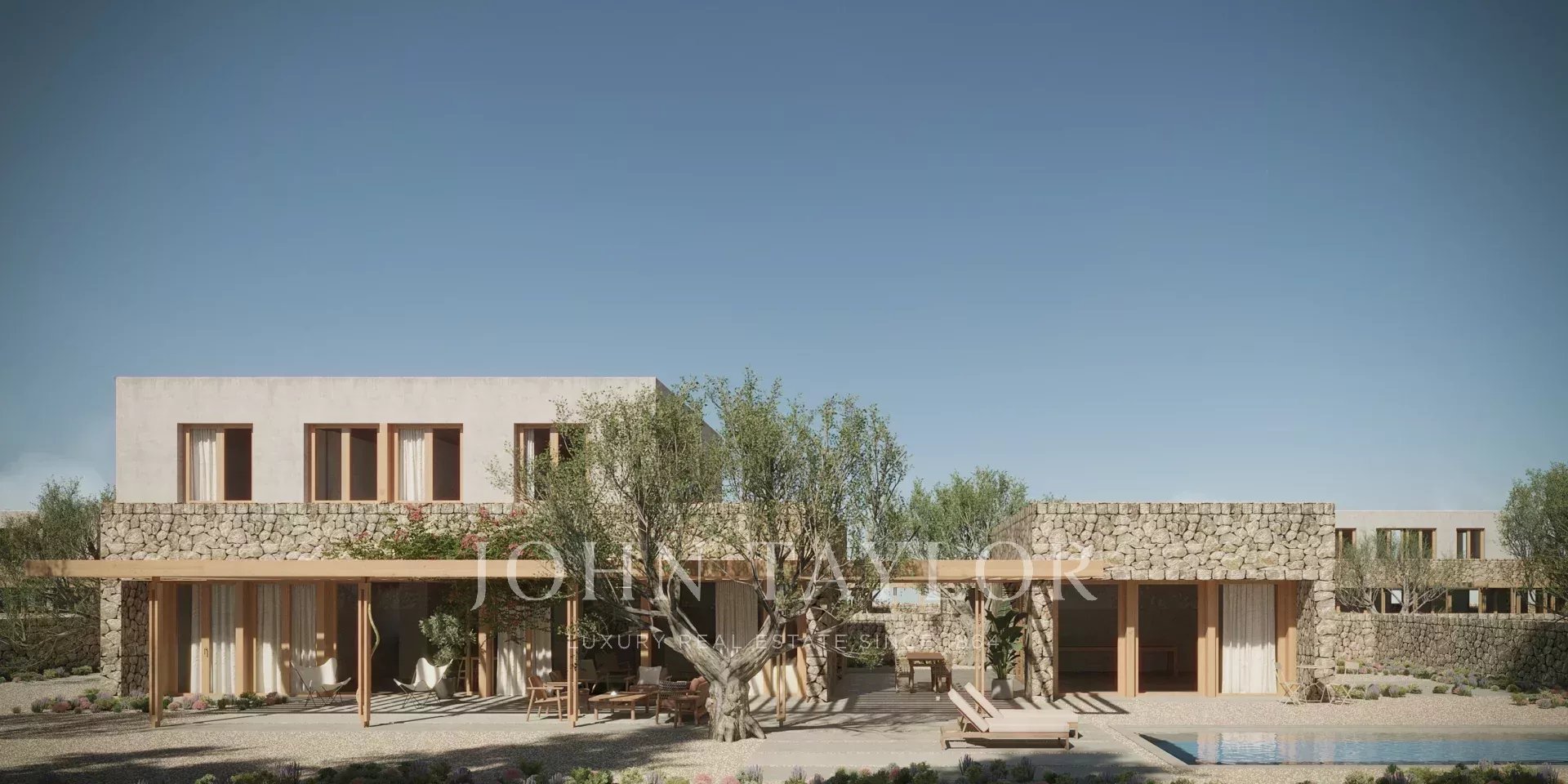 Located at Son Parc, the villa features carefully selected interior finishes in earthy, natural tones, designed to blend harmoniously with the Mediterranean landscape while highlighting low-impact, natural materials such as clay-based paints that create a warm, healthy, and sophisticated atmosphere.