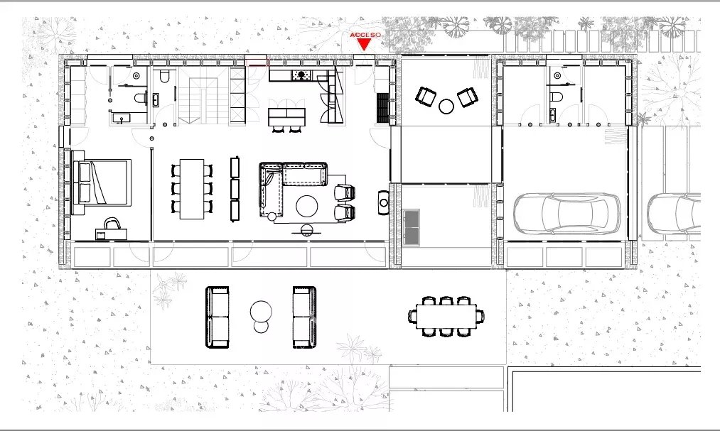 In contrast, the exterior façade is clad in natural Menorcan stone, reinforcing the aesthetic connection with the local environment and respecting the island’s visual identity.