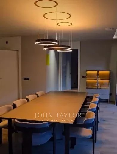 Lighting design by BOVER Barcelona, enhancing natural materials and architectural features while creating warm, functional spaces.
