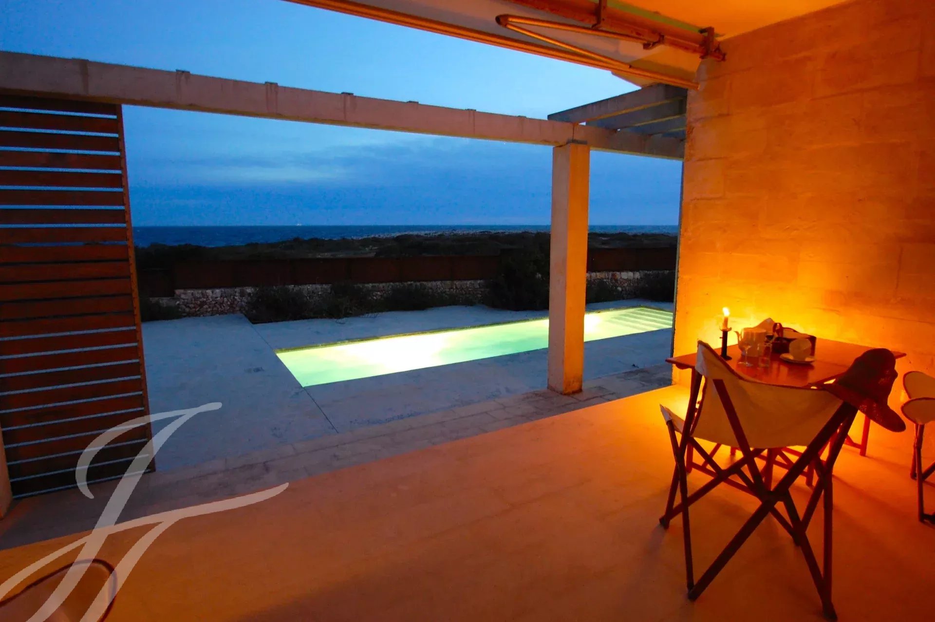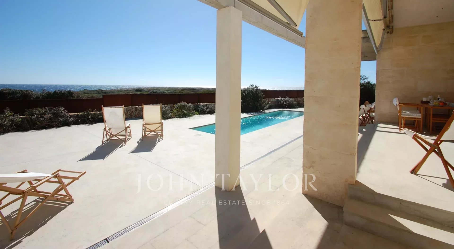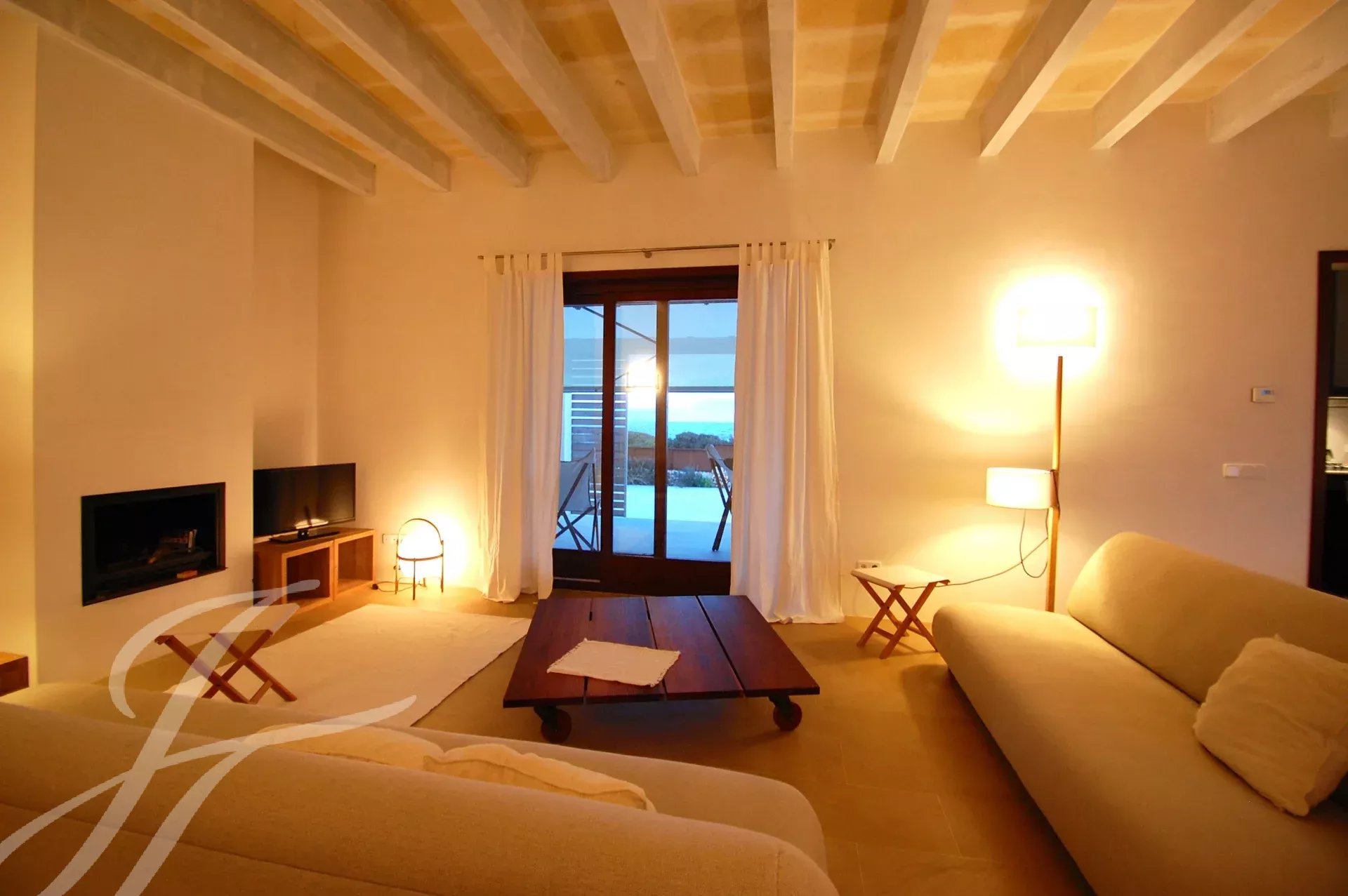 Beautiful newly built villa at Binissafuller, designed with exquisite taste and traditional materials of the highest quality, selected expressly to achieve the highest level. The house is distributed in spacious interior and exterior areas. The quality of its finishes and its sea views make it exceptional. It is built all on one floor. It consists of an entrance hall, a large modern kitchen, a large living-dining room with a fireplace and direct access through large glass doors to the outside terrace, three double bedrooms, two full bathrooms, one of them en suite, an exterior bathroom-laundry room, and a garage. The property has several terraces around the house and garden areas next to the pool. From any point, the views are beautiful and it has direct access to the sea with a bathing area in front of the house. It has underfloor heating. Visiting this wonderful villa is to start enjoying it. It has a tourist license.