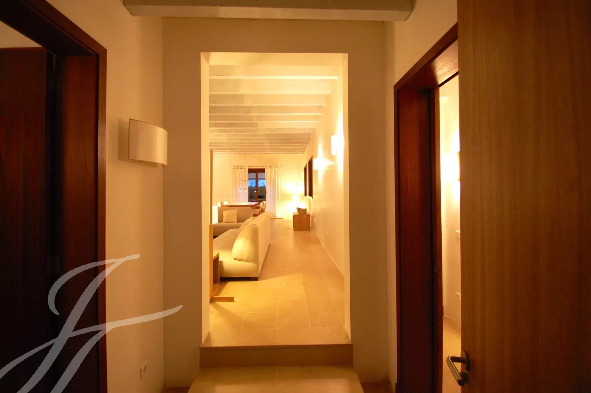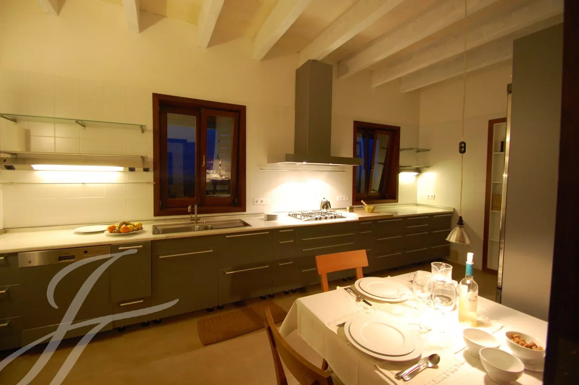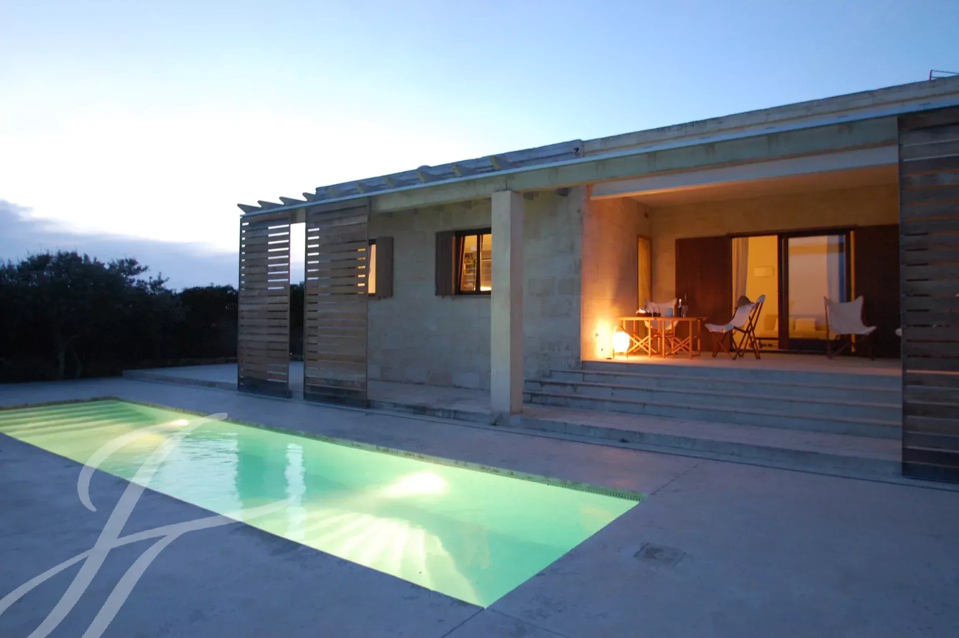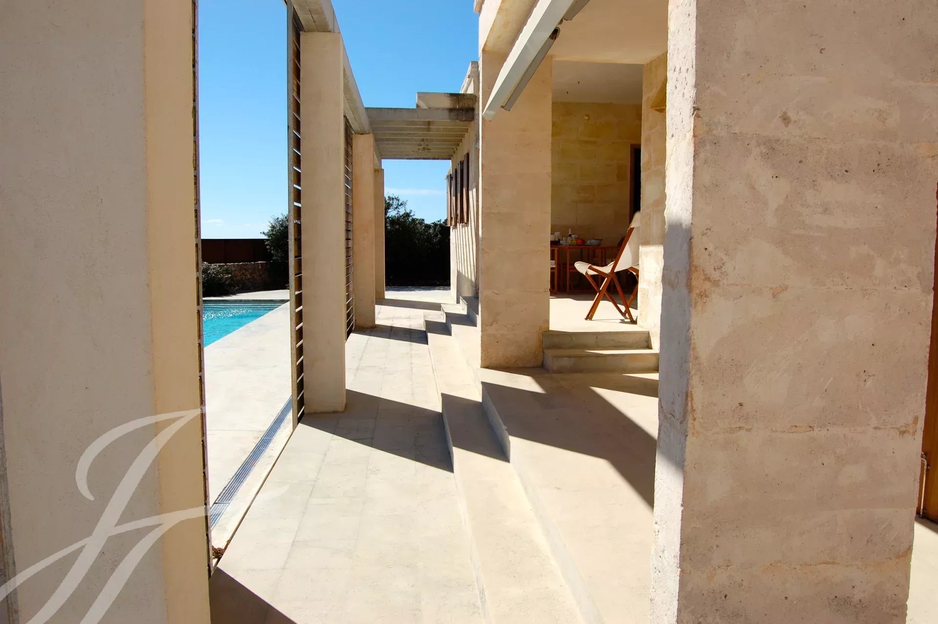 Beautiful newly built villa at Binissafuller, designed with exquisite taste and traditional materials of the highest quality, selected expressly to achieve the highest level. The house is distributed in spacious interior and exterior areas. The quality of its finishes and its sea views make it exceptional. It is built all on one floor. It consists of an entrance hall, a large modern kitchen, a large living-dining room with a fireplace and direct access through large glass doors to the outside terrace, three double bedrooms, two full bathrooms, one of them en suite, an exterior bathroom-laundry room, and a garage. The property has several terraces around the house and garden areas next to the pool. From any point, the views are beautiful and it has direct access to the sea with a bathing area in front of the house. It has underfloor heating. Visiting this wonderful villa is to start enjoying it. It has a tourist license.