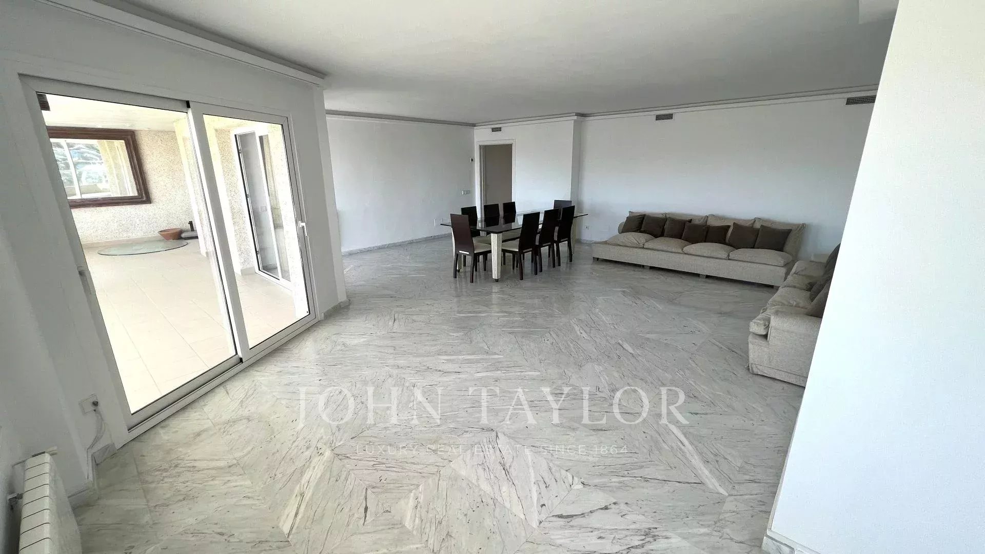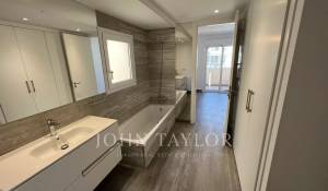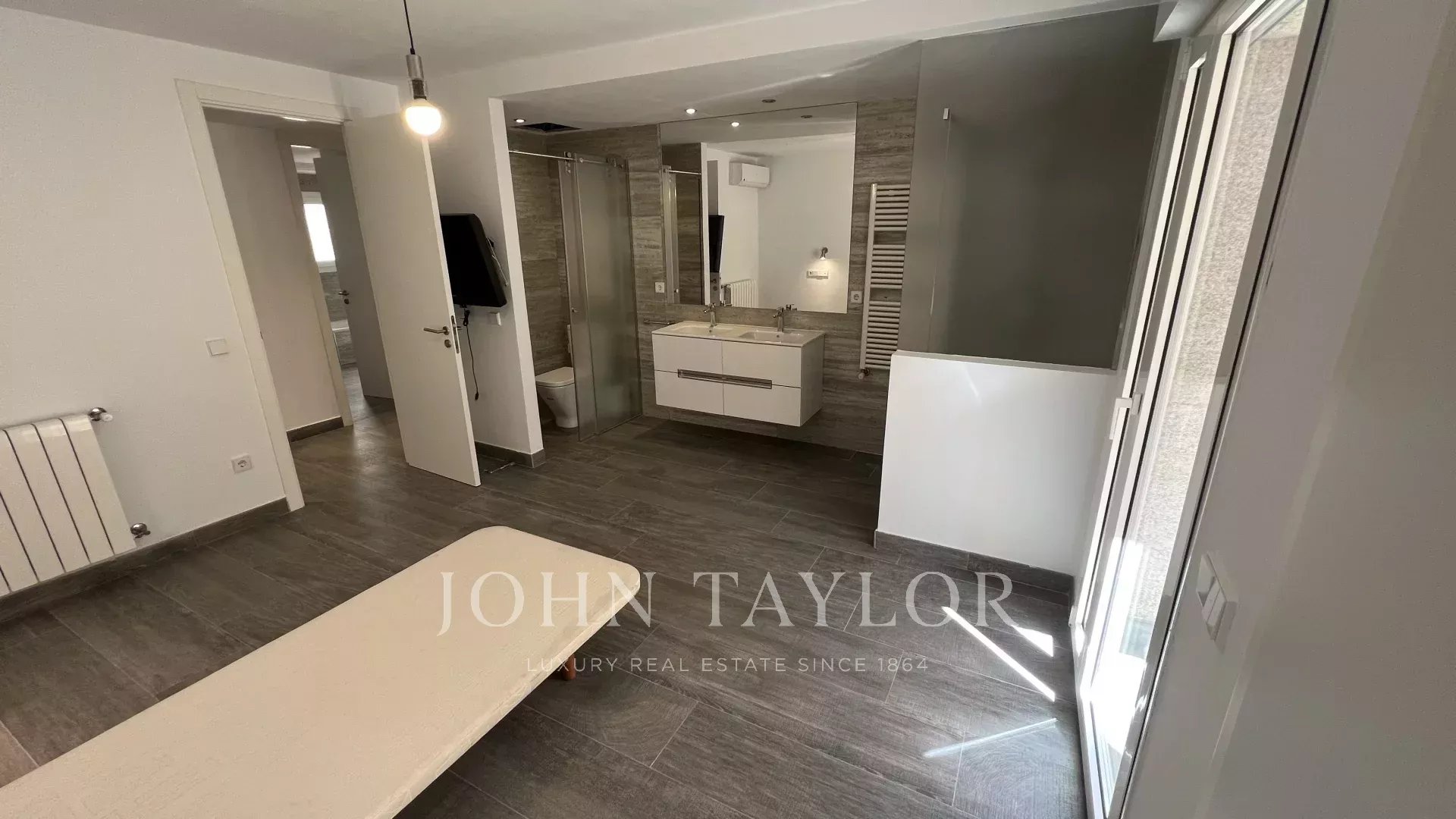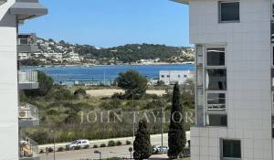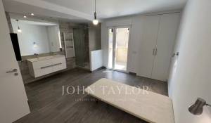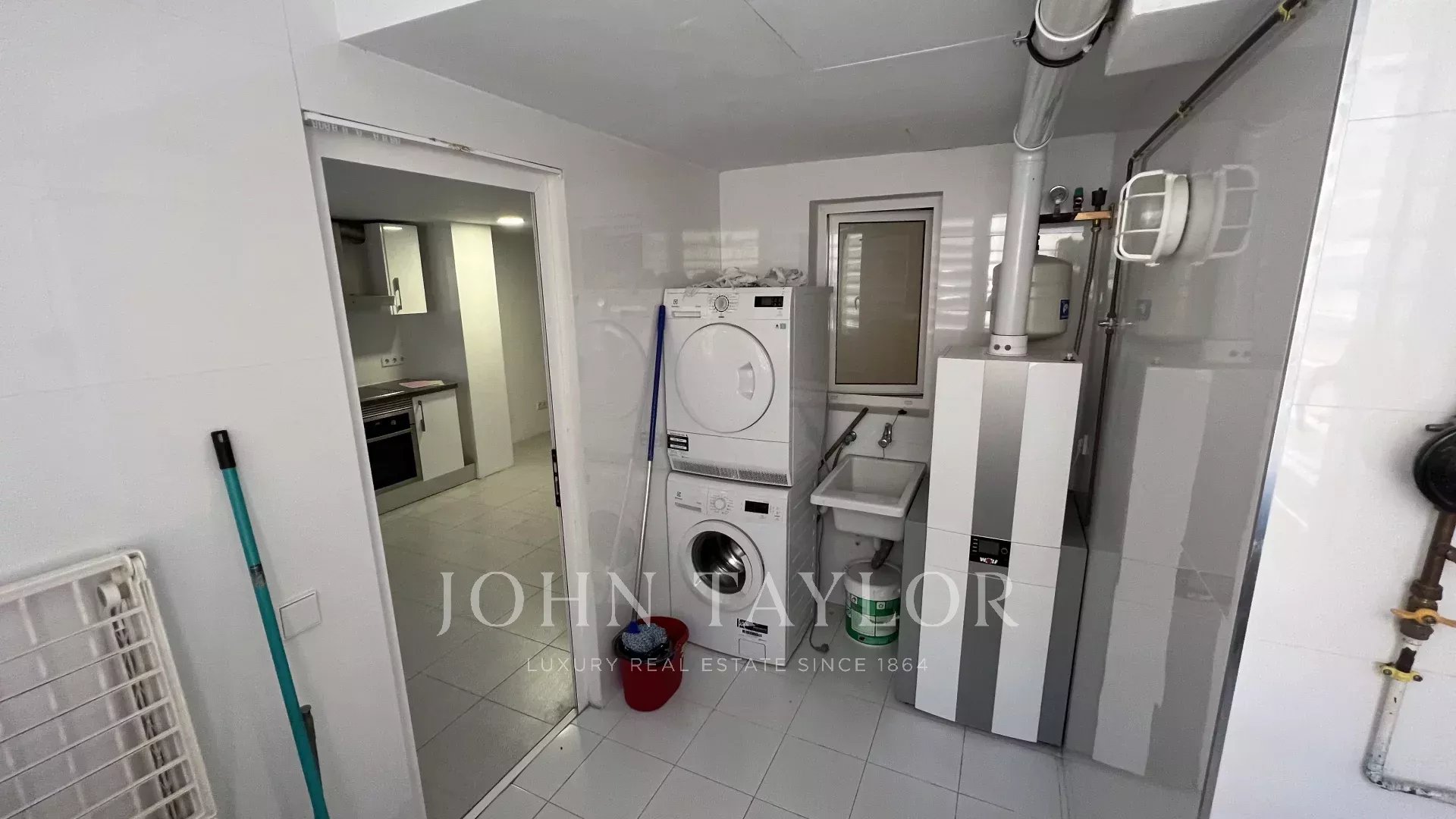 The layout of the property has been carefully designed, starting with an elegant entrance hall that perfectly separates the day and night areas. In the day area, there is a bright and spacious living-dining room that opens onto a spectacular 52 m² terrace with 180° panoramic sea views, the perfect place to enjoy the Mediterranean landscape and climate. The generously sized kitchen is equipped with a table for informal meals and features a large, independent laundry room.