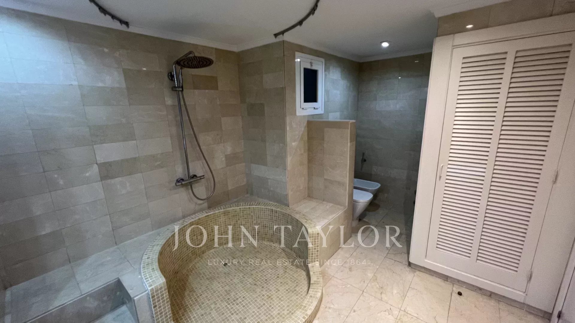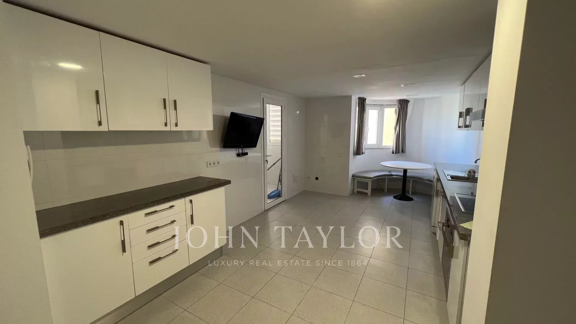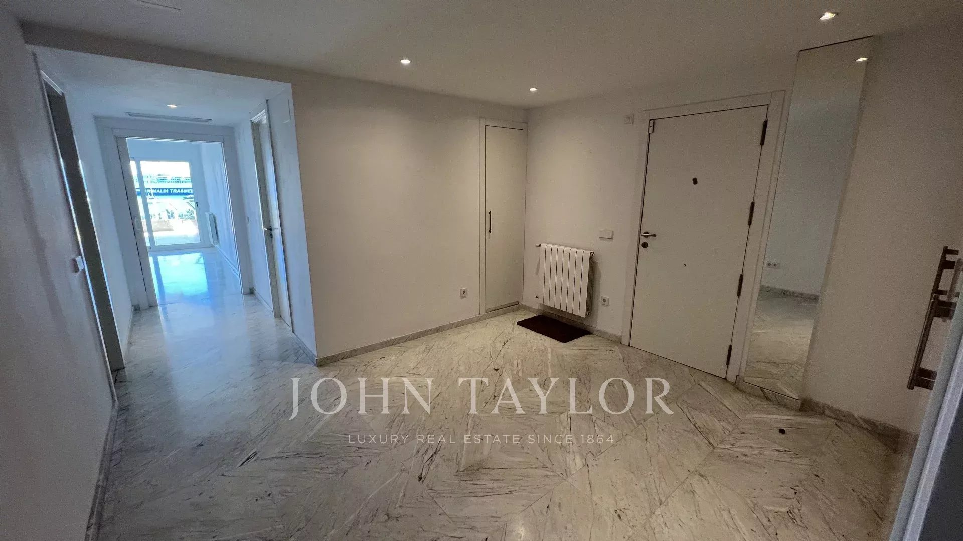 The layout of the property has been carefully designed, starting with an elegant entrance hall that perfectly separates the day and night areas. In the day area, there is a bright and spacious living-dining room that opens onto a spectacular 52 m² terrace with 180° panoramic sea views, the perfect place to enjoy the Mediterranean landscape and climate. The generously sized kitchen is equipped with a table for informal meals and features a large, independent laundry room.