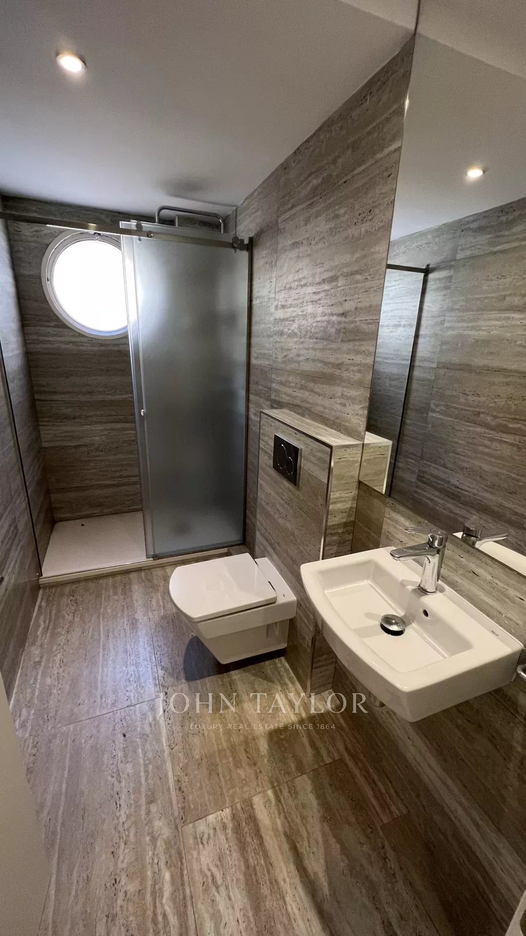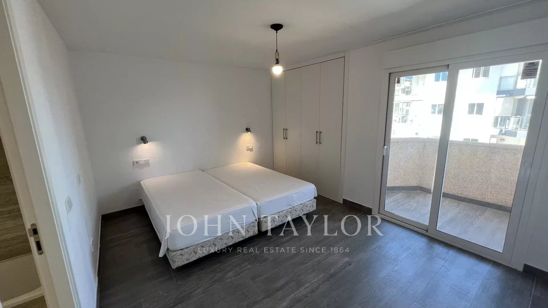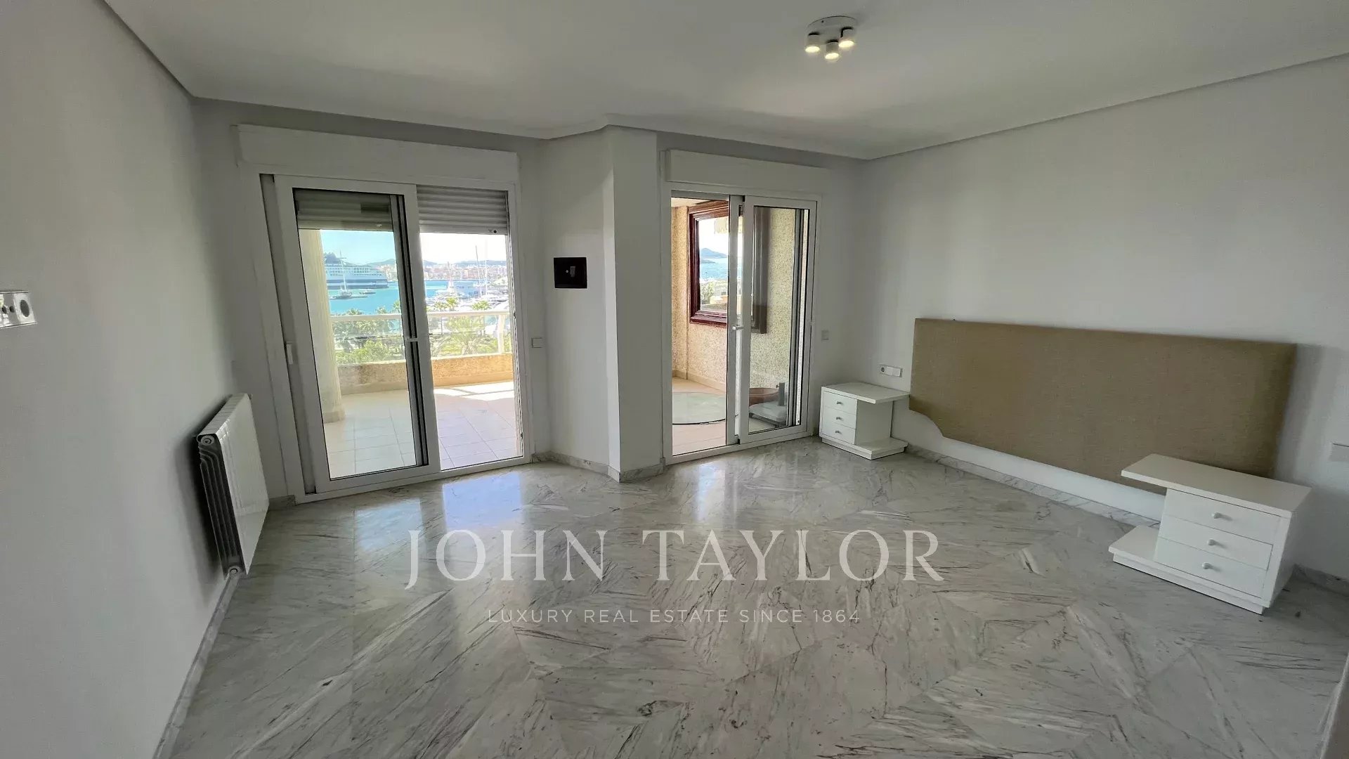 The night area offers four en-suite bedrooms. The master suite enjoys exceptional views of Dalt Vila, while two of the three additional bedrooms have charming private terraces overlooking Botafoch and Talamanca, adding a touch of exclusivity and privacy. In addition, the apartment includes a service room with a full bathroom, ideal for staff or as additional space.