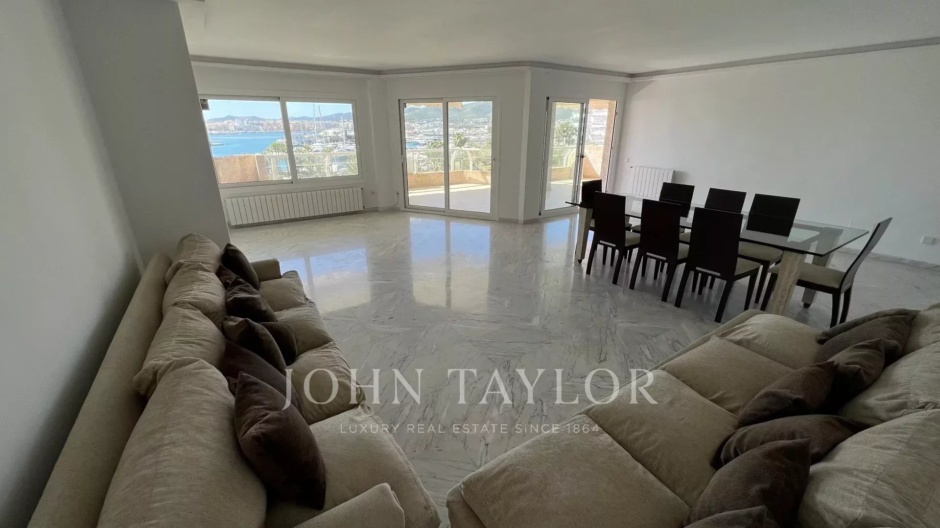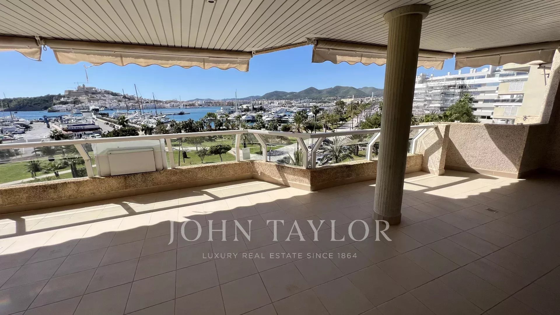 Located in one of the most iconic and prestigious buildings in Marina Botafoch, this stunning 235 m² apartment stands out for its unparalleled views of Dalt Vila and Formentera, thanks to its privileged location on the upper floors of the building.