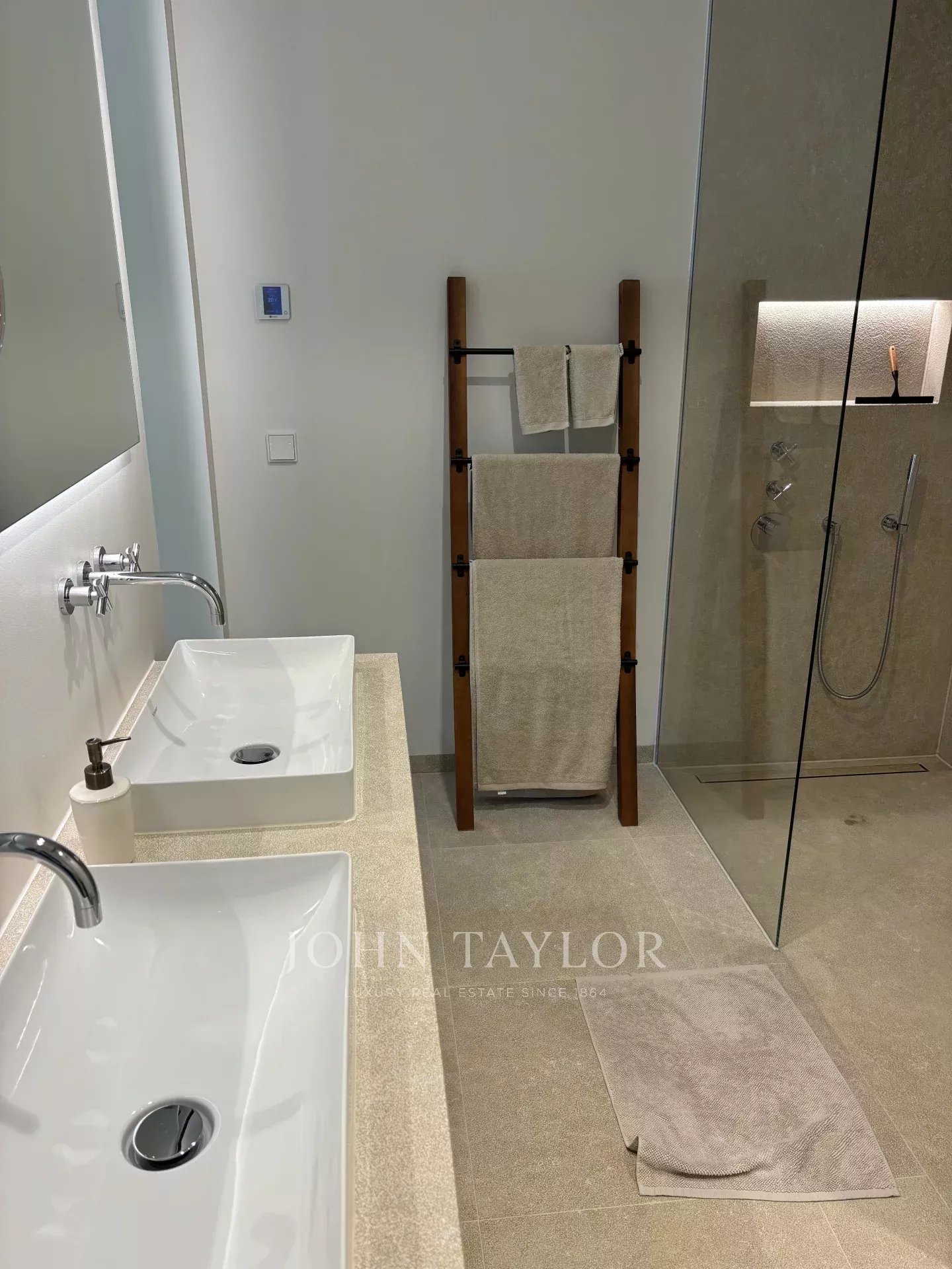 The modern design blends luxury with Ibizan character, featuring a striking white façade adorned with vertical gardens and a breathtaking 15-metre-high central courtyard. Fully furnished with premium finishes, the flat boasts kitchens fitted with Gaggenau appliances and Dornbracht fixtures.