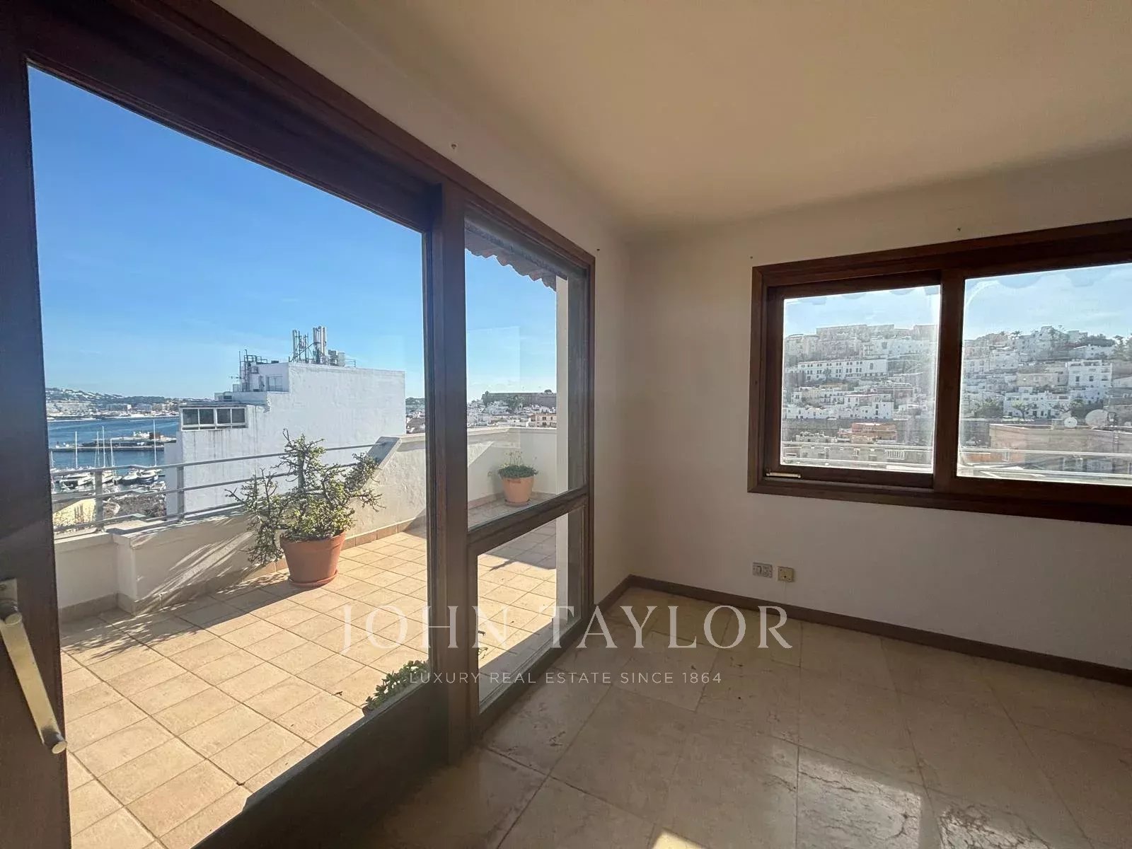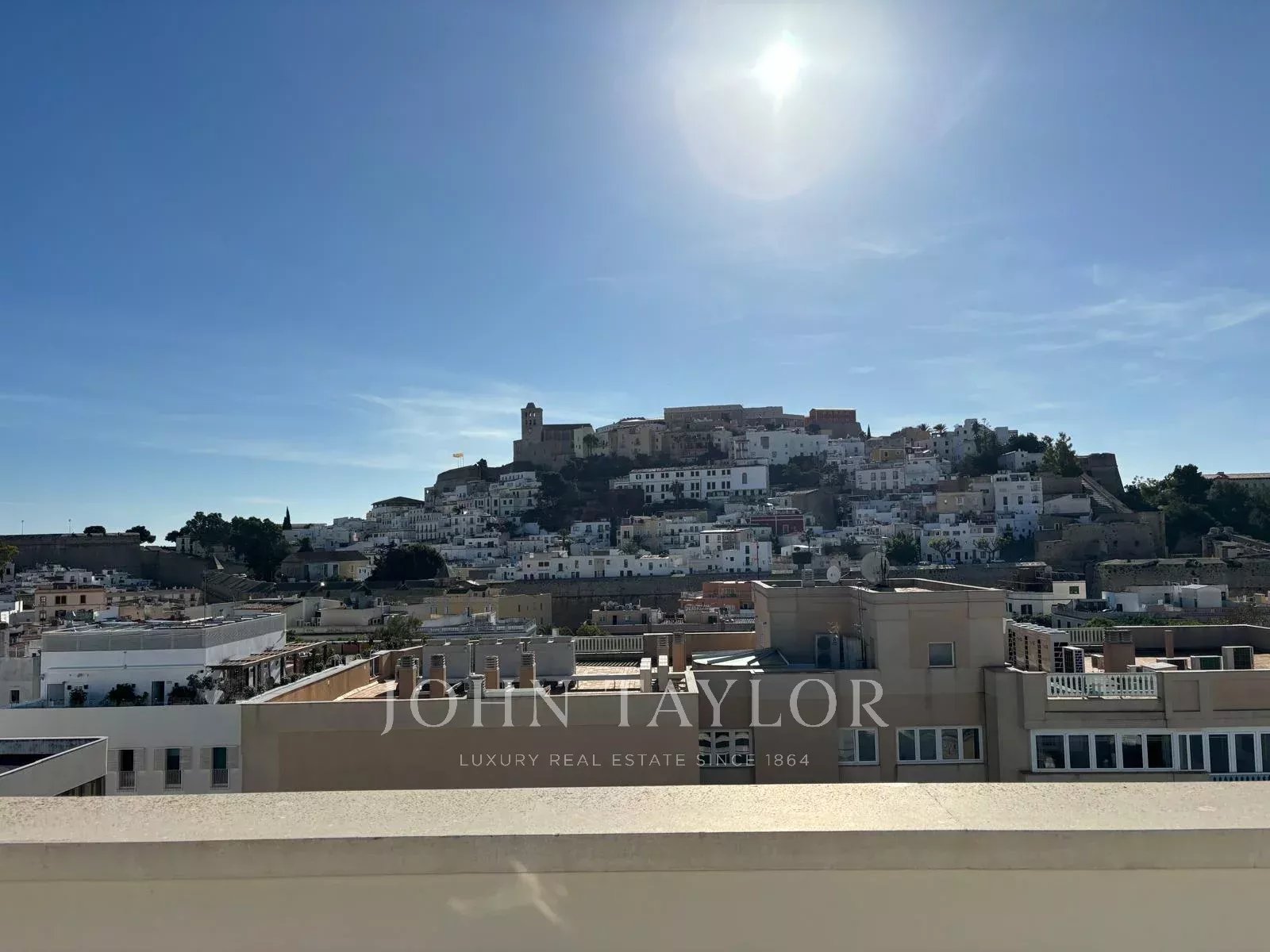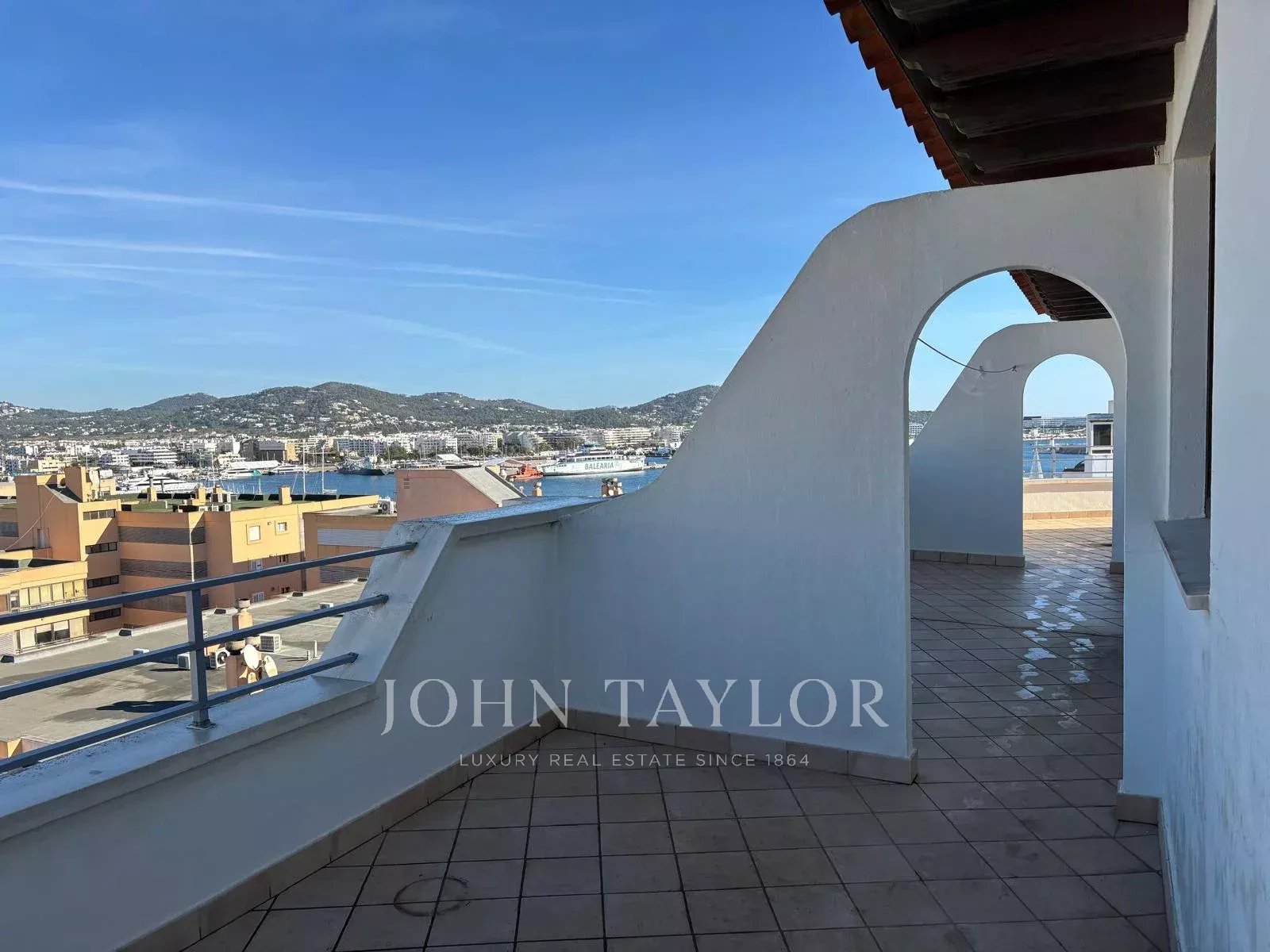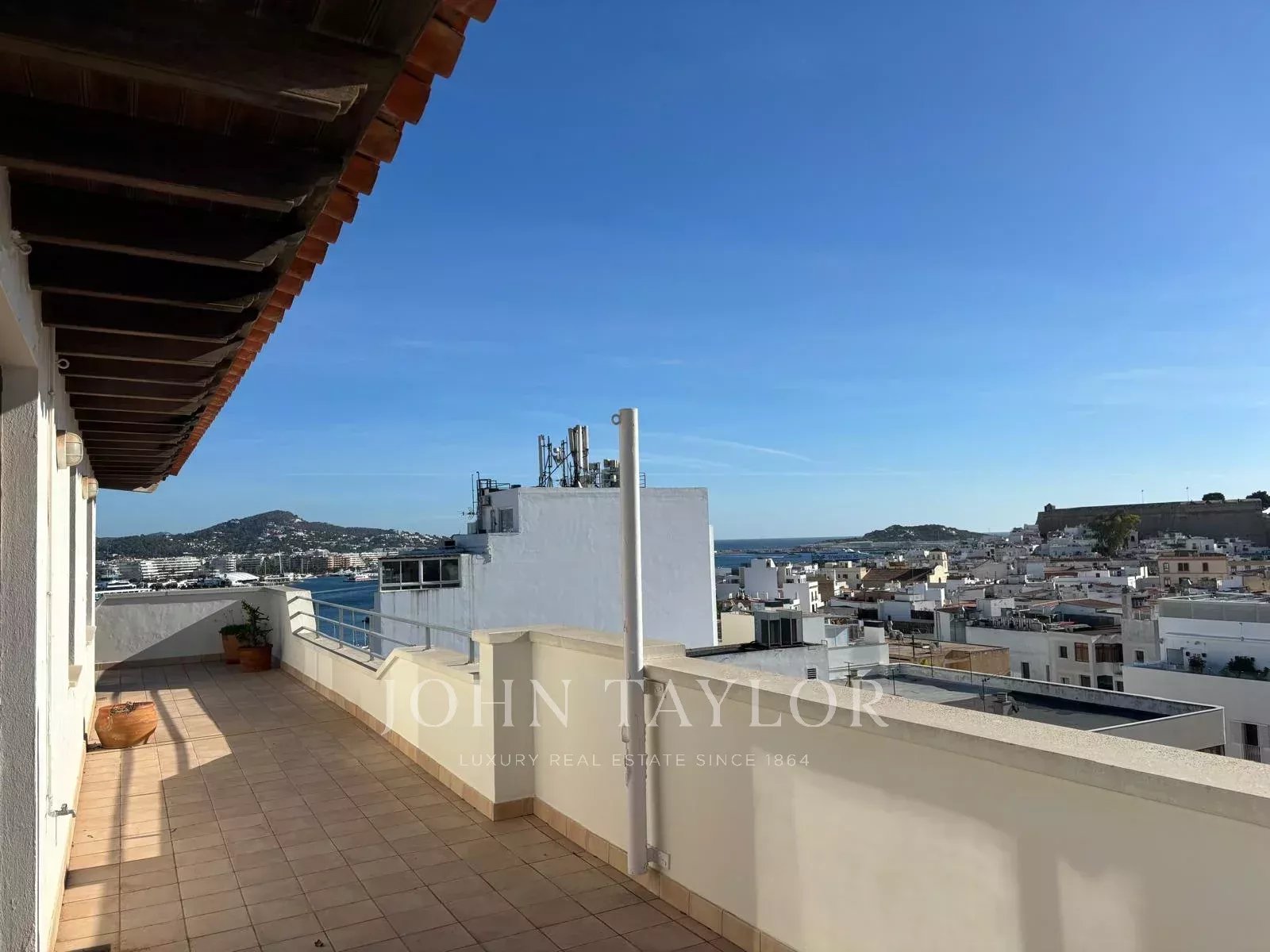 Duplex penthouse in Ibiza of 250 m² with a 90 m² terrace, offering stunning 180-degree views of Dalt Vila, Ibiza port, and the mountains.