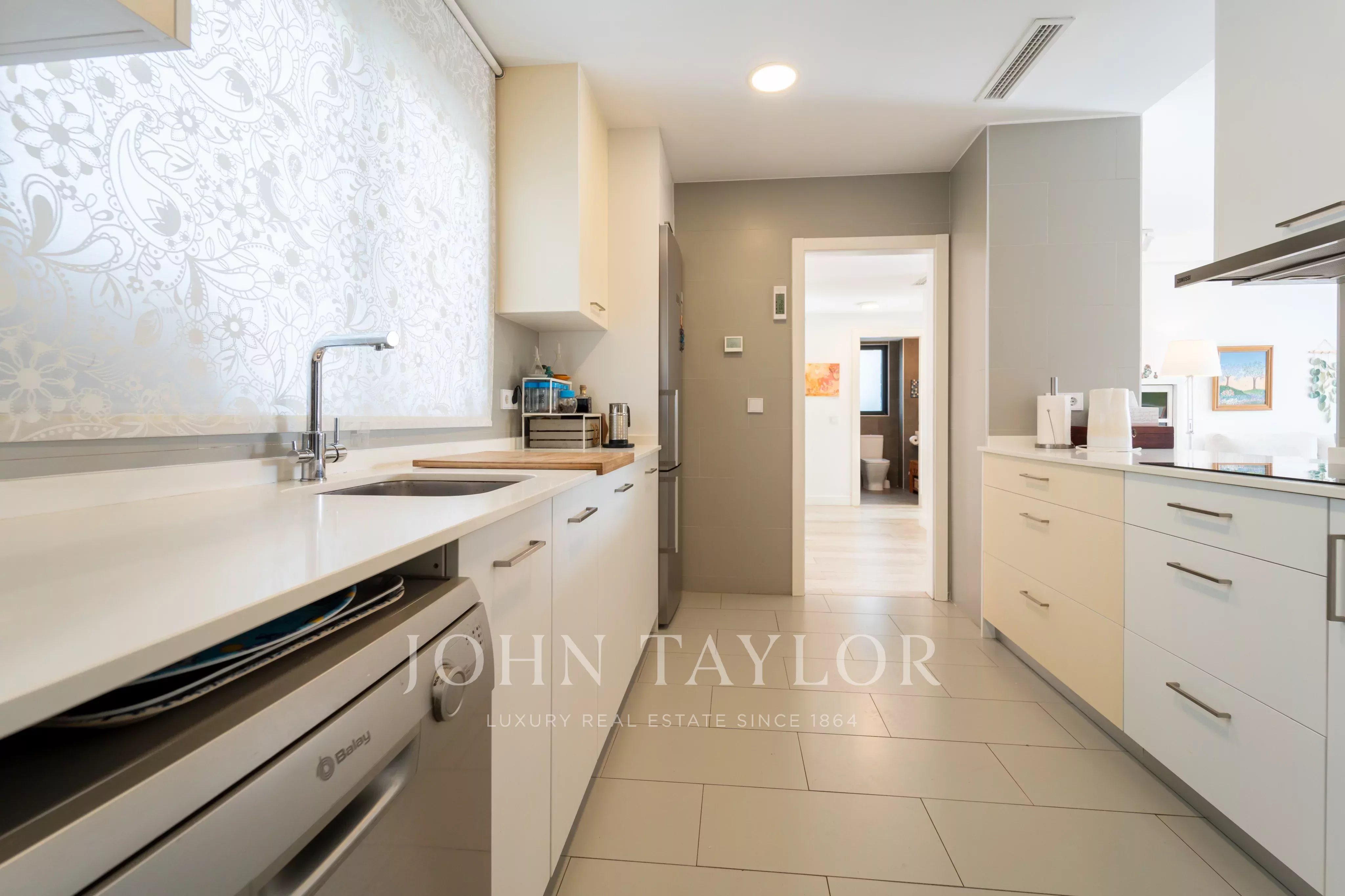 Outdoor spaces are one of the highlights of this property, including a 12 sqm English patio, a covered terrace, a balcony and a private garden of approximately 90 sqm, ideal for enjoying the Mediterranean lifestyle, featuring natural grass and a traditional stone barbecue.