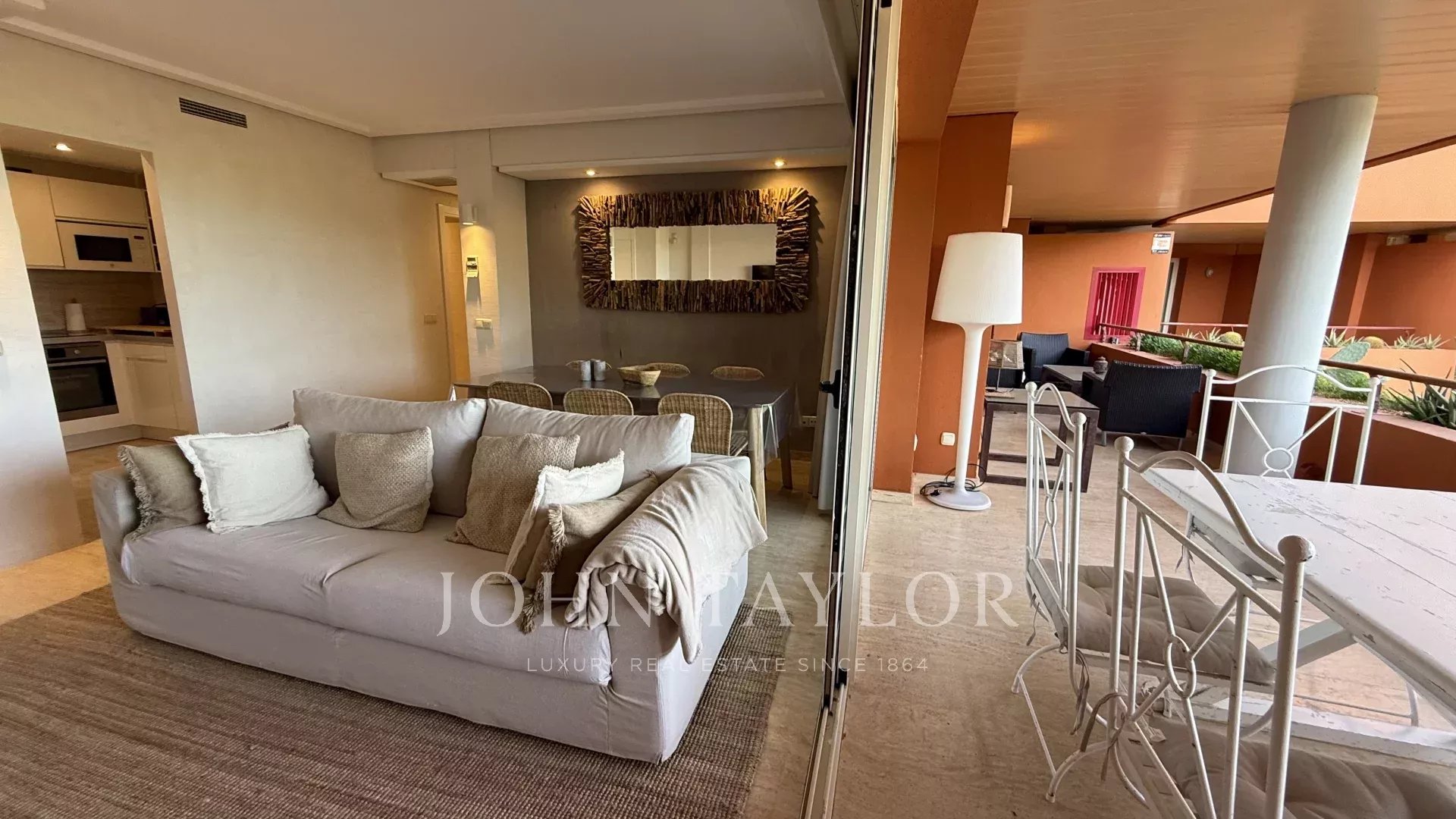 The property features two double bedrooms—one of them with an en-suite bathroom—as well as a third single room that can be used as a bedroom, office or guest space. The spacious, light-filled living and dining area opens toward the mountains, providing a constant sense of calm and openness.