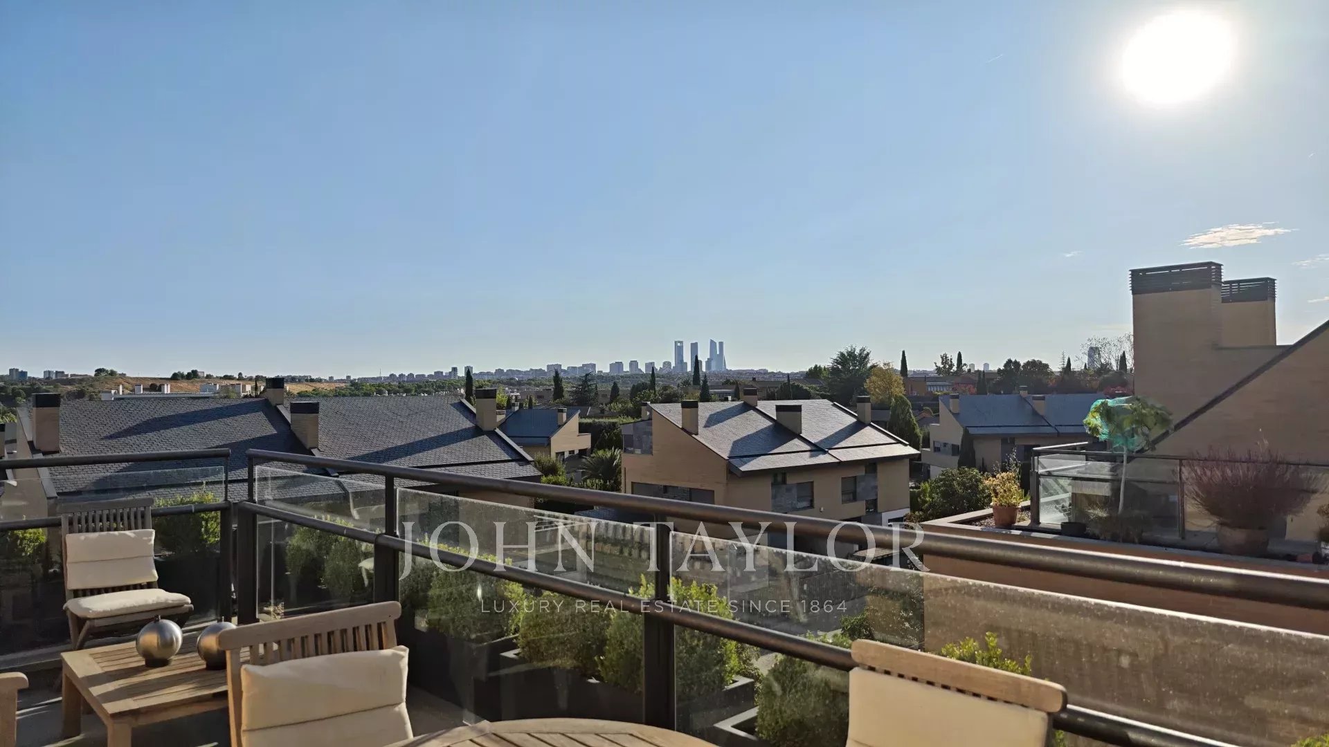 John Taylor presents this corner duplex penthouse with terrace and stunning views of the Encinar de los Reyes and the towers of Madrid, in one of the best urbanizations of the Encinar. A very bright apartment