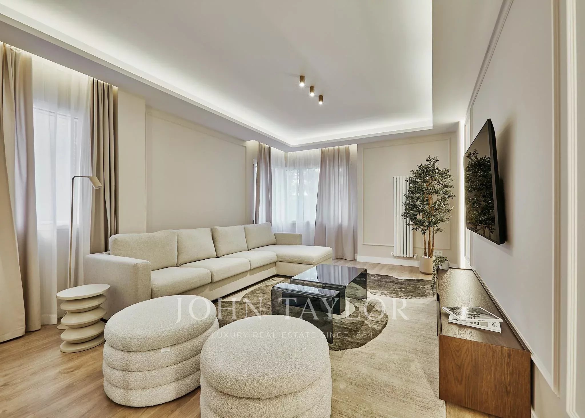 Located on an exterior first floor of a modern building with elevator, the property stands out for its spaciousness and careful renovation, designed with a contemporary approach that prioritizes brightness and flow of spaces. The open and generous living area extends outdoors and connects to a spectacular south-facing balcony of 40 m², an absolute added value that floods the home with natural light and creates an ideal space for enjoyment.