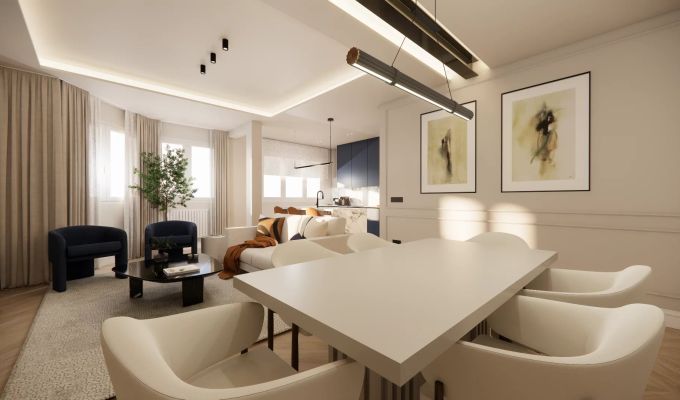 This fully renovated residence represents the perfect fusion between classic Madrid ...