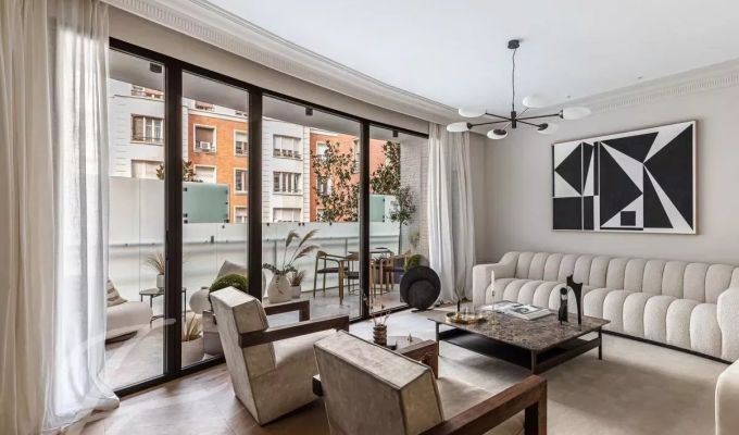 This fully renovated residence represents the perfect fusion between classic Madrid ...
