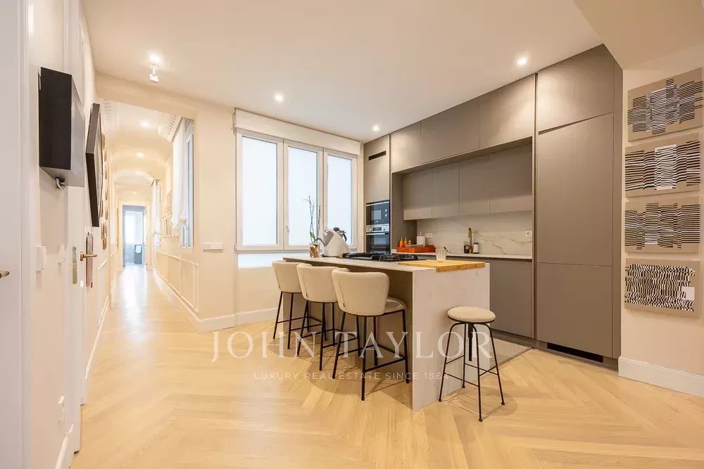In one of the best areas of Salamanca we find this fabulous property, recently renovated with great quality materials. It is located on the fourth floor of a beautiful classic building with a representative entrance. With a double east-west orientation, it offers great natural light throughout the day.