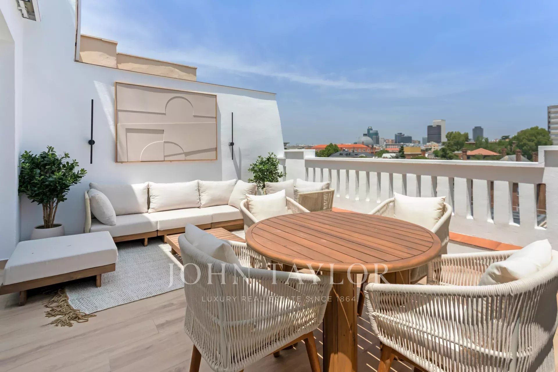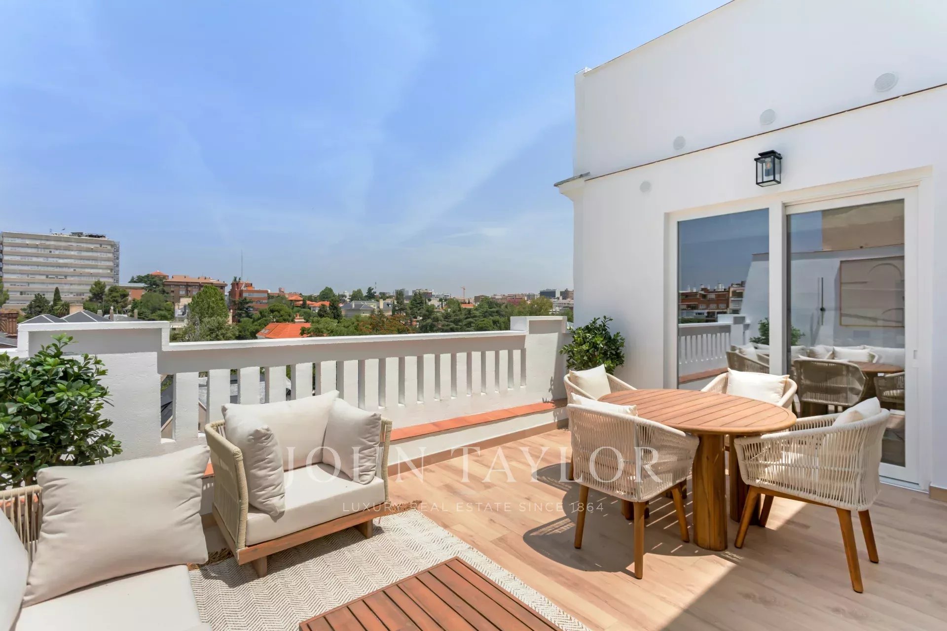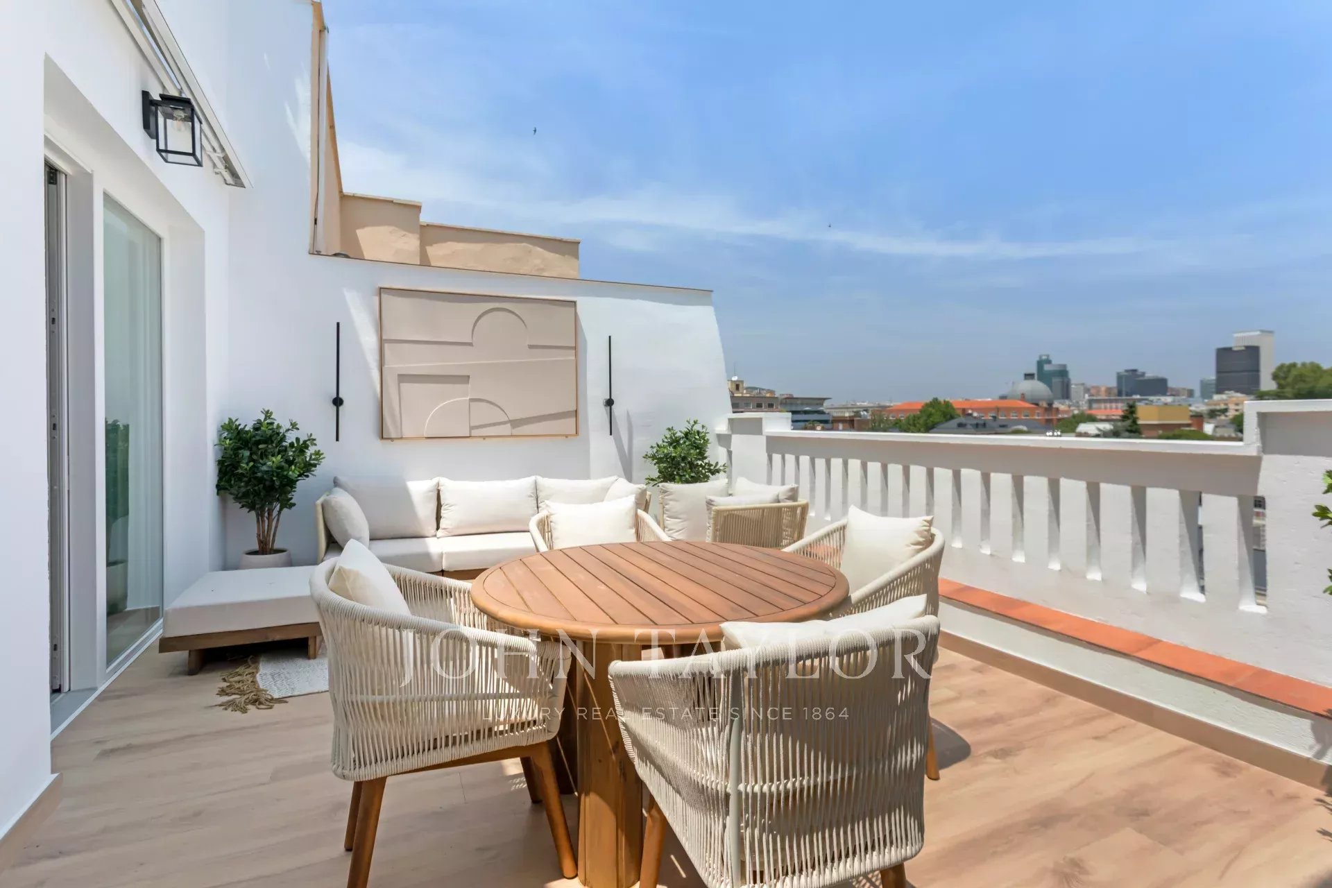 The terrace has a square shape, a surface area of 20 m² and enjoys beautiful panoramic views towards the north of the capital.