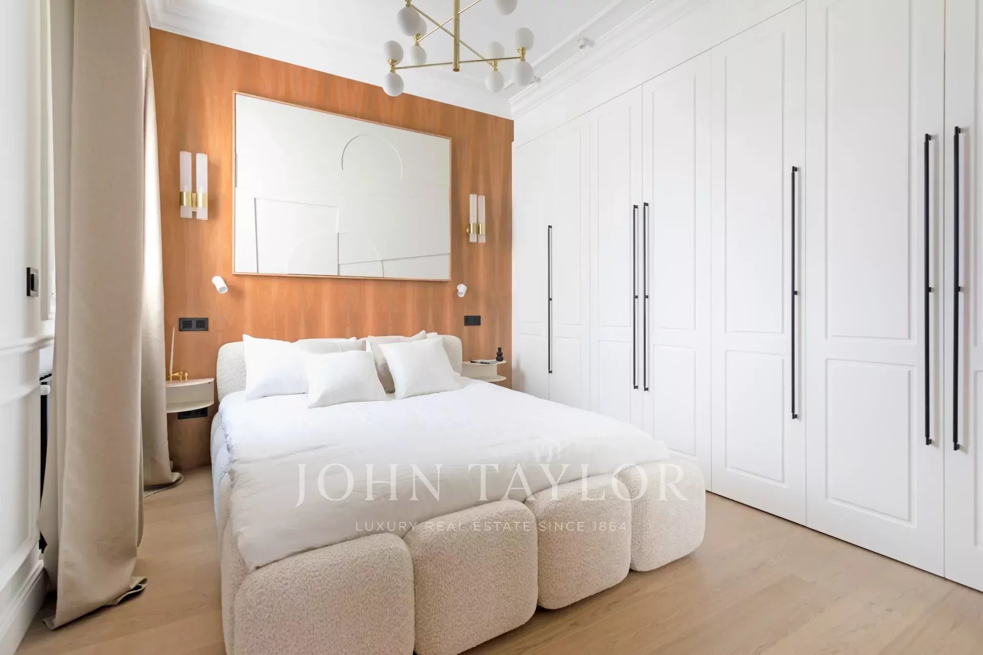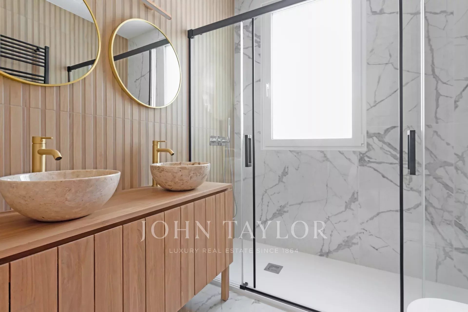 The private area is composed of two spacious bedrooms, both with fitted wardrobes and en suite bathrooms.